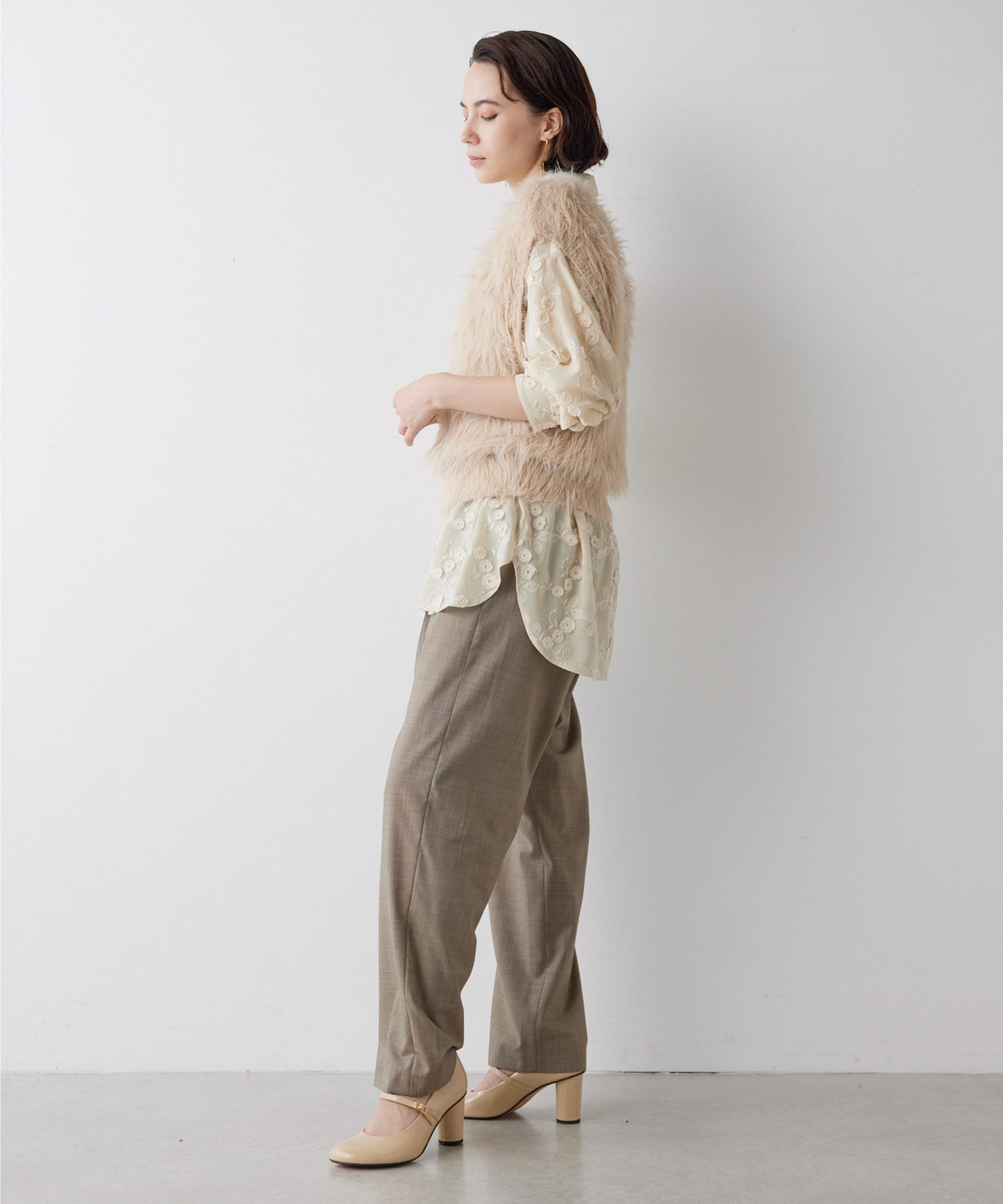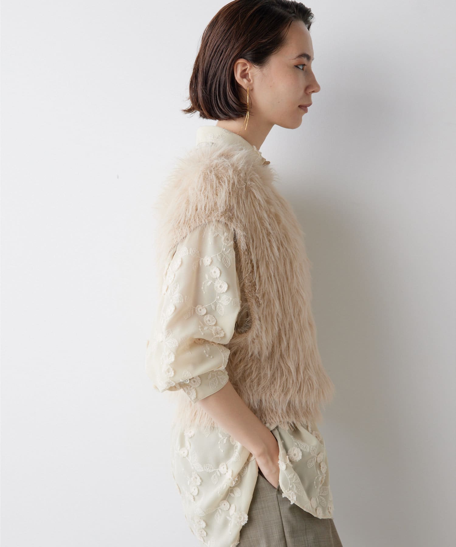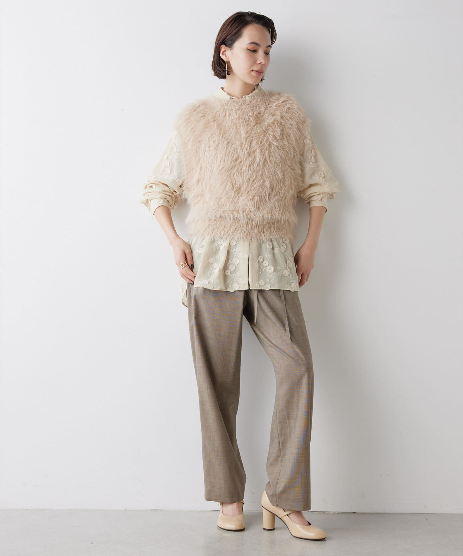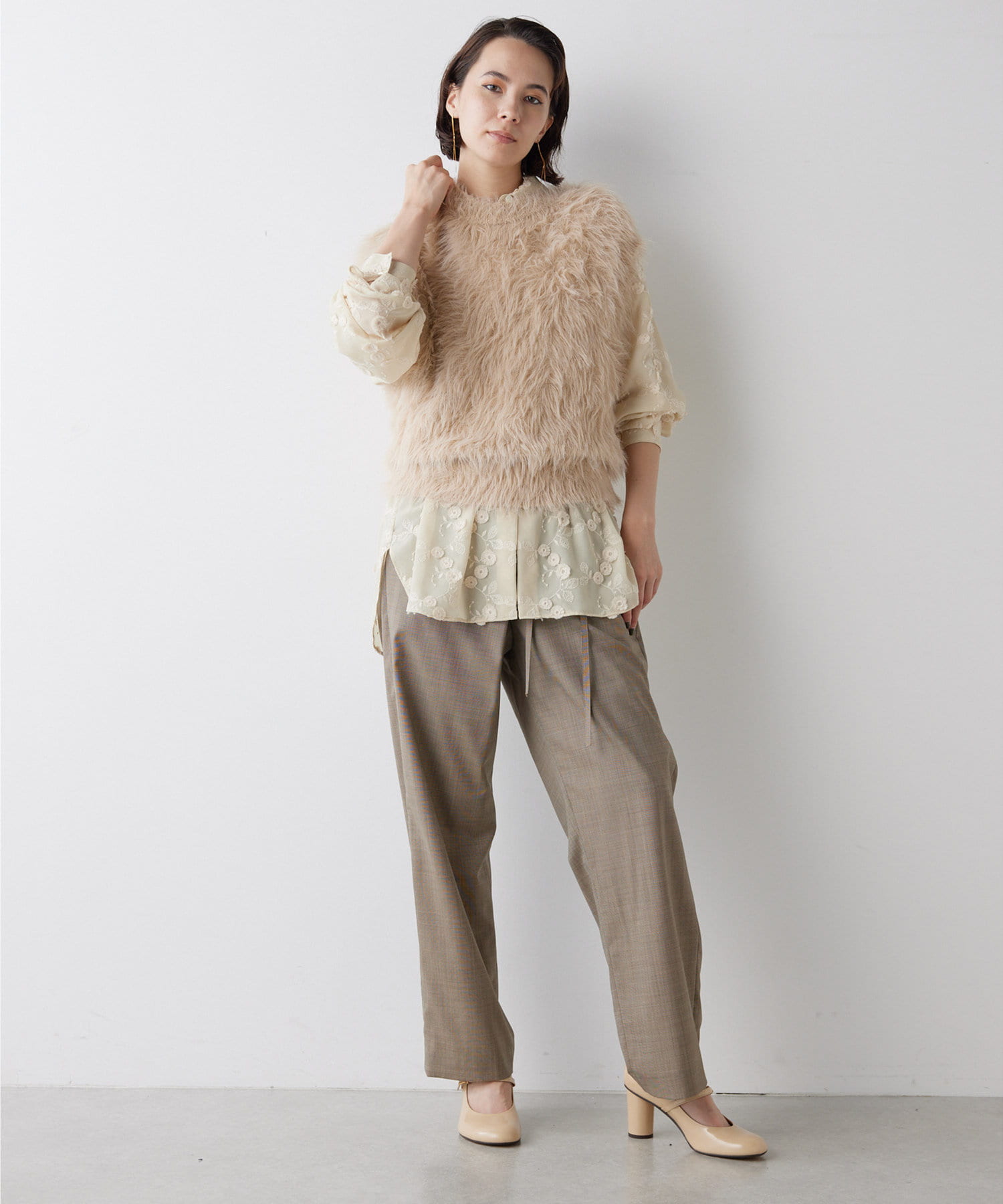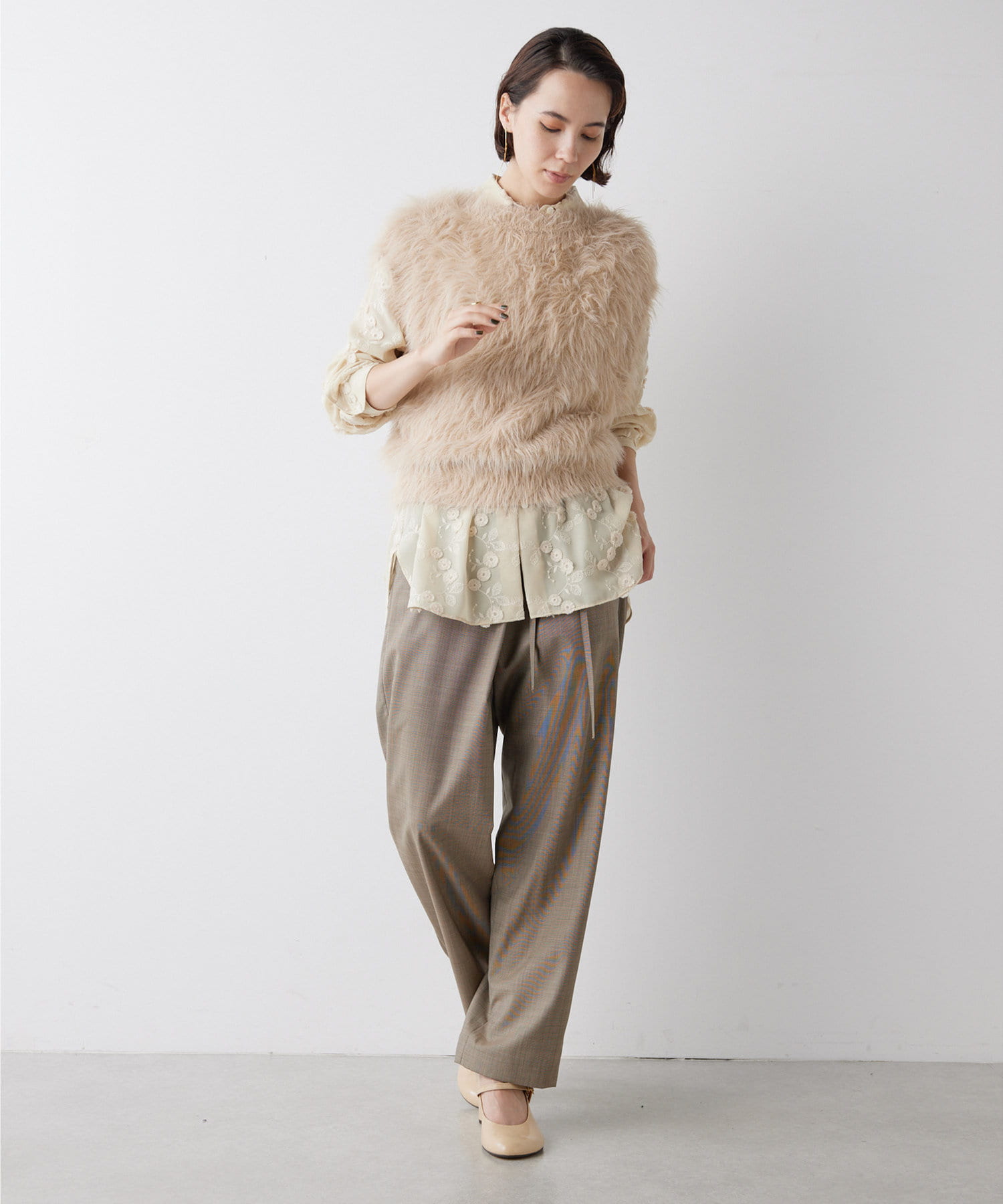 ■ファーライクなシャギーヤーンを使用したニットベスト。