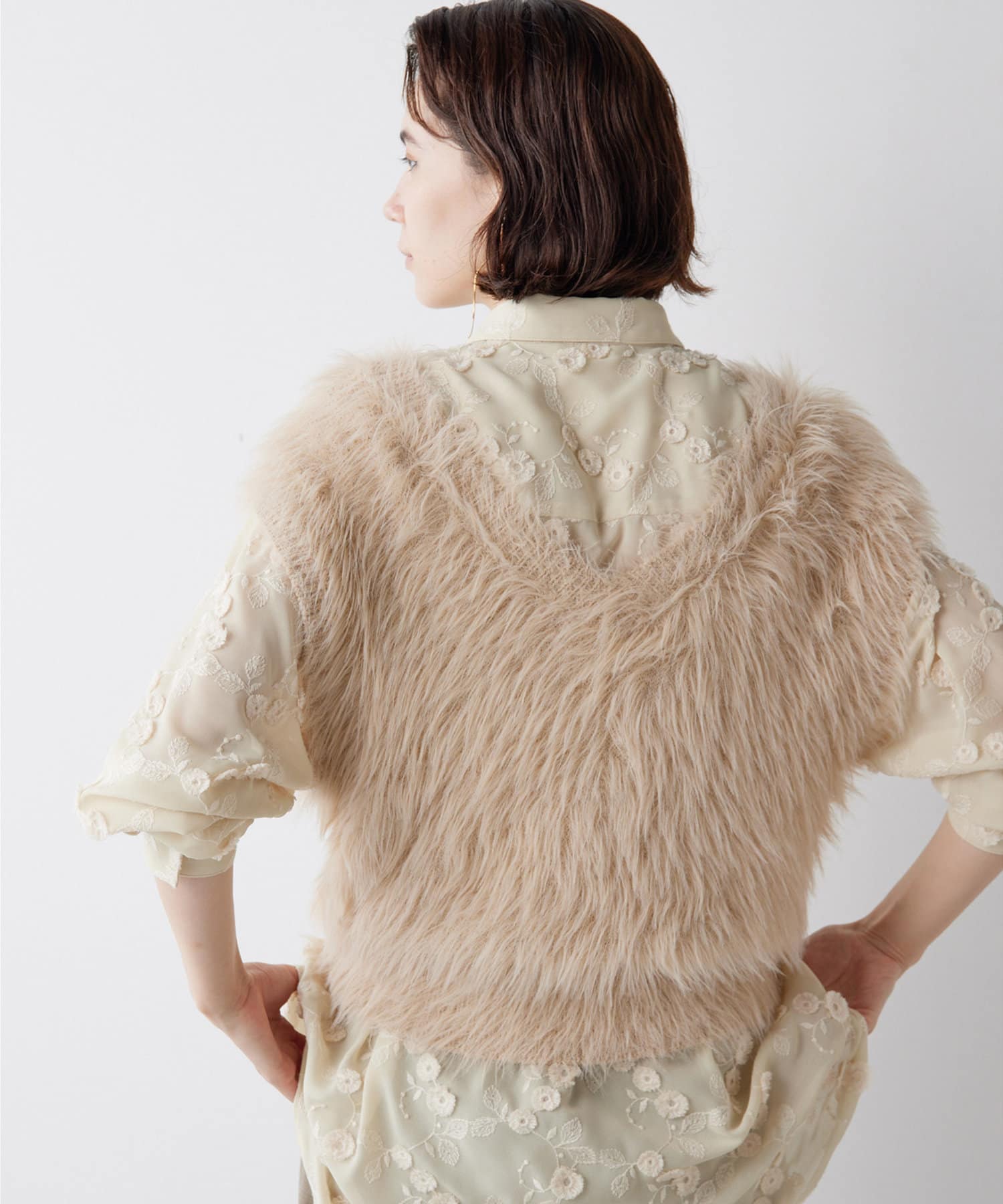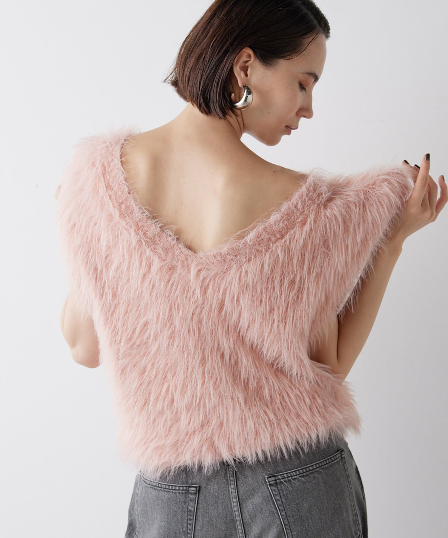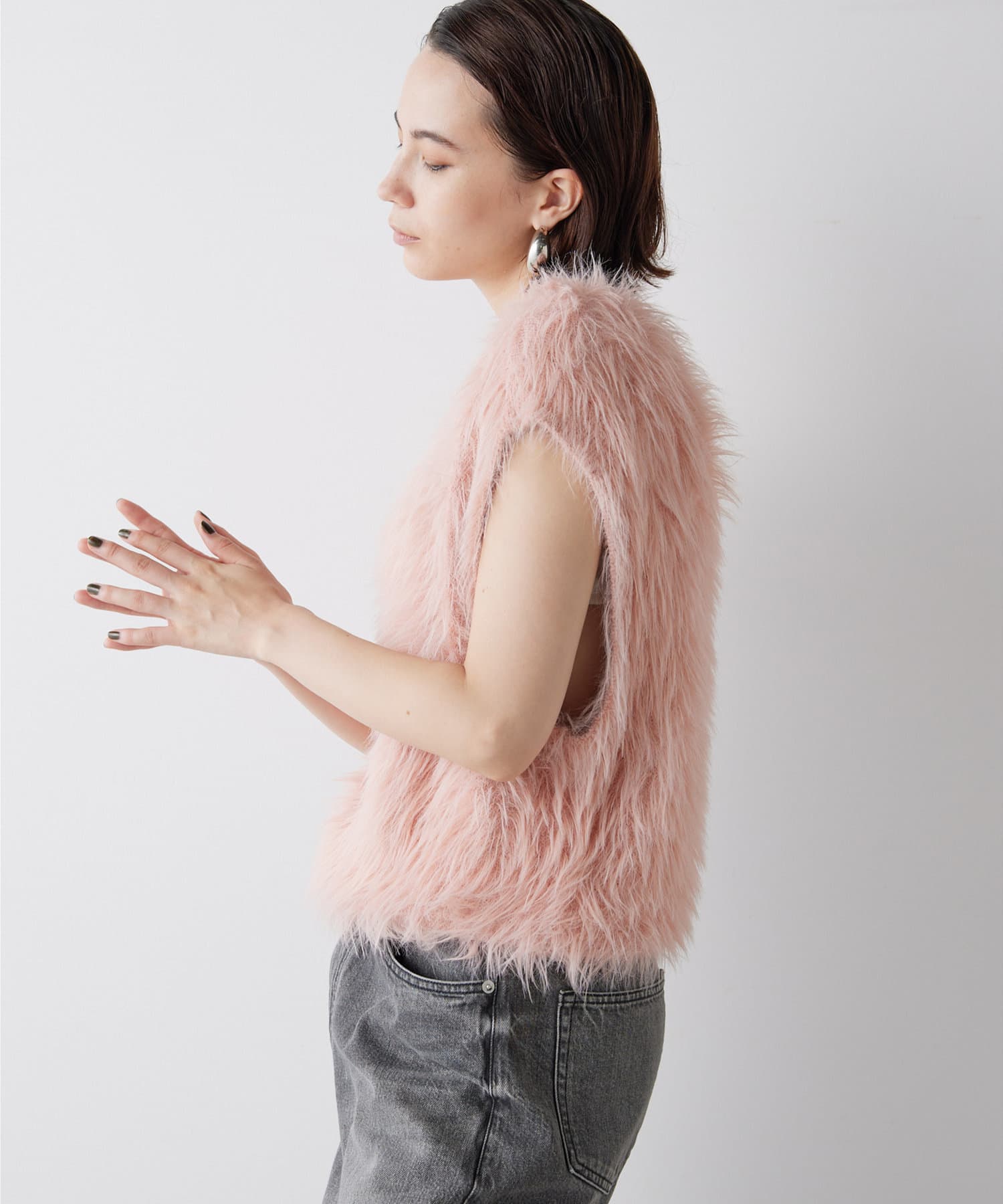 ファーのような表情が華やかな、前後2wayニットジレ