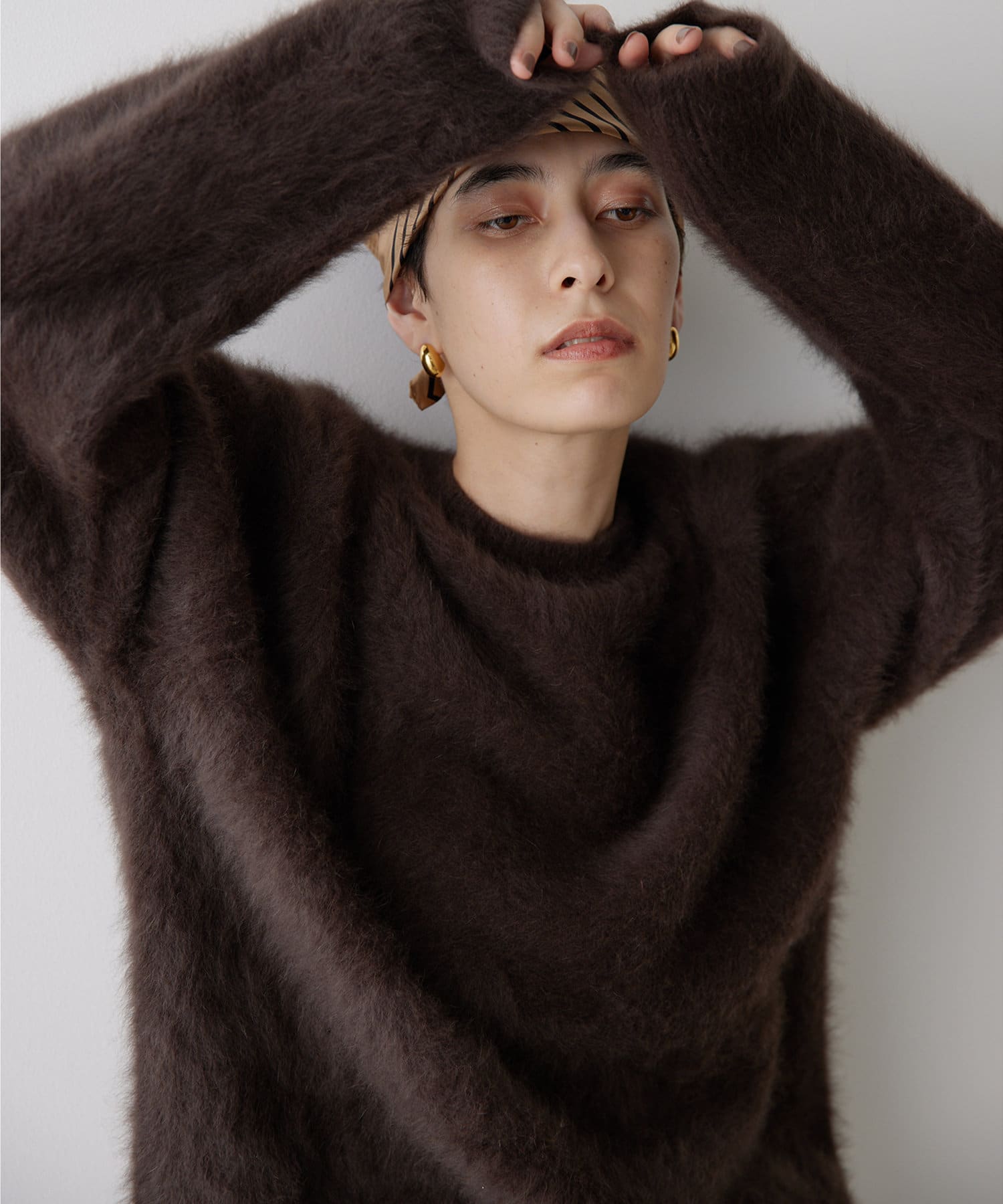 ■シャギーのボリューム感がありつつもクルーネックですっきりとした印象に。