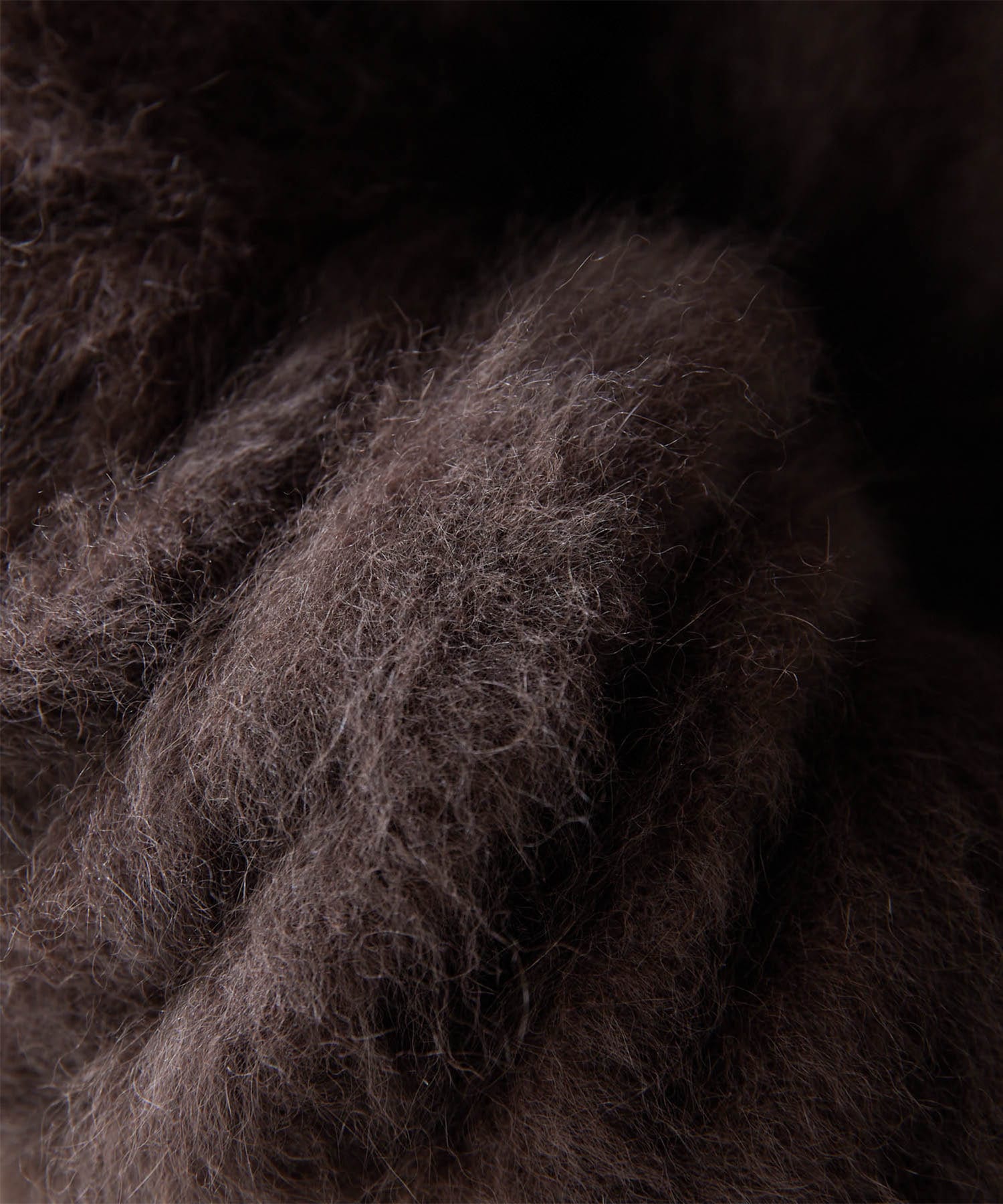 フォックスにカシミヤ原料を紡績する事で光沢と風合いを更に高めた、カシミヤとフォックスの特徴を合わせた素材。