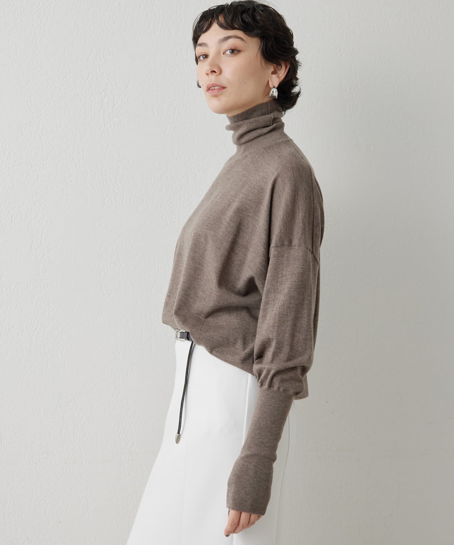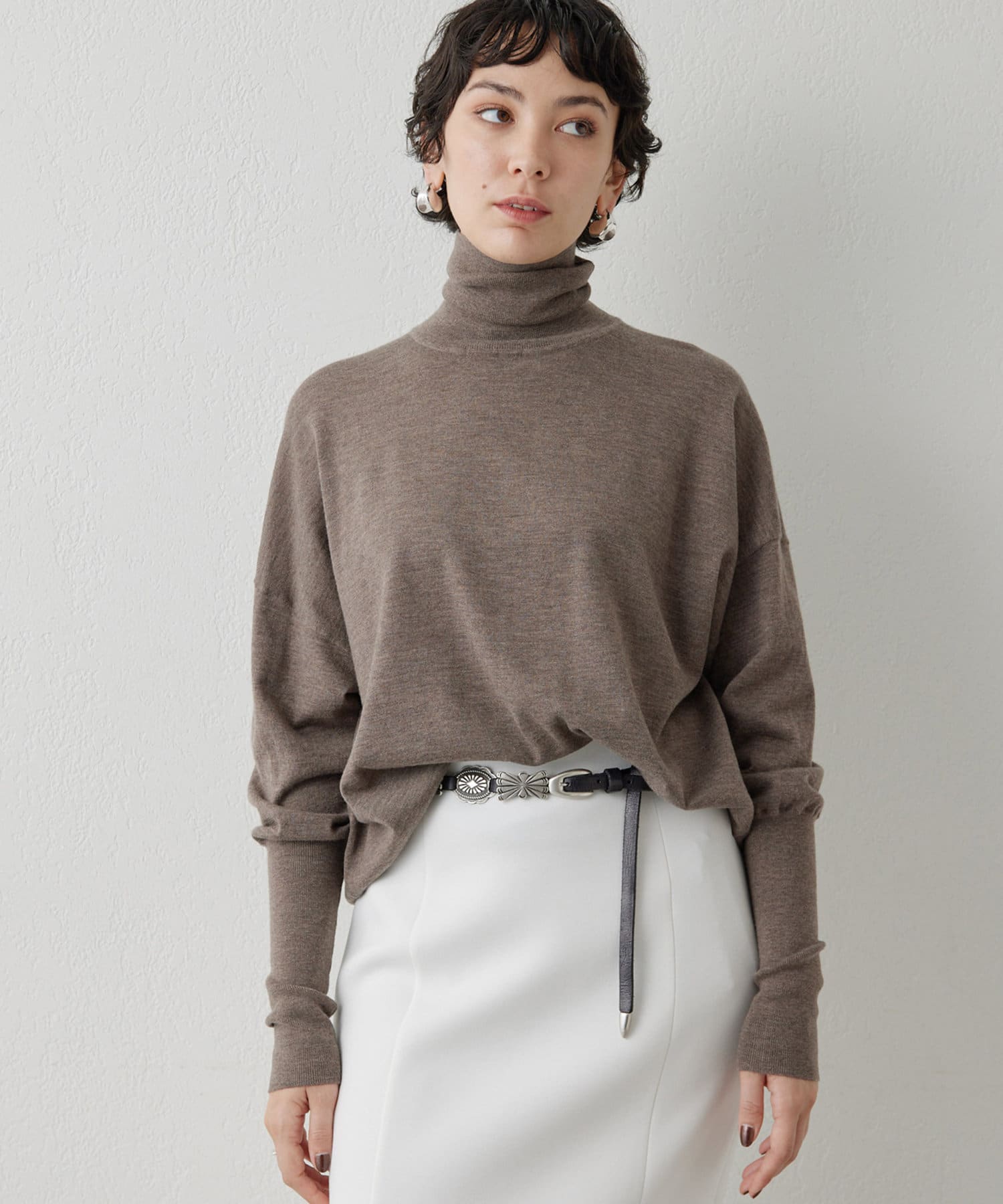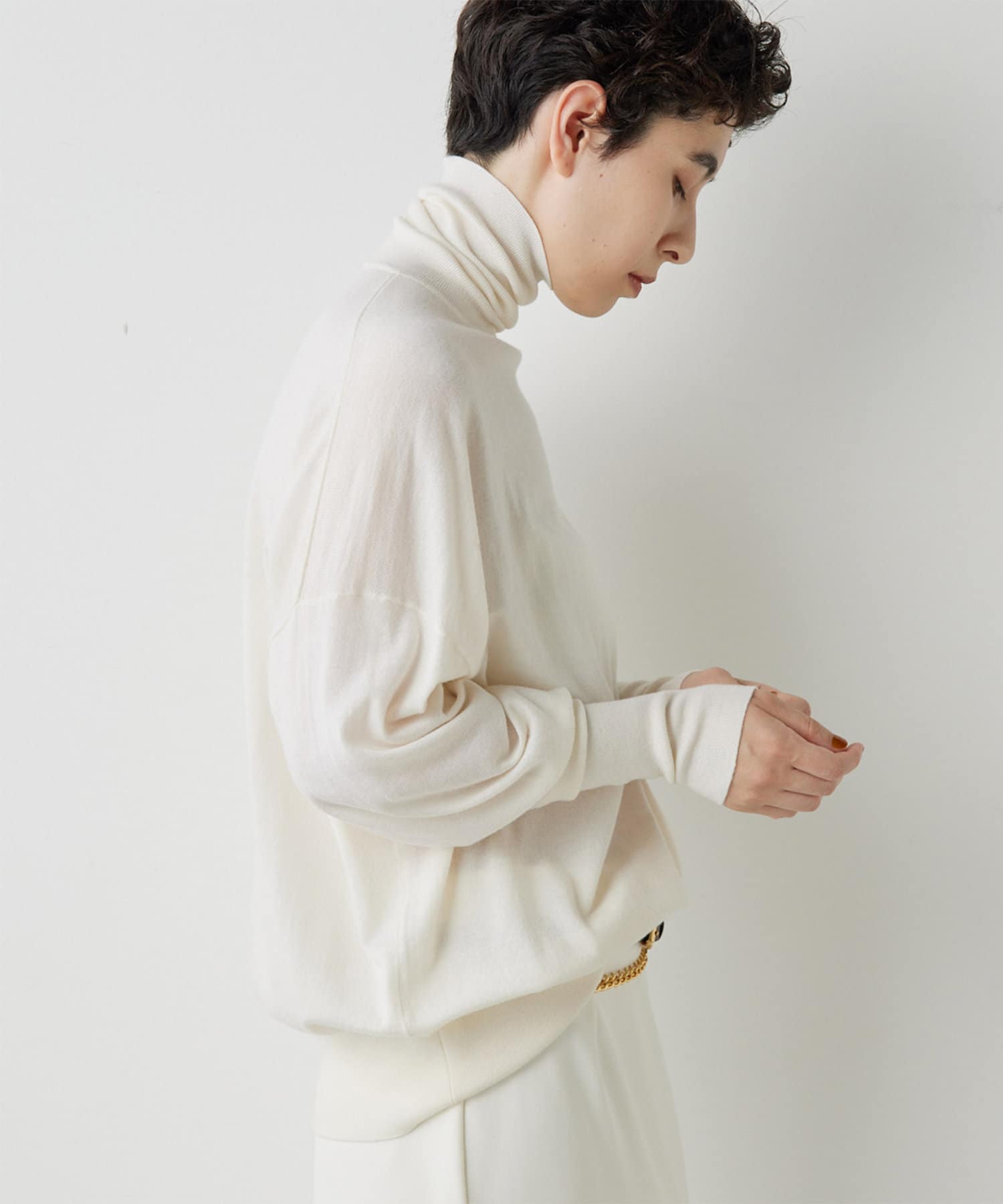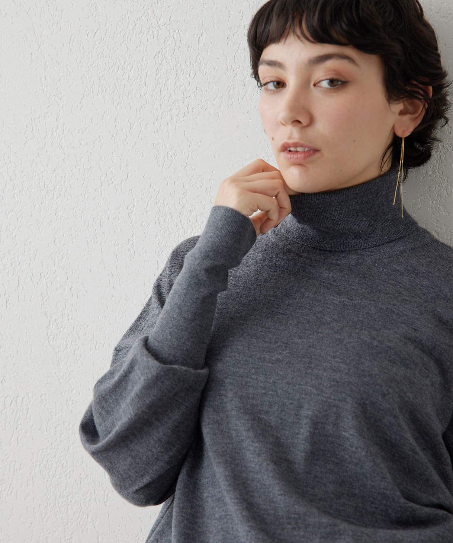 ■ハイゲージの滑らかな質感が心地よいタートルネックプルオーバー。