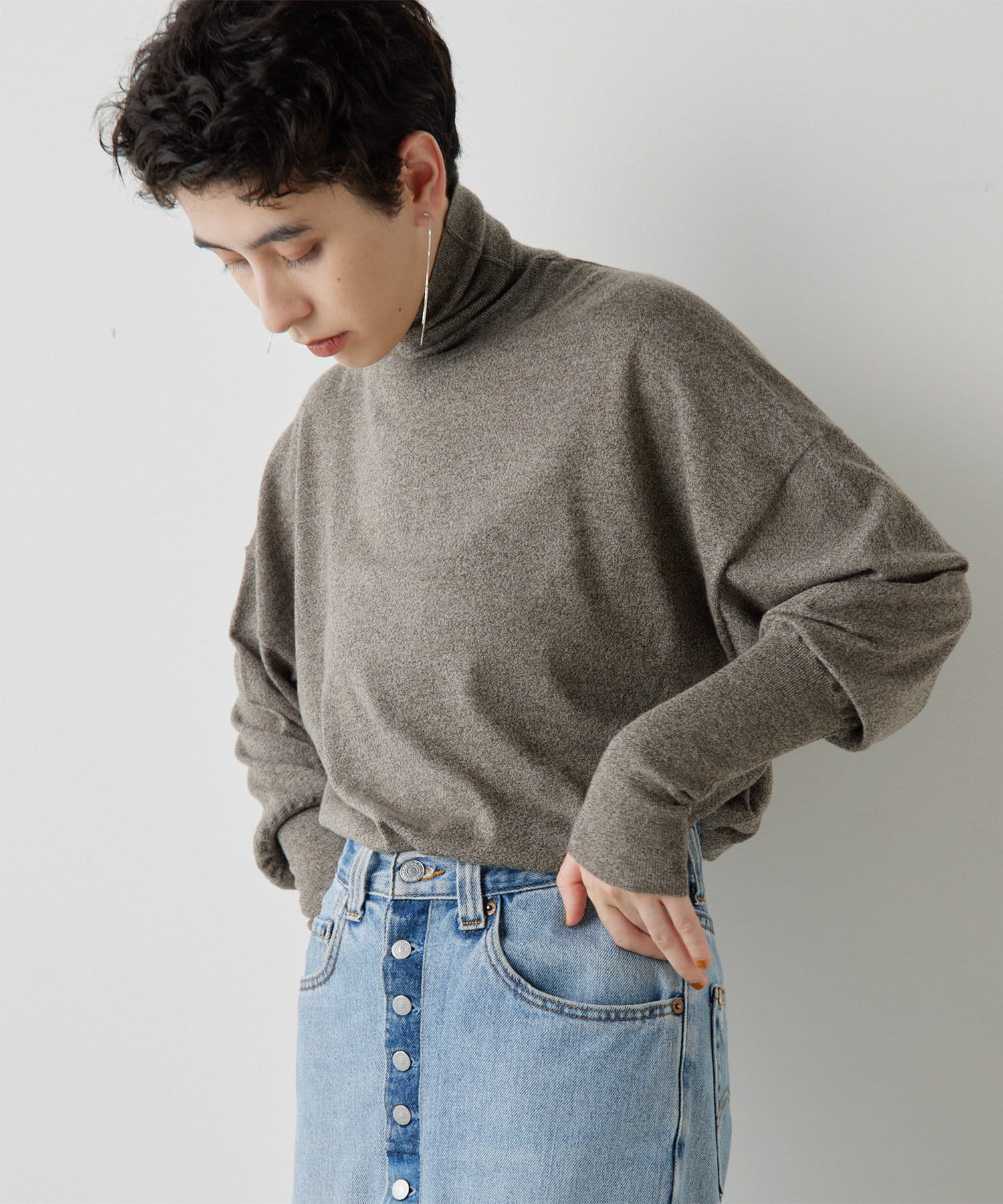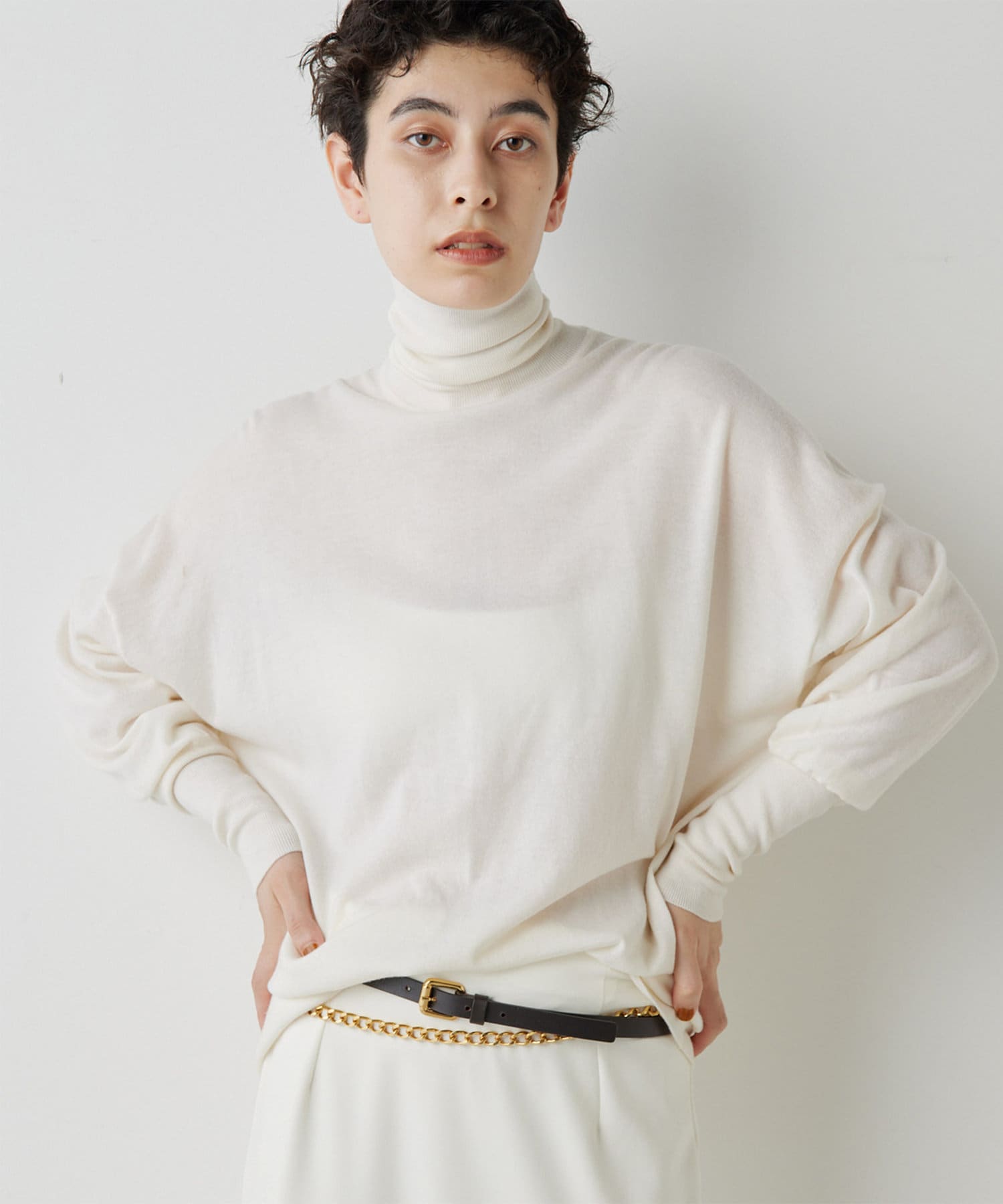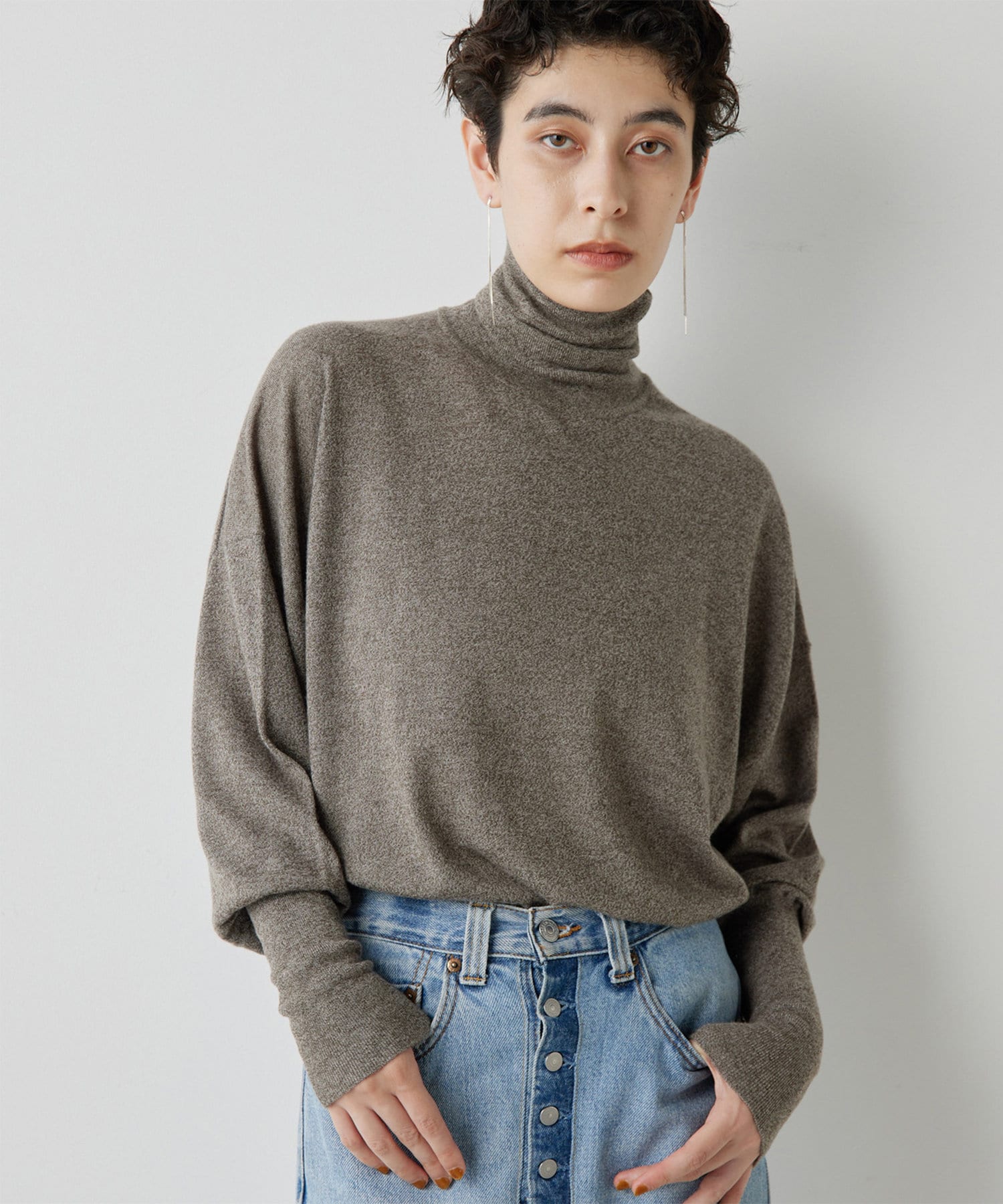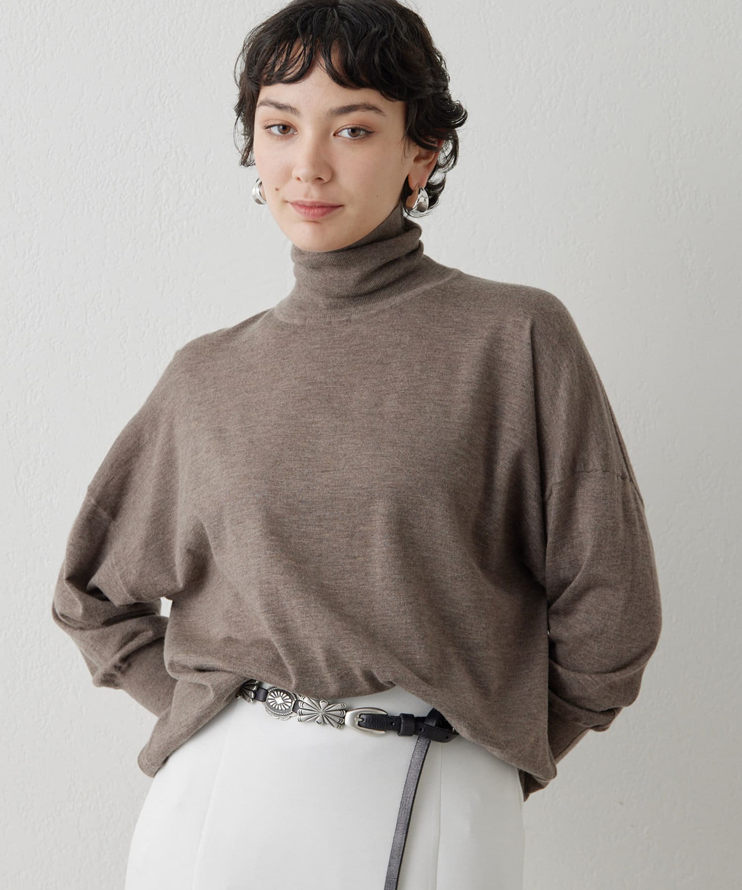 ■ハイゲージの滑らかな質感が心地よいタートルネックプルオーバー。