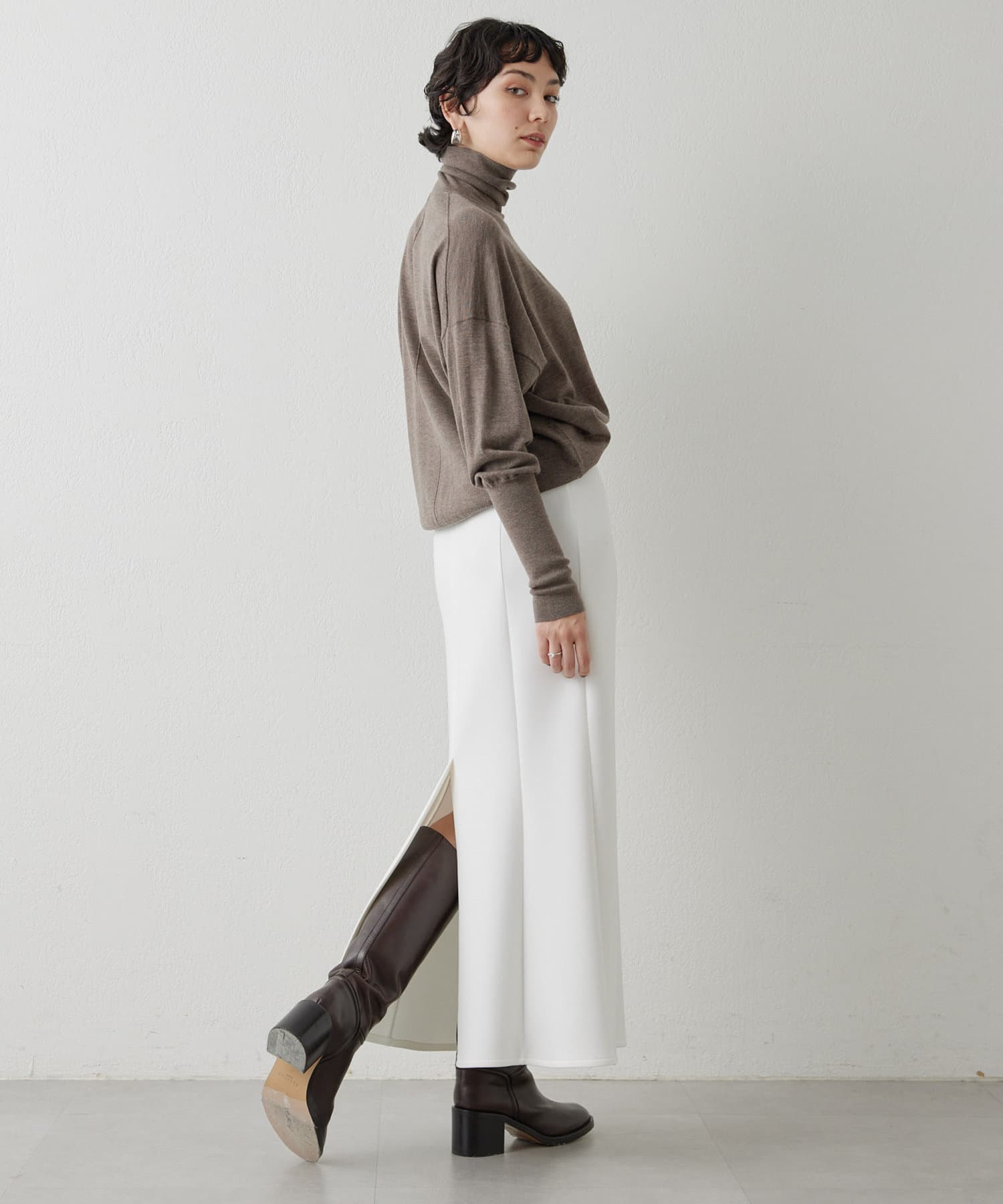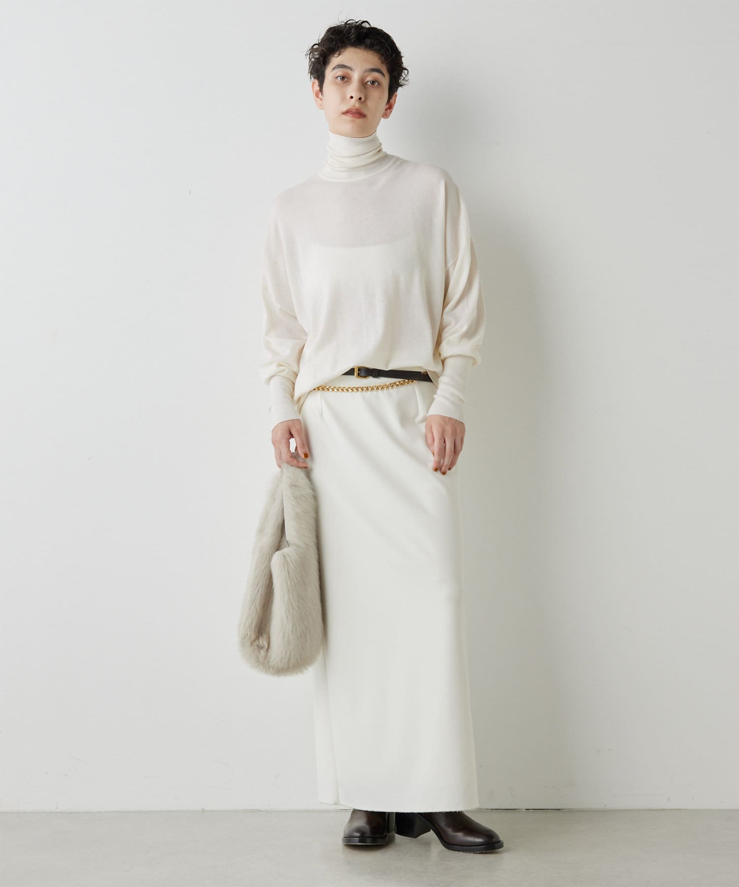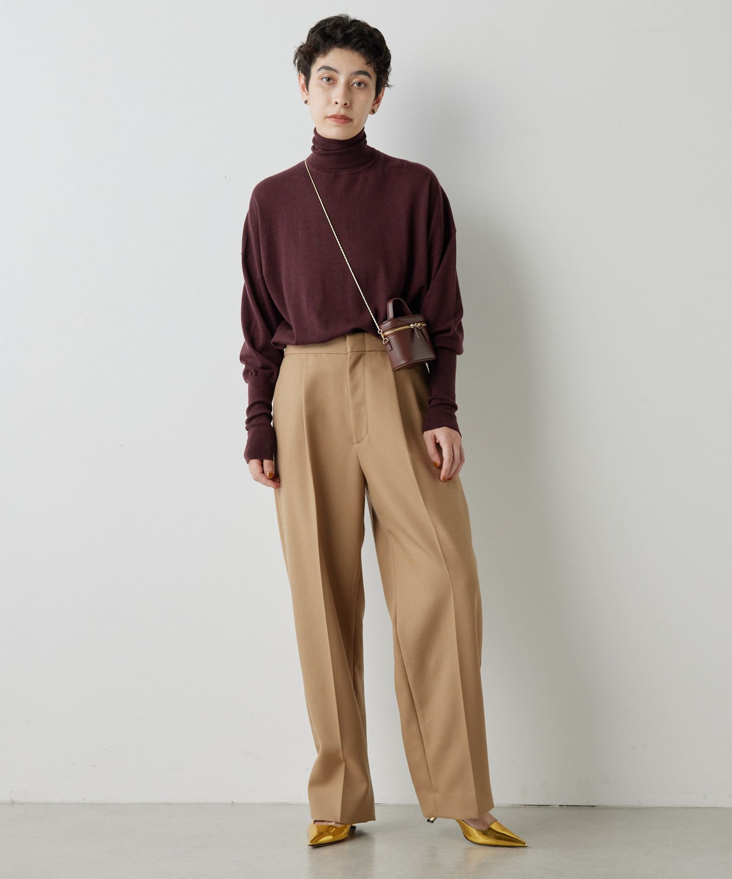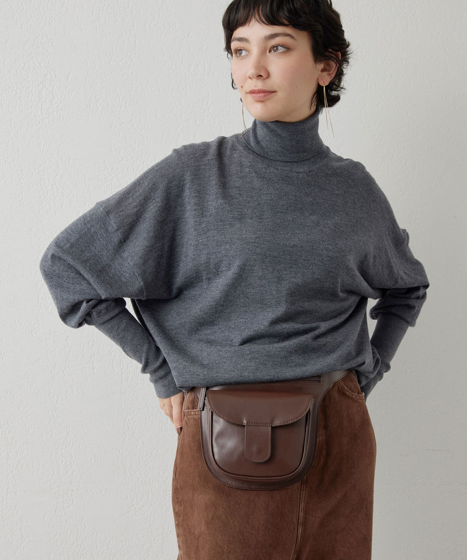 ■ハイゲージの滑らかな質感が心地よいタートルネックプルオーバー。