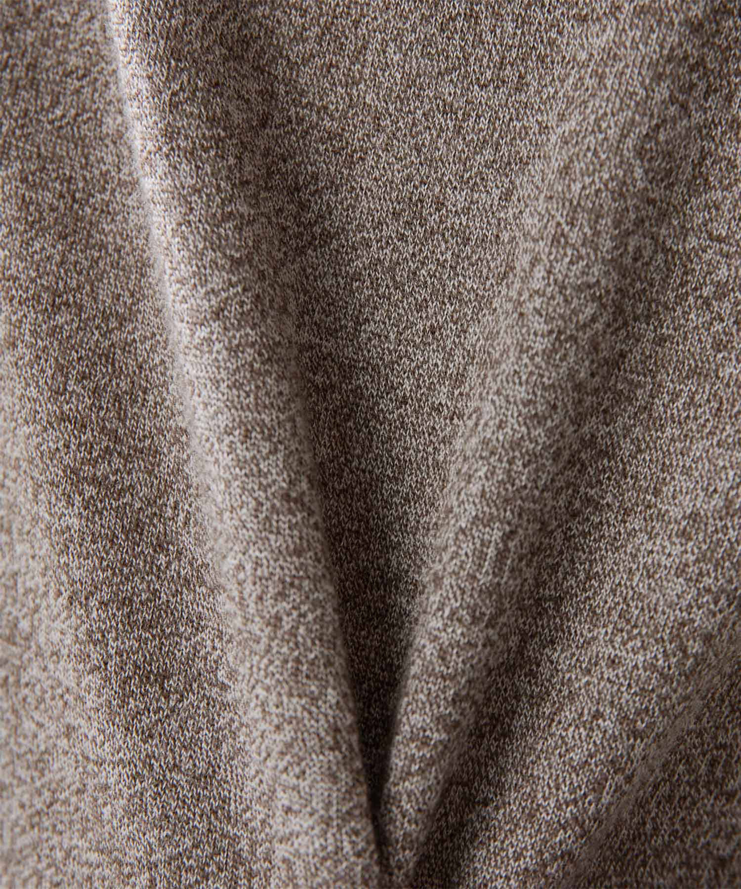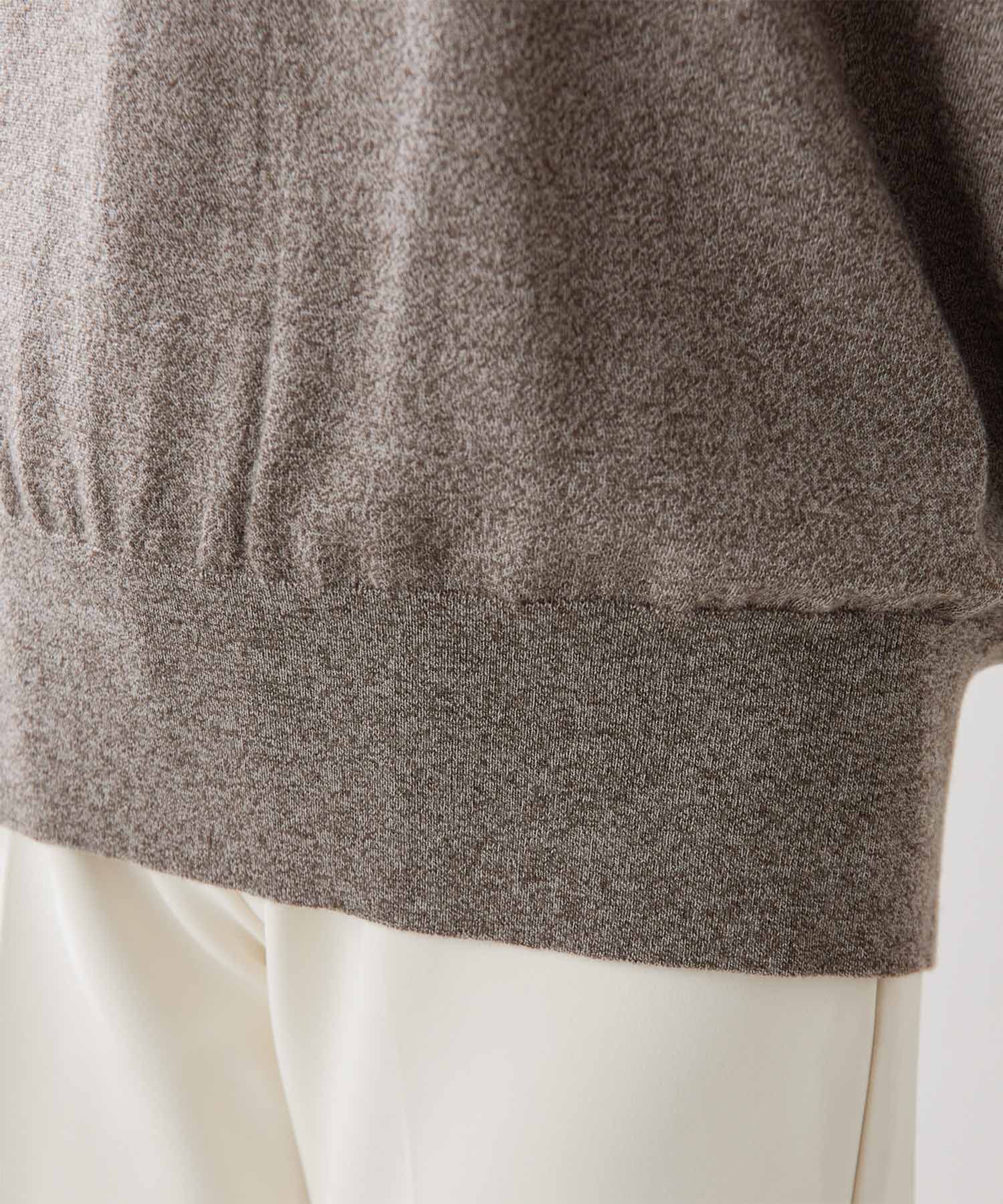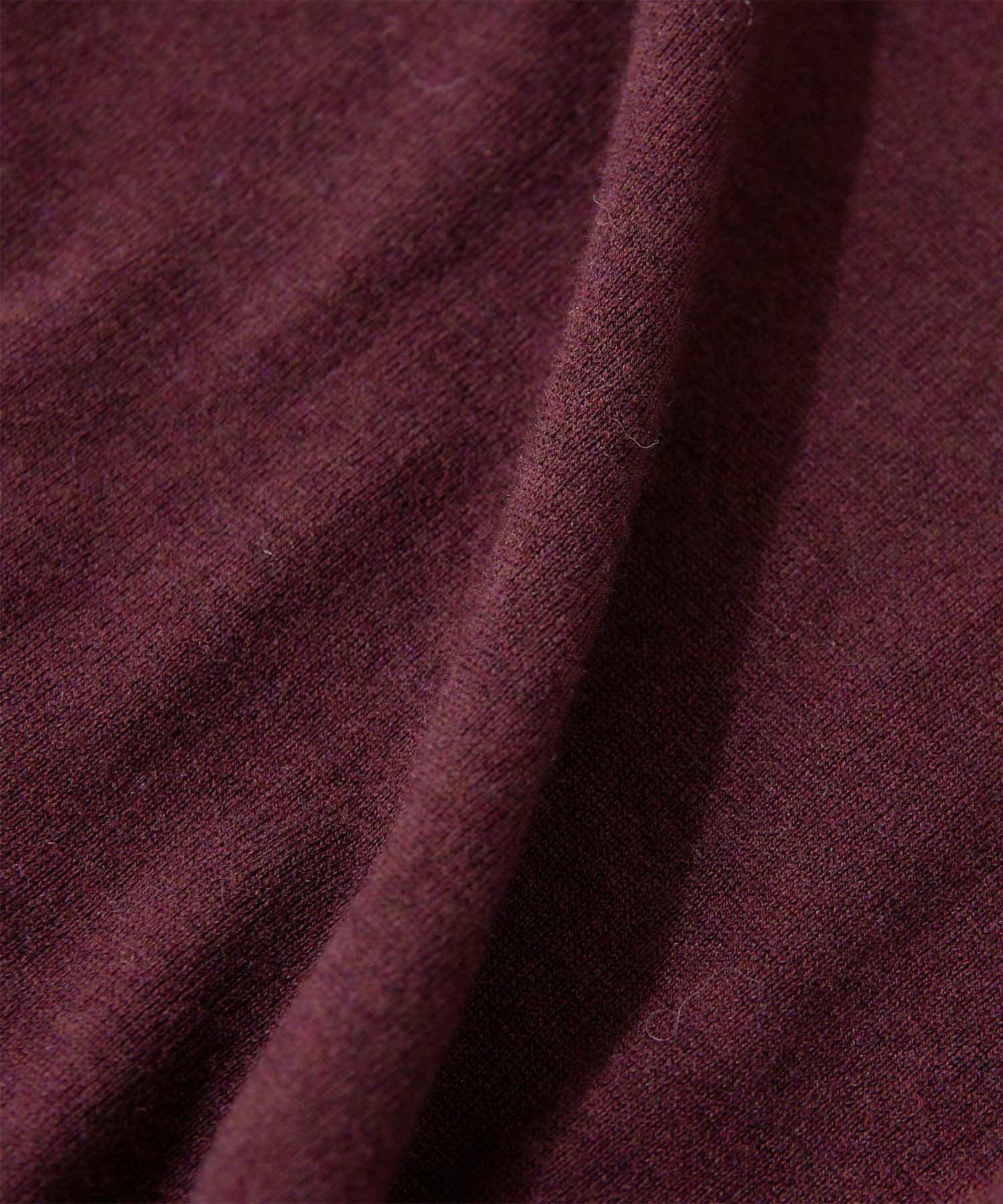 17.5MICのスーパーファイン・メリノを使用したセミ梳毛糸を使用し、マーセライズ加工を施すことで上品な光沢感・ソフトでしなやかな肌触りを持った高品質素材。