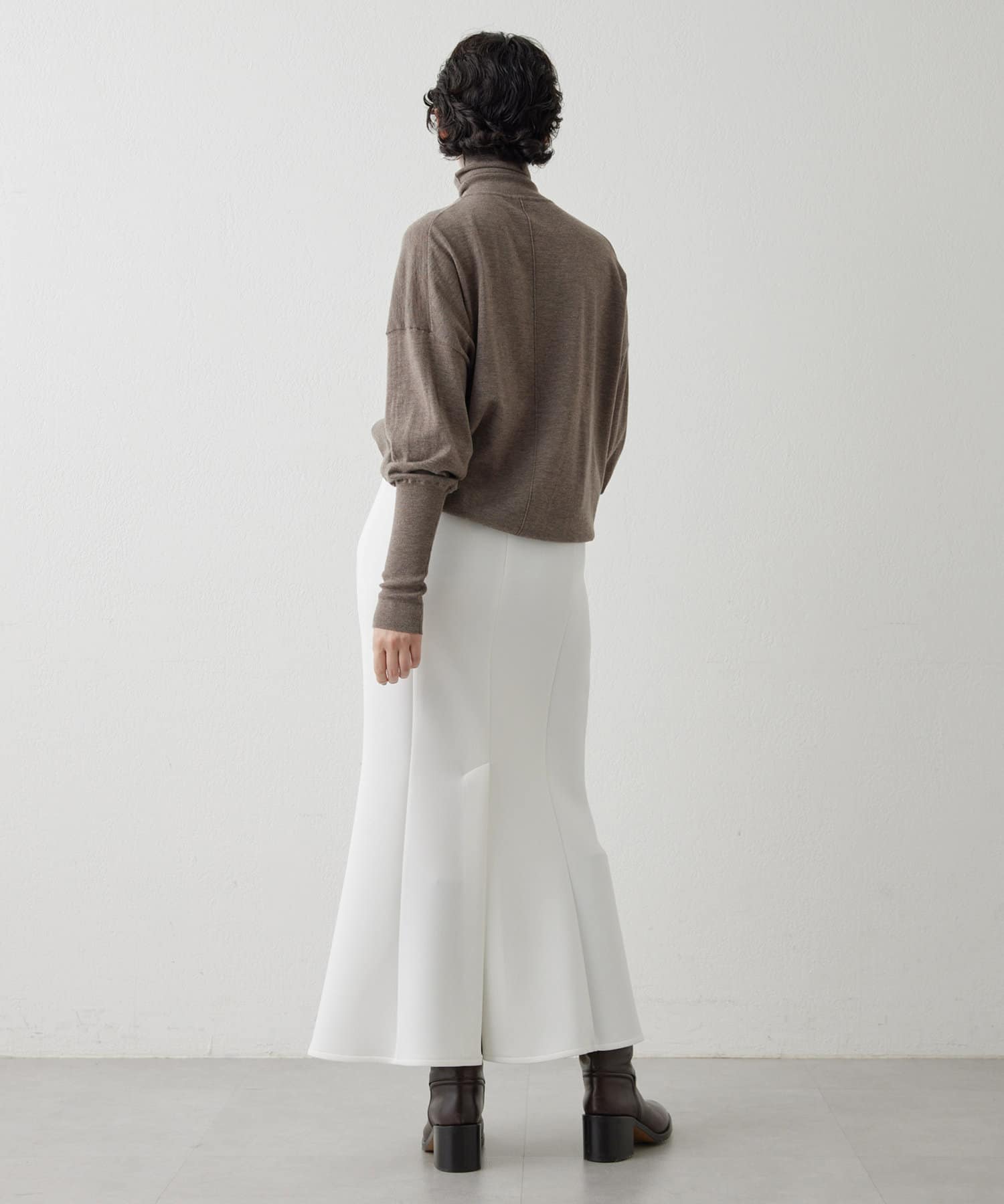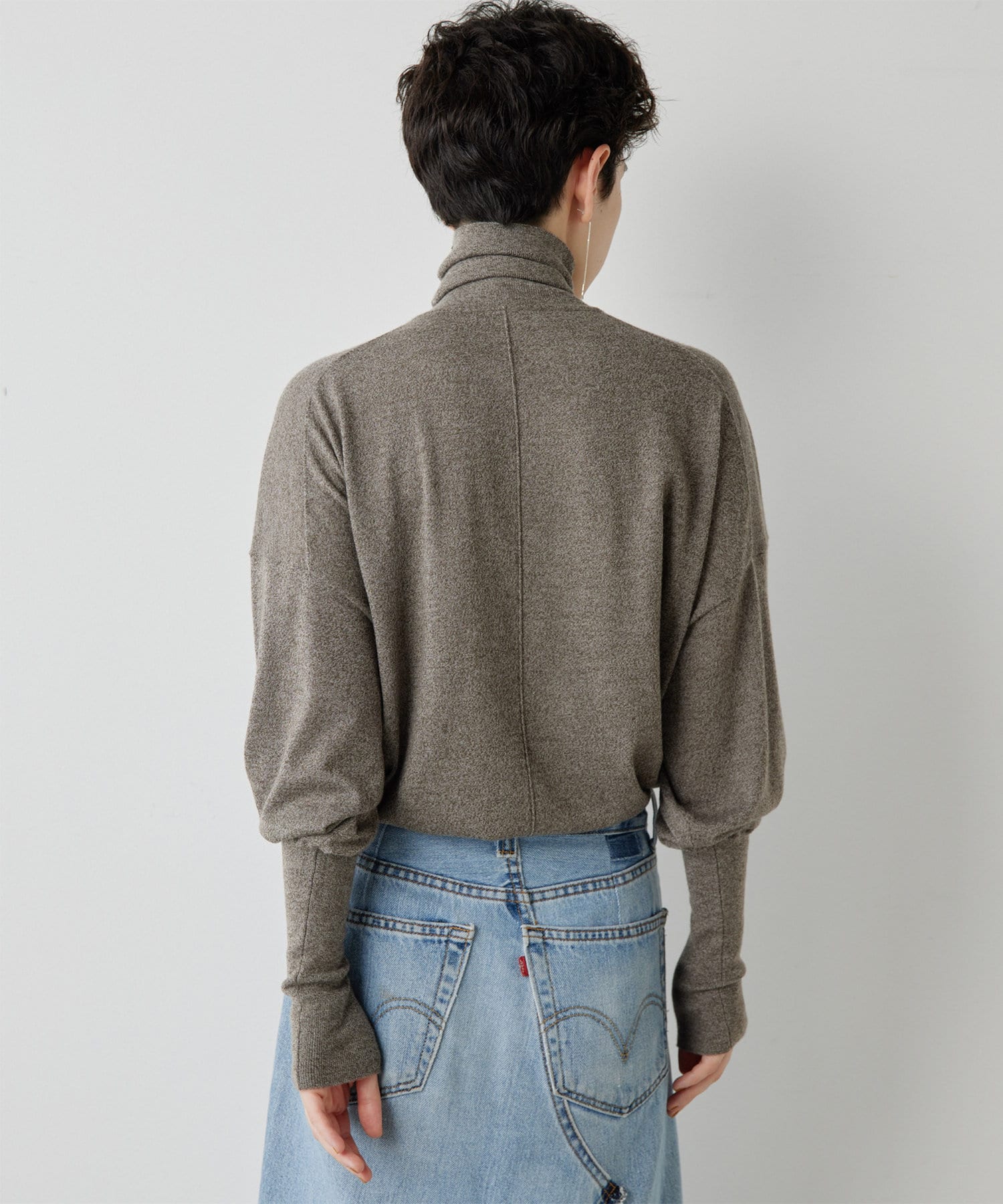 ■手首に向かってフィット感の増す袖のリブ切り替えや、ネックにぴったりと沿うタートルネックがメリハリ感をプラス。