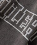 ■プリントは経年劣化により硬化した様な風合いでユーズド感を表現した特殊なプリント手法を採用。