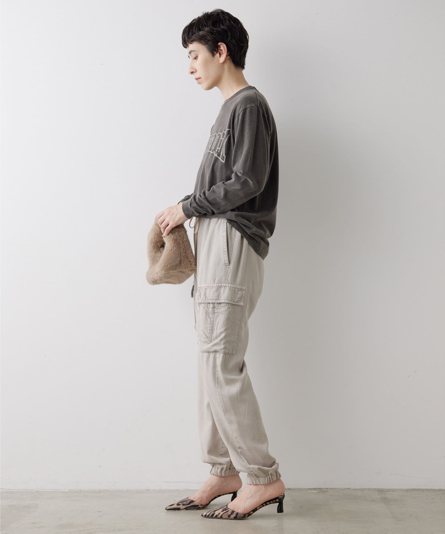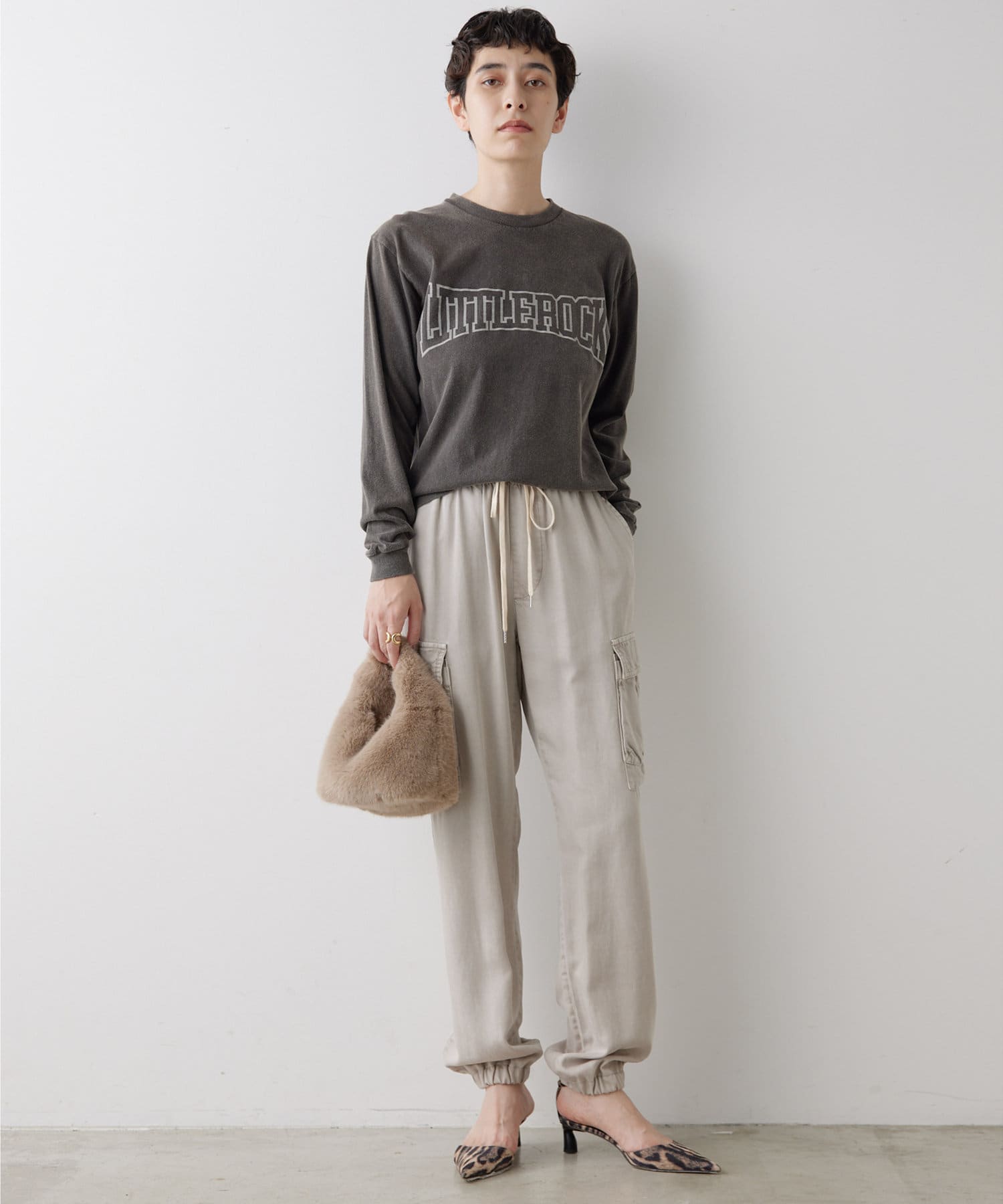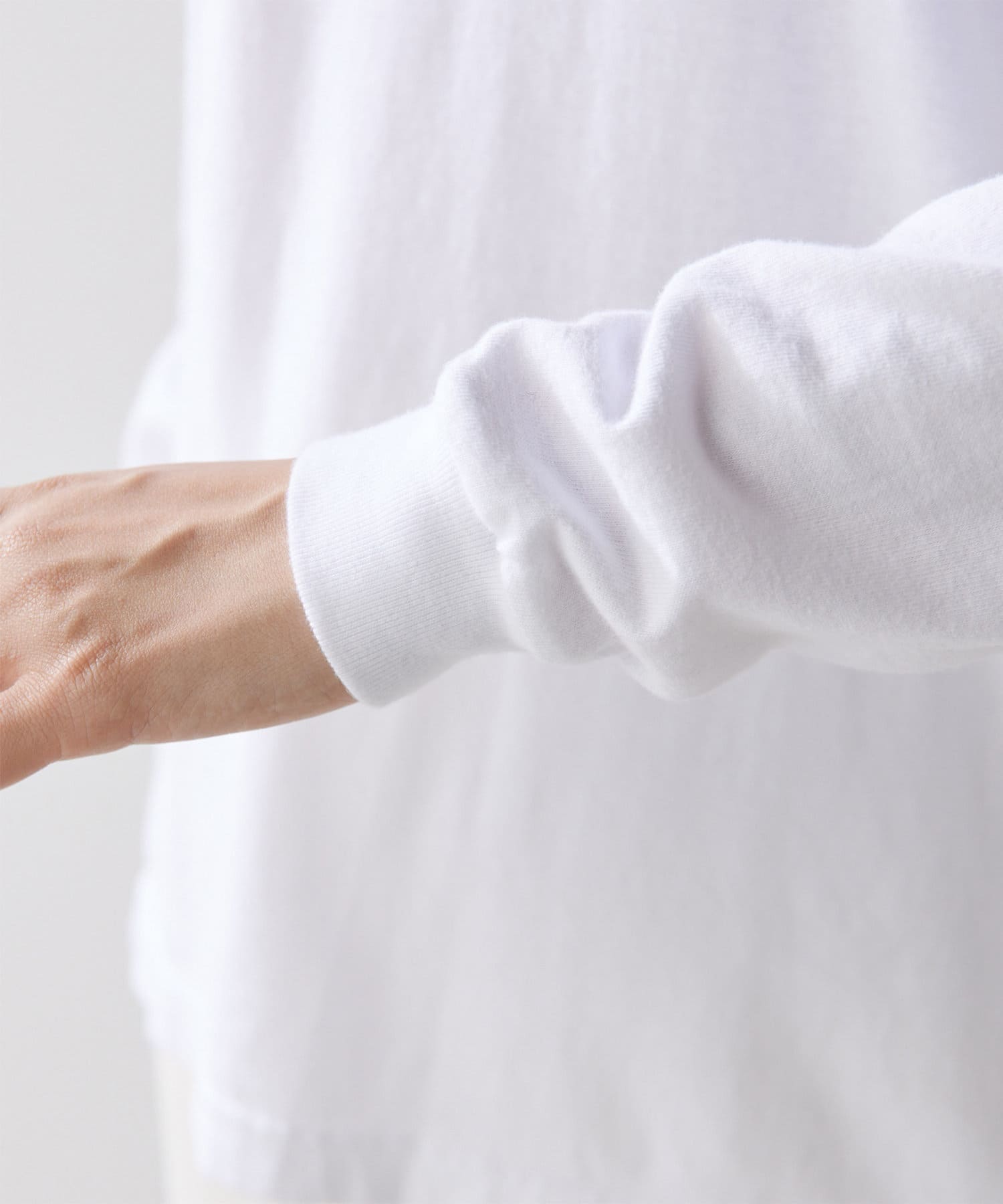 タイトなロンTで、首もとが詰まっているので、重ね着の下に着やすいです。とにかくロゴがかわいいので、ジャケットなどの羽織りものを着る時にも使いやすいです。