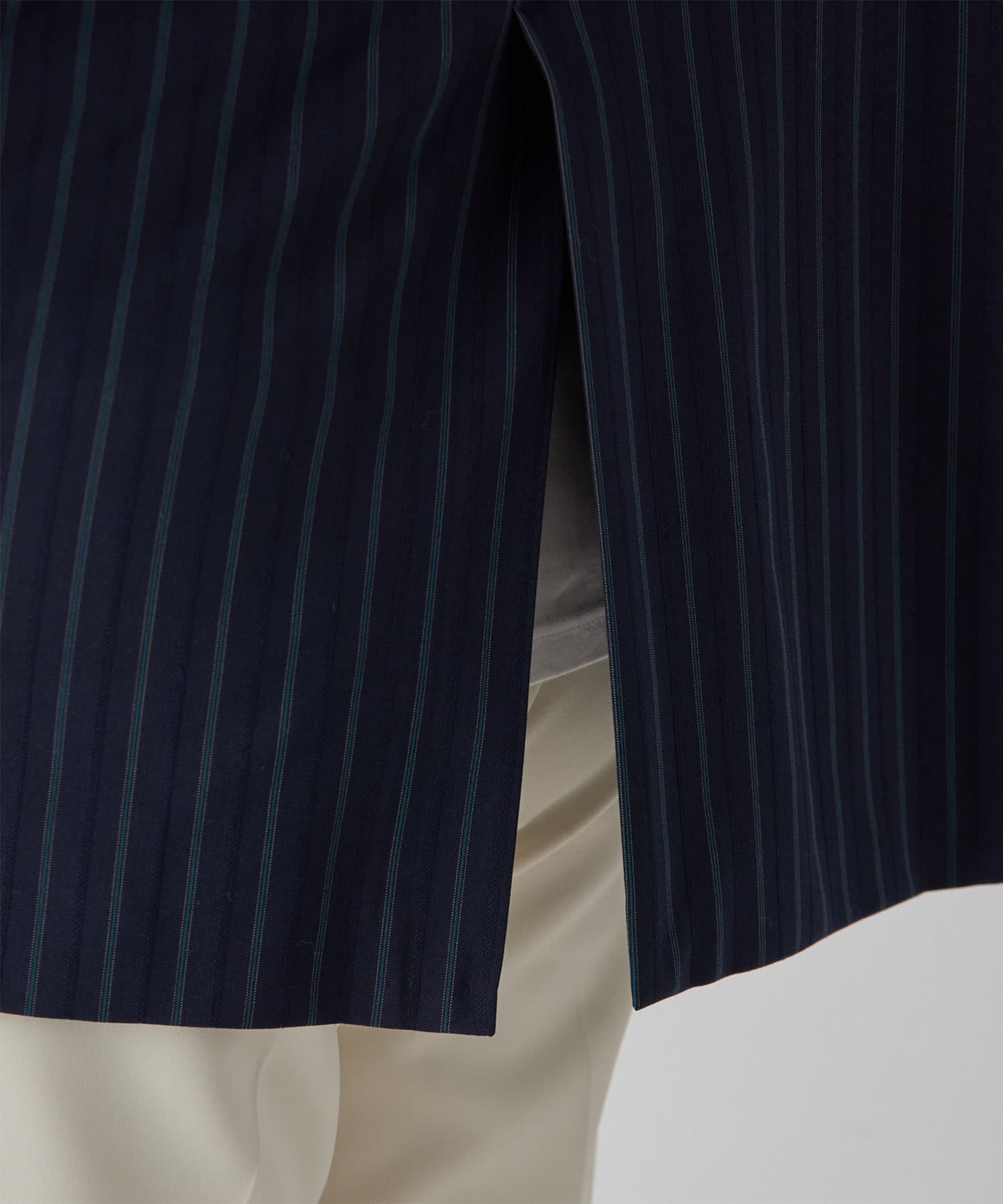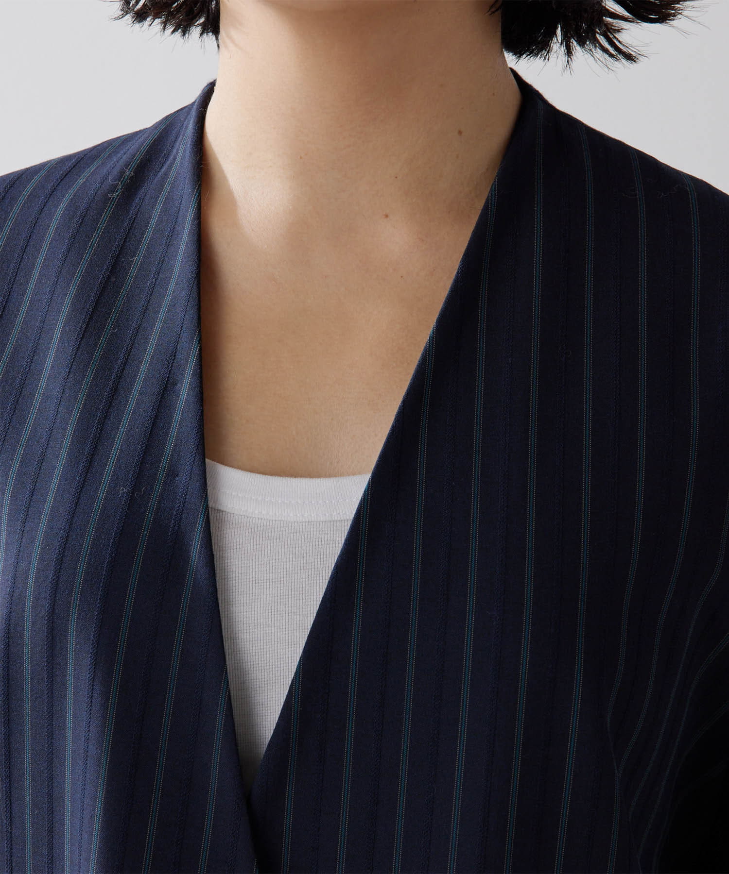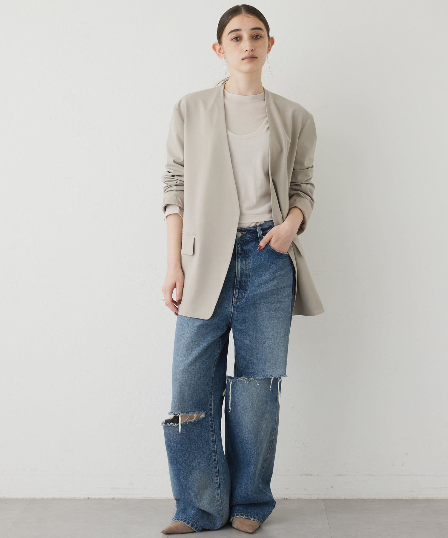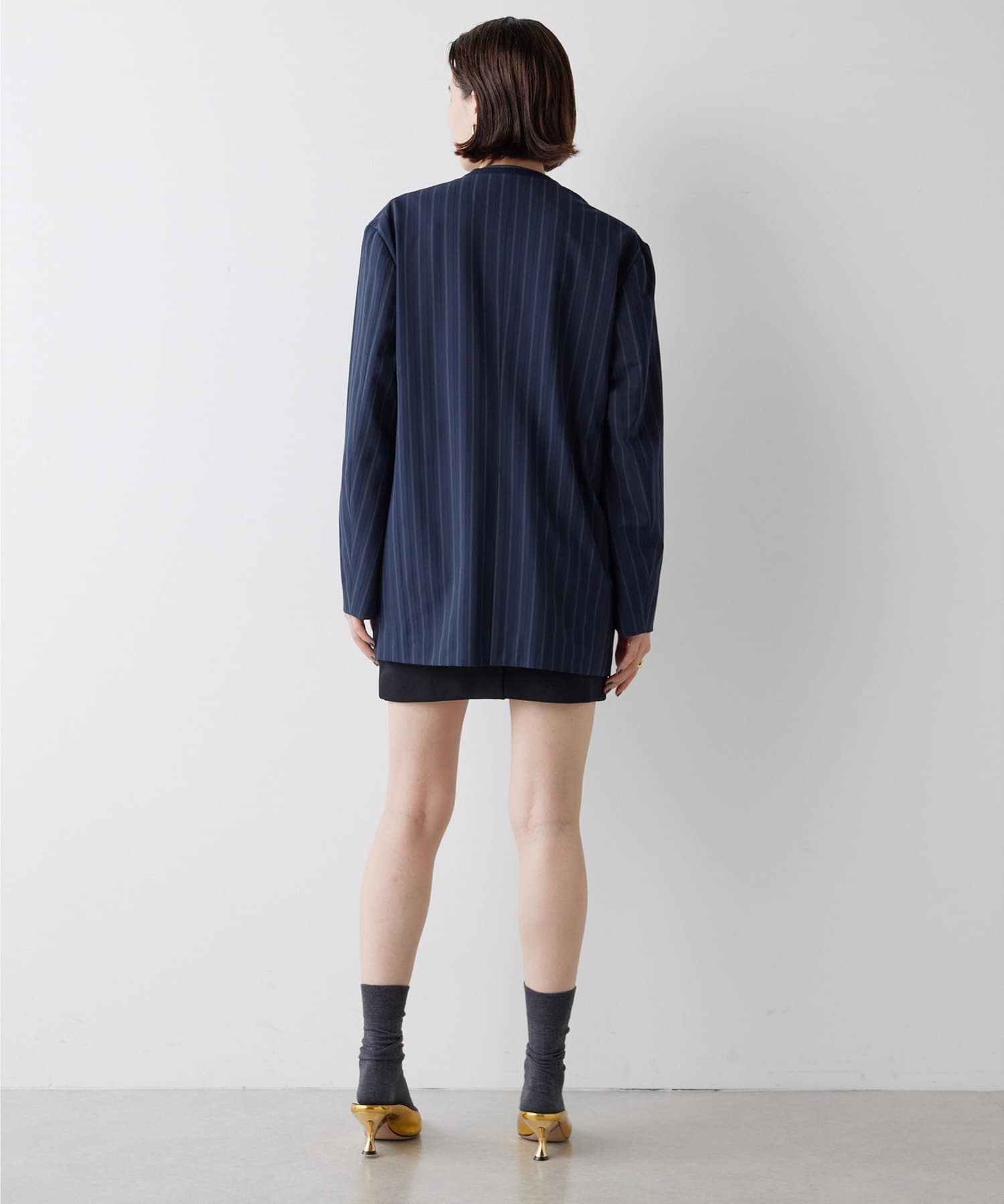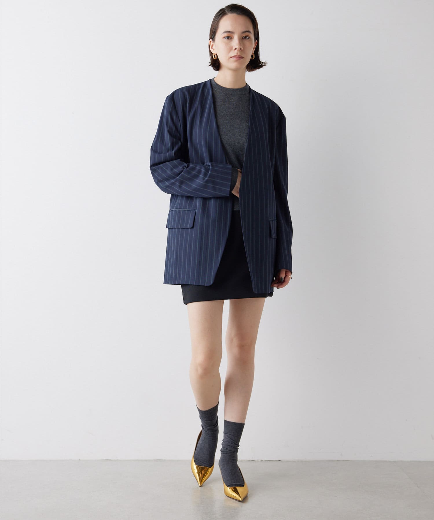 ■肩の落ちた抜けのあるシルエットと素材感を生かしたノーカラージャケット。
