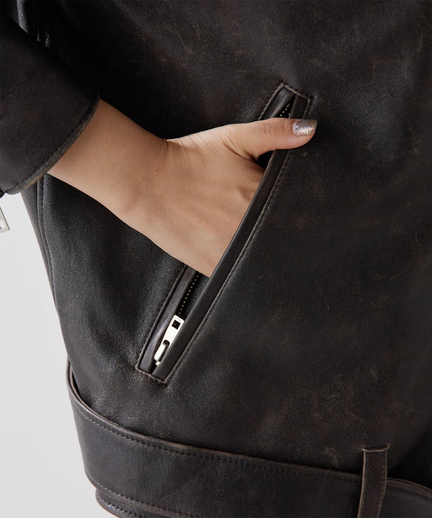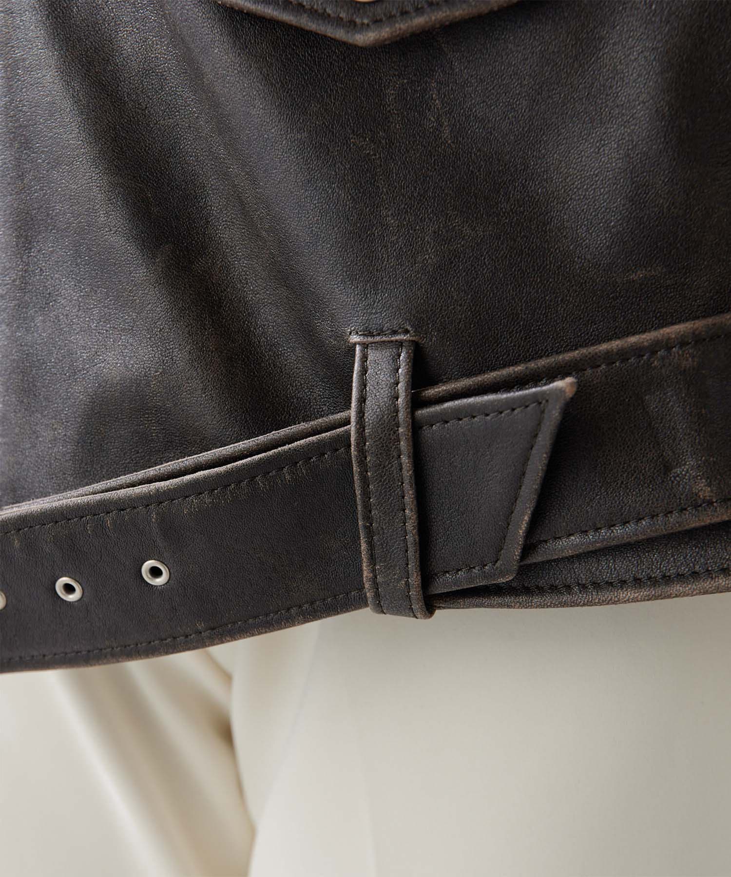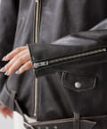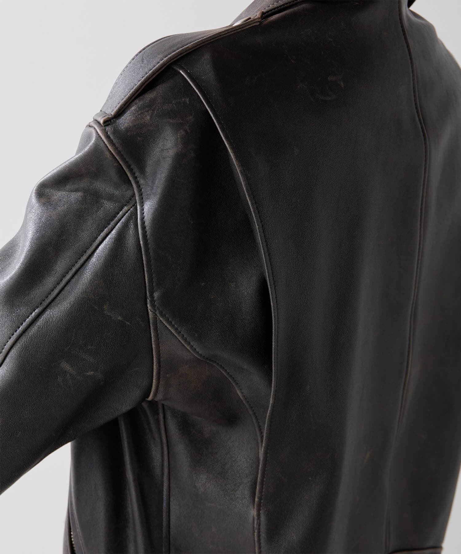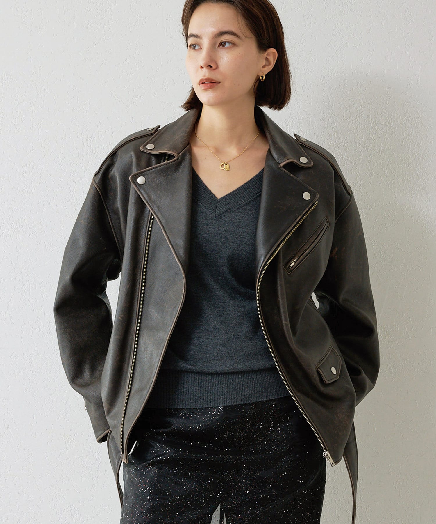 ■アンティーク感漂うレザーがスタイリングを格上げしてくれる一着。