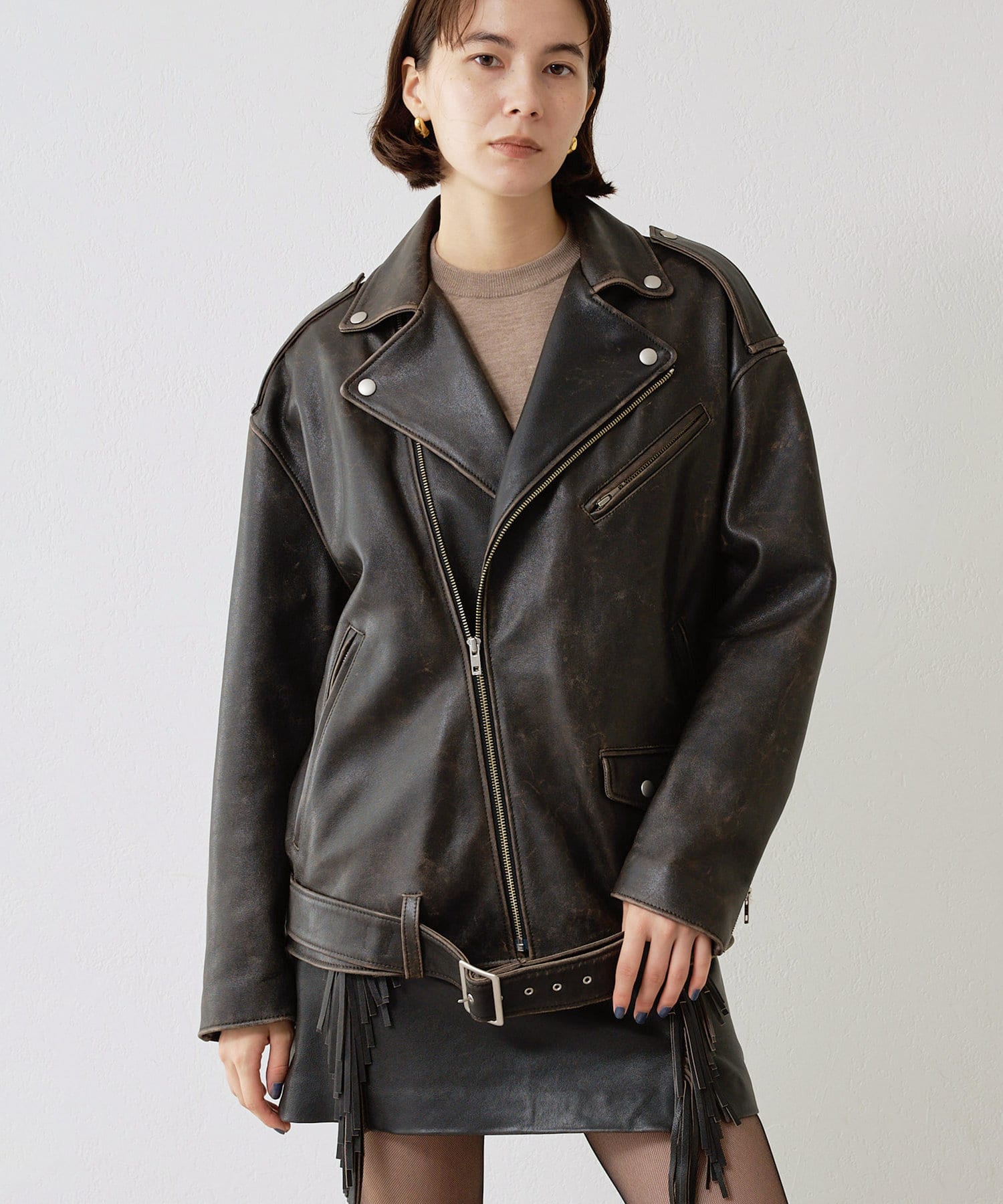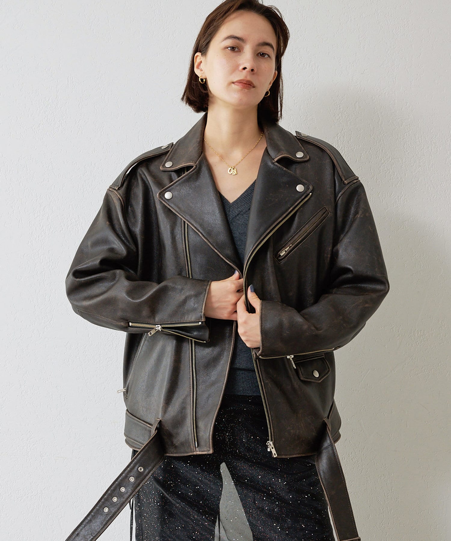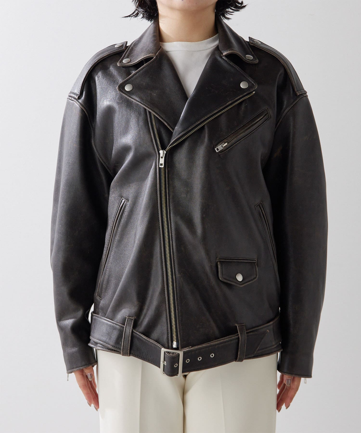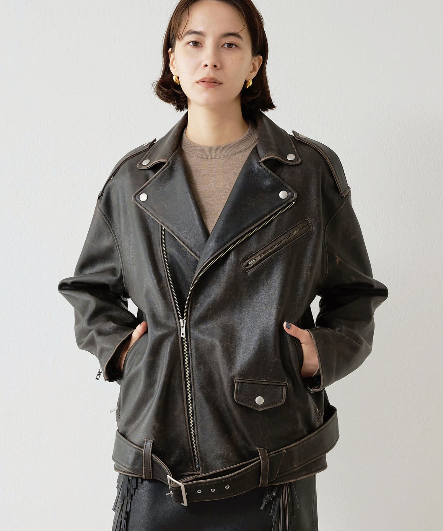 ■程よいオーバーシルエットが特徴的なレザージャケット。