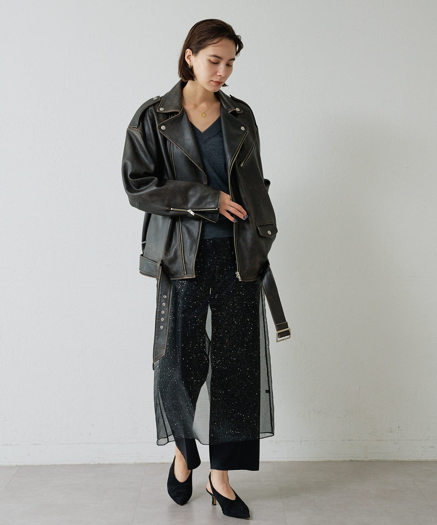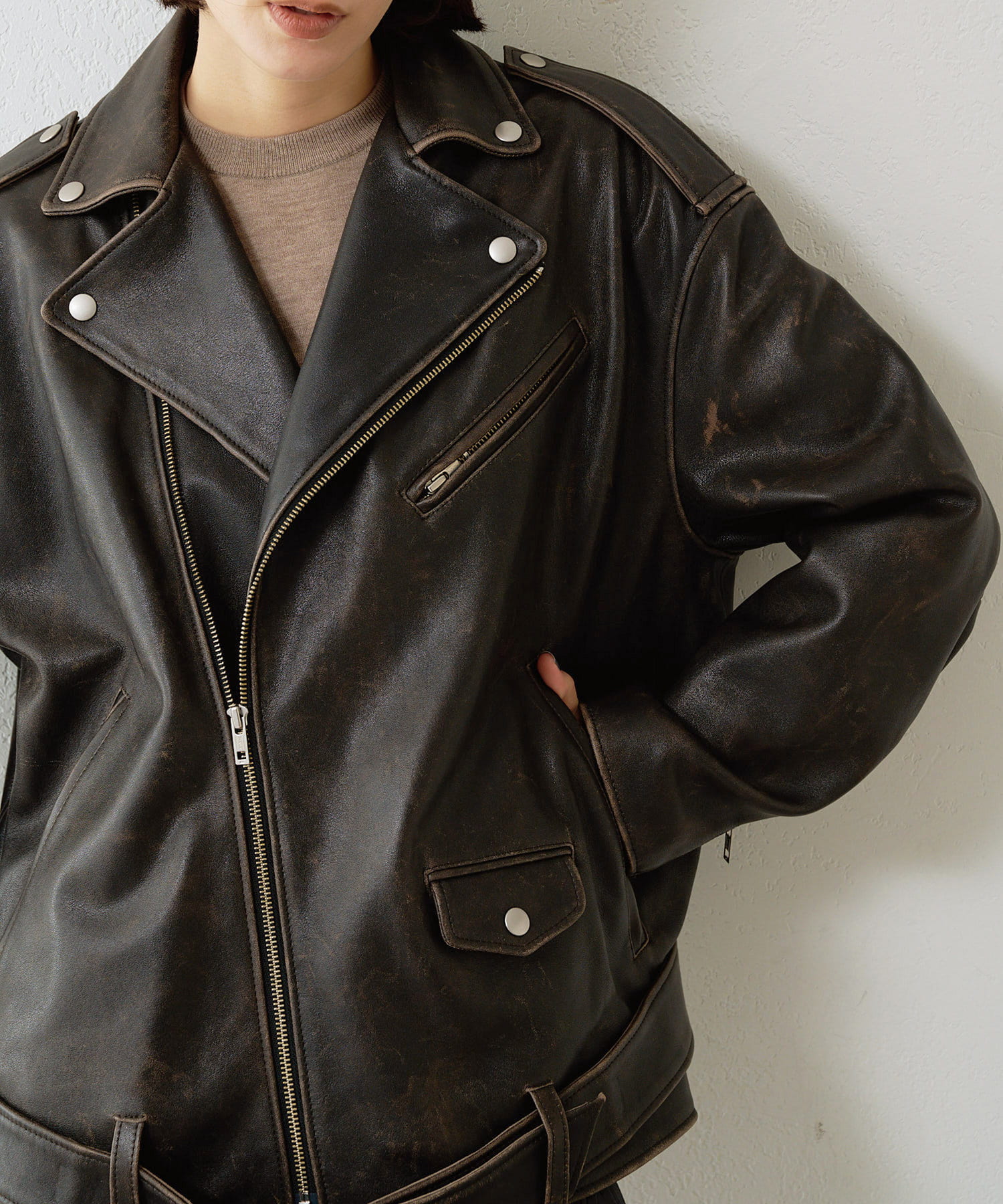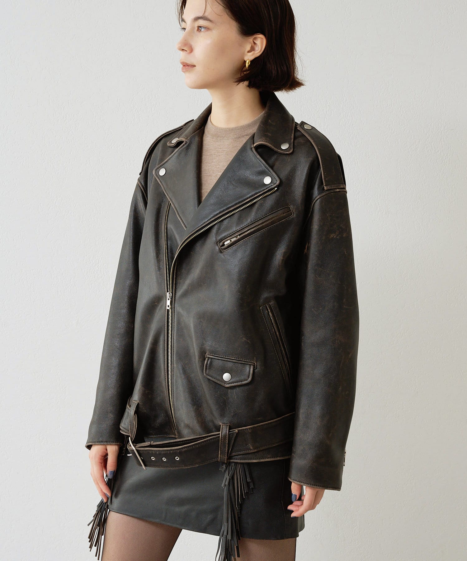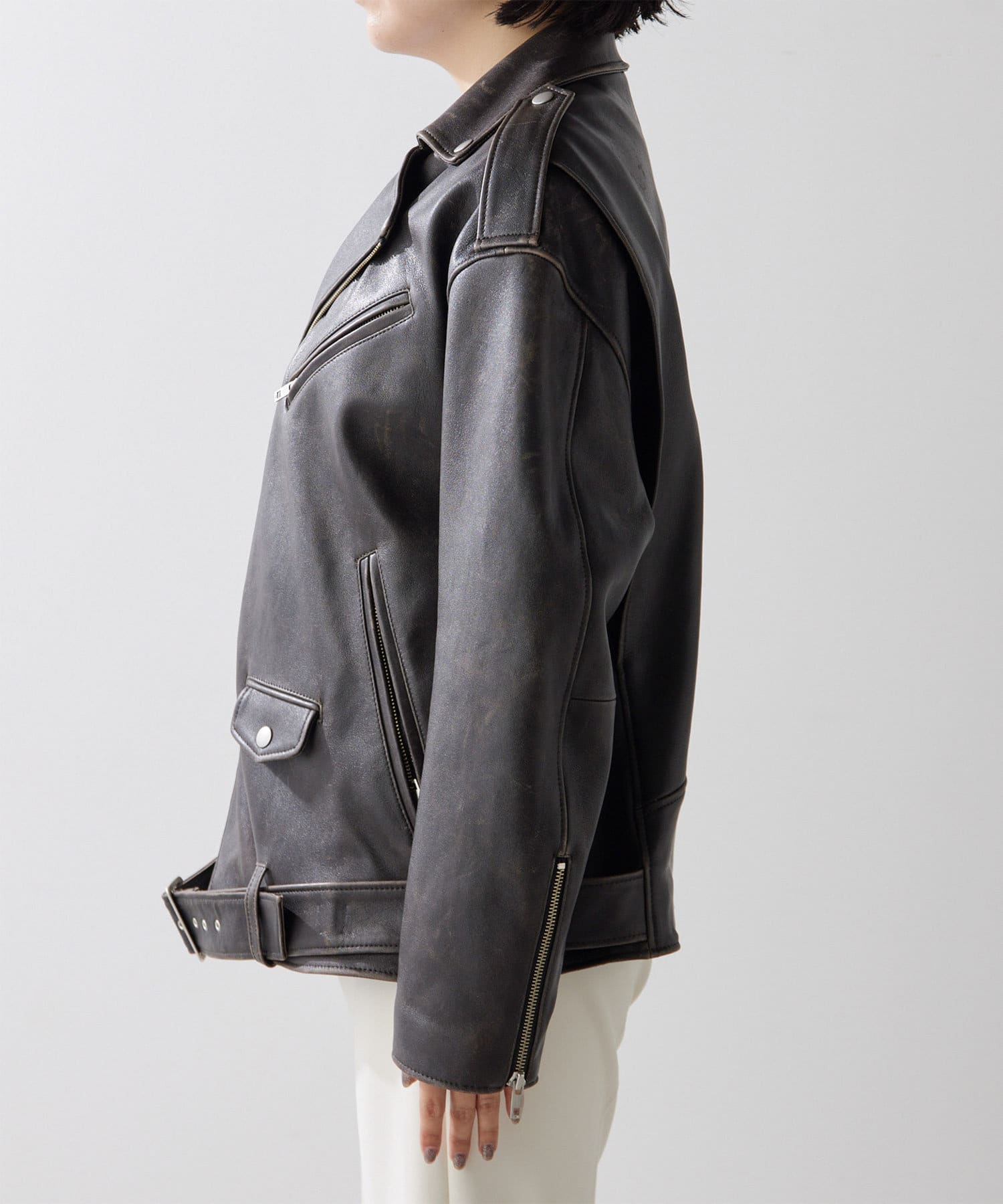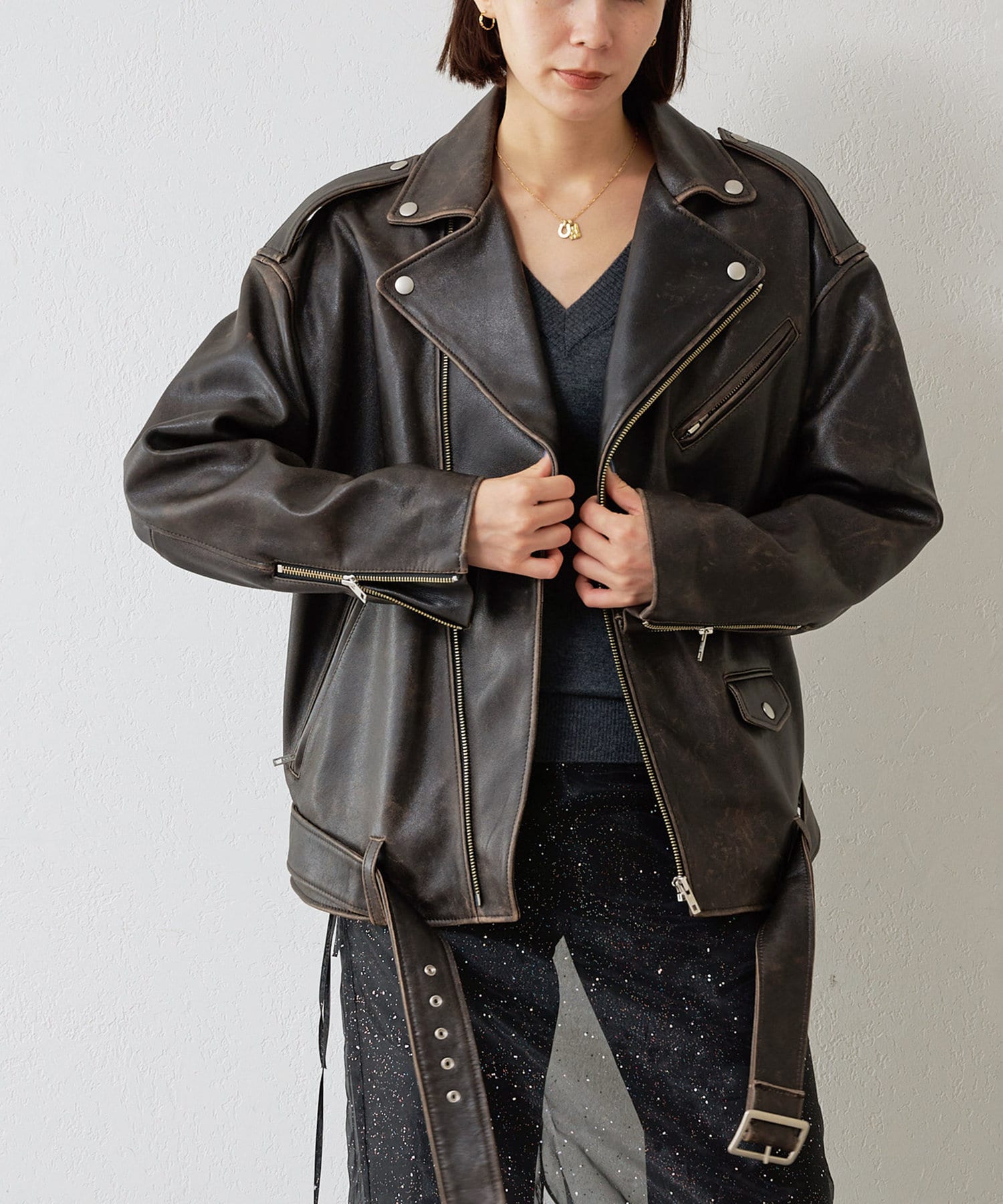 ■程よいオーバーシルエットが特徴的なレザージャケット。