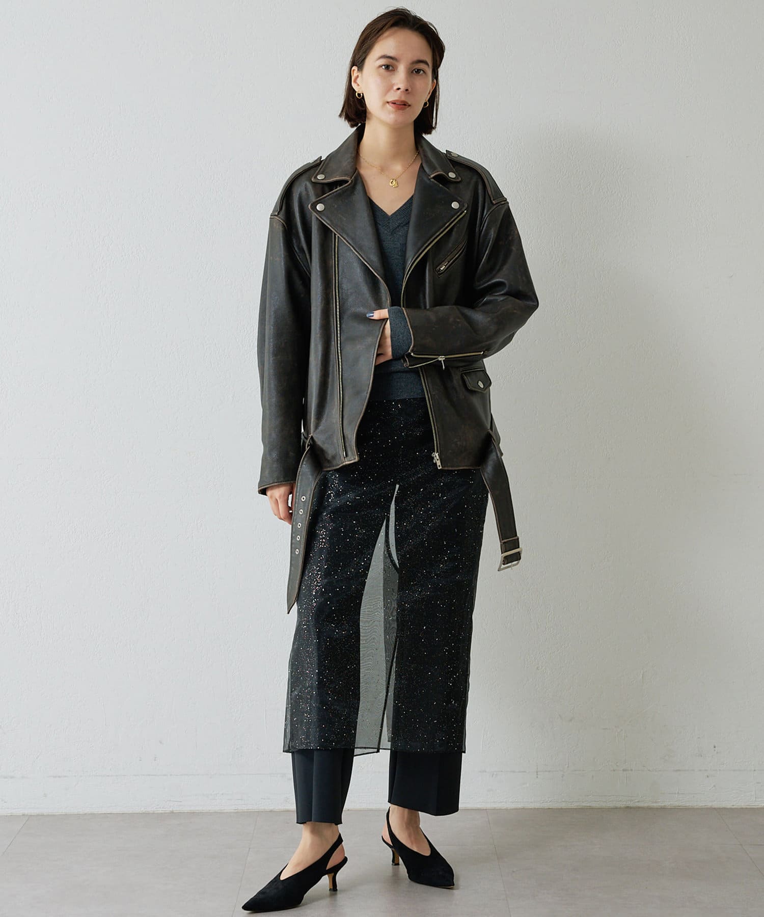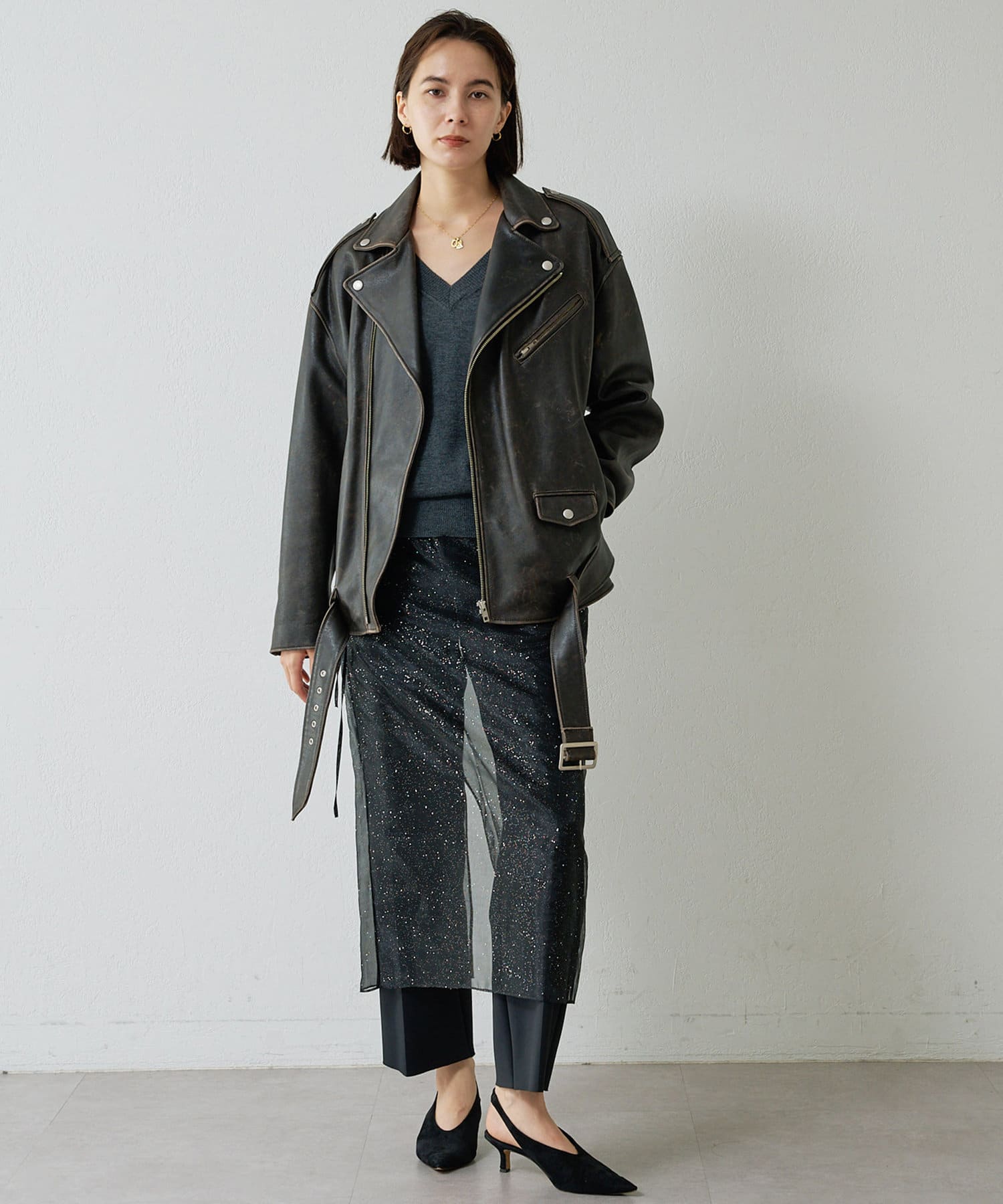 ■甘めのボトムを合わせても、辛めのデザインが着こなしをスタイリッシュに仕上げてくれるアイテム。