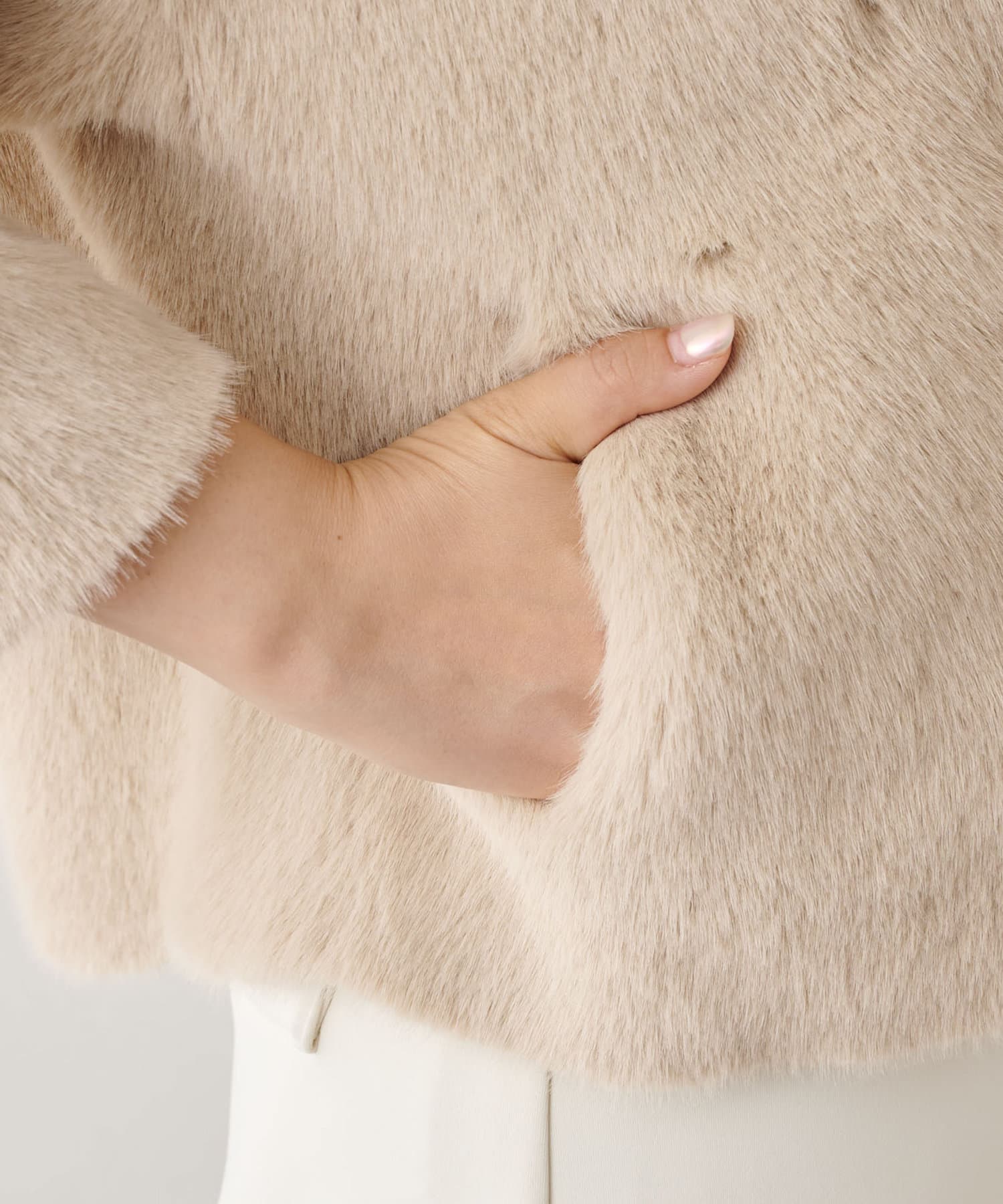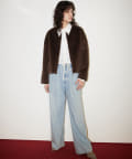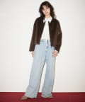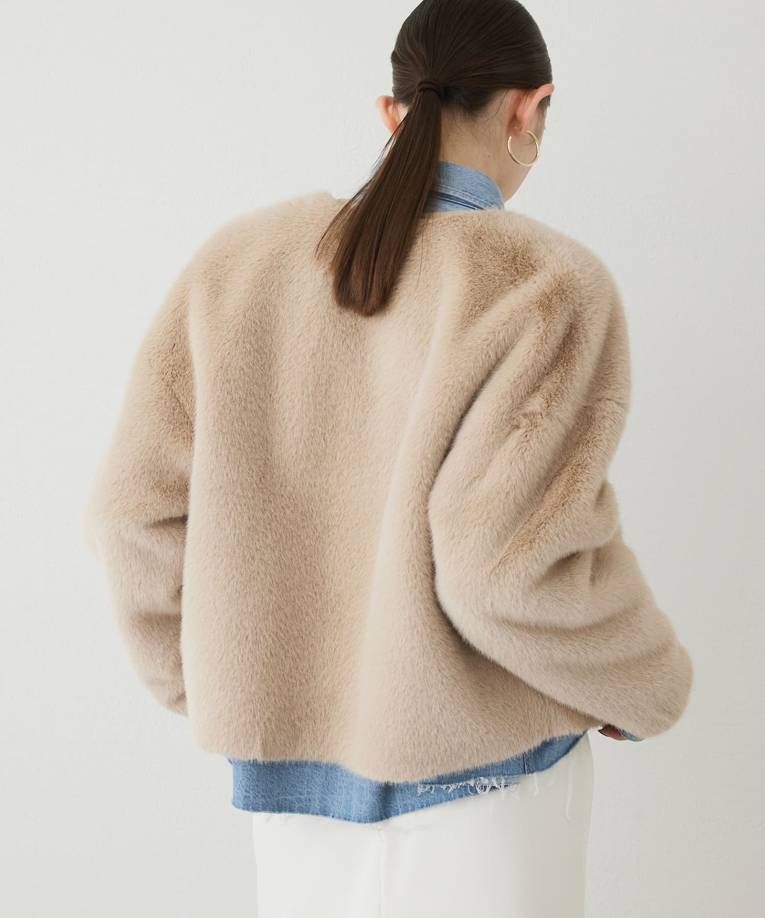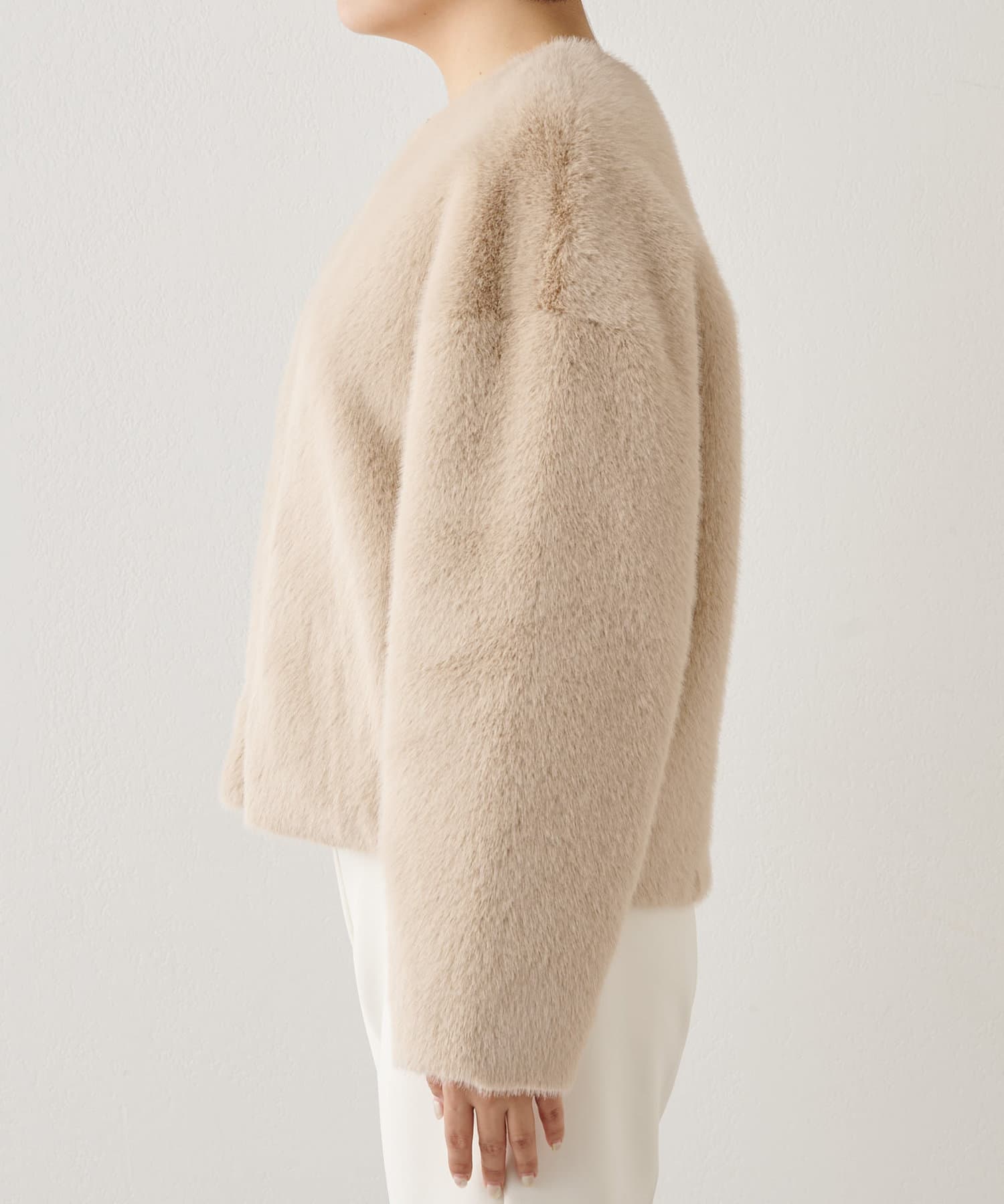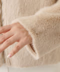 ■ミンクファーを模したフェイク素材を使用したショートコート。
