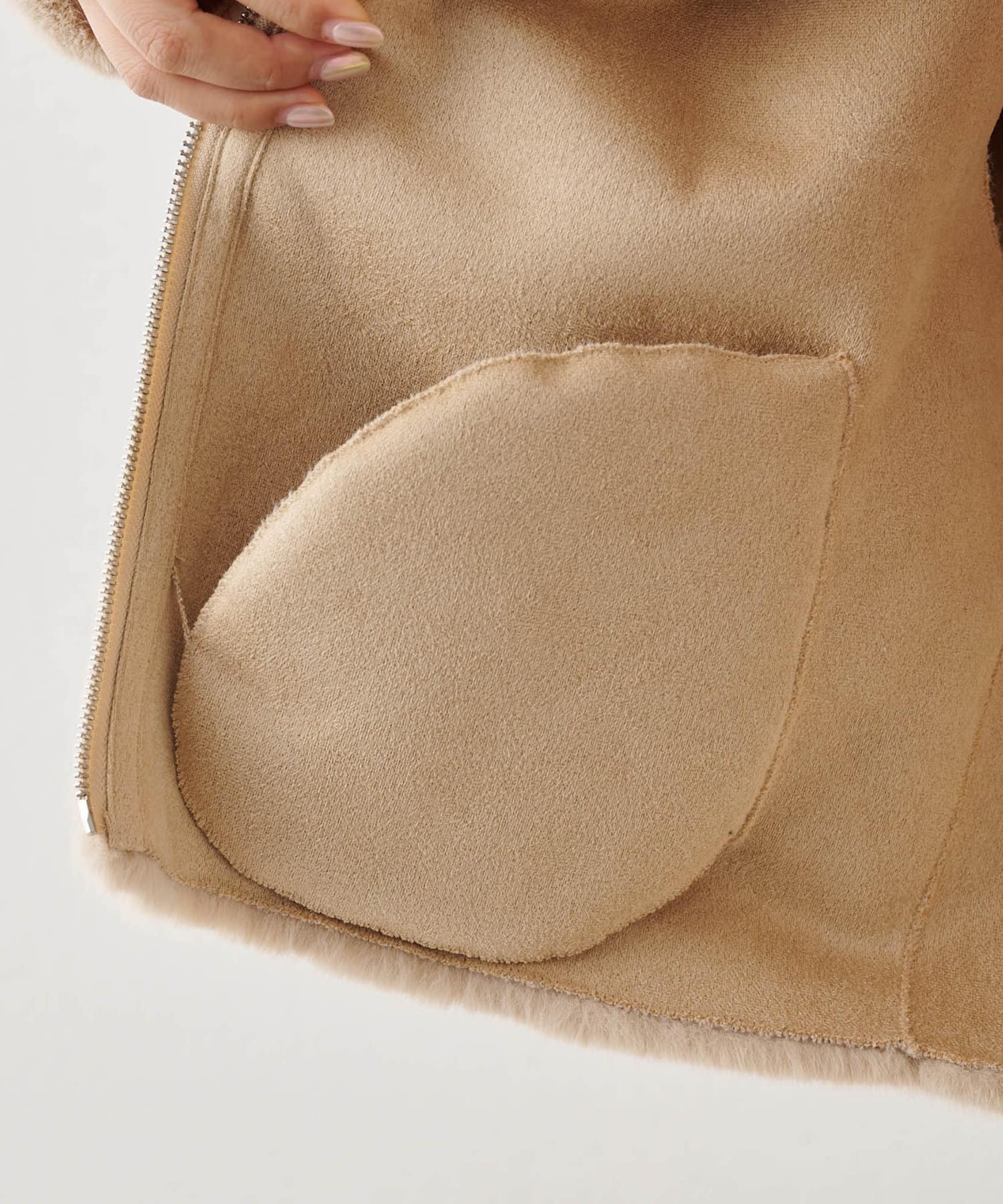 ■裏地はフェイクスエードのダブルフェイス仕様にして温かみをプラス。