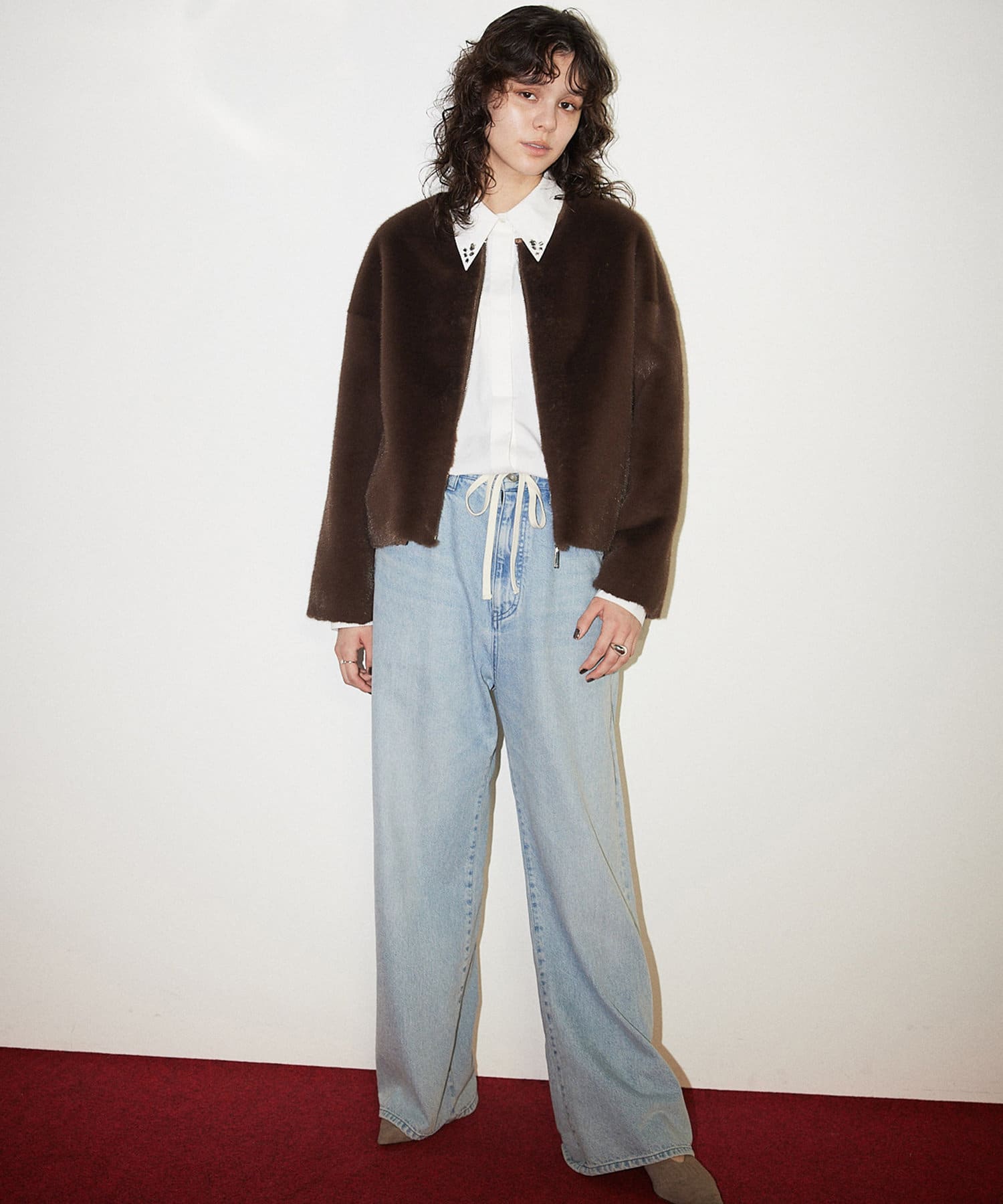 ■コンパクトながらもゆとりのあるシルエットは、インナーにカットソーやニットだけでなく、デニムジャケットなどをレイヤードするのも◎。