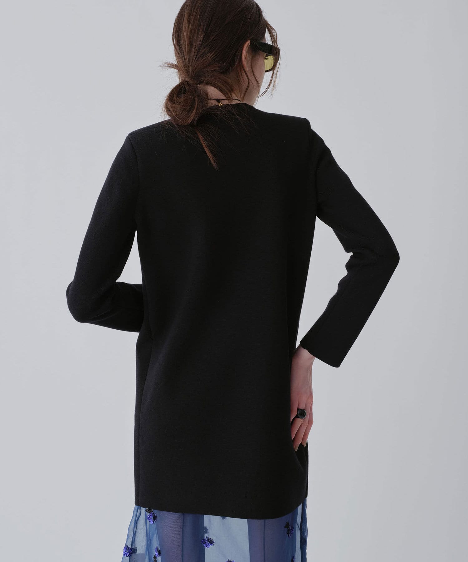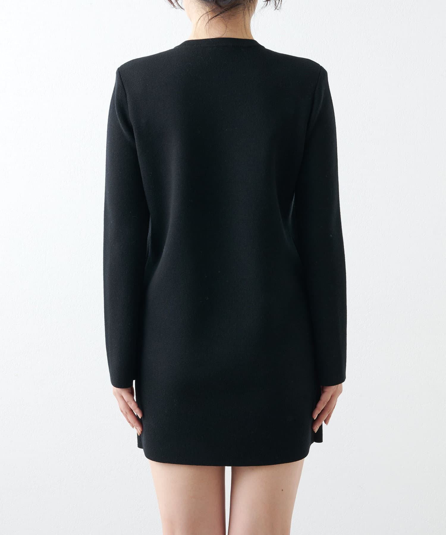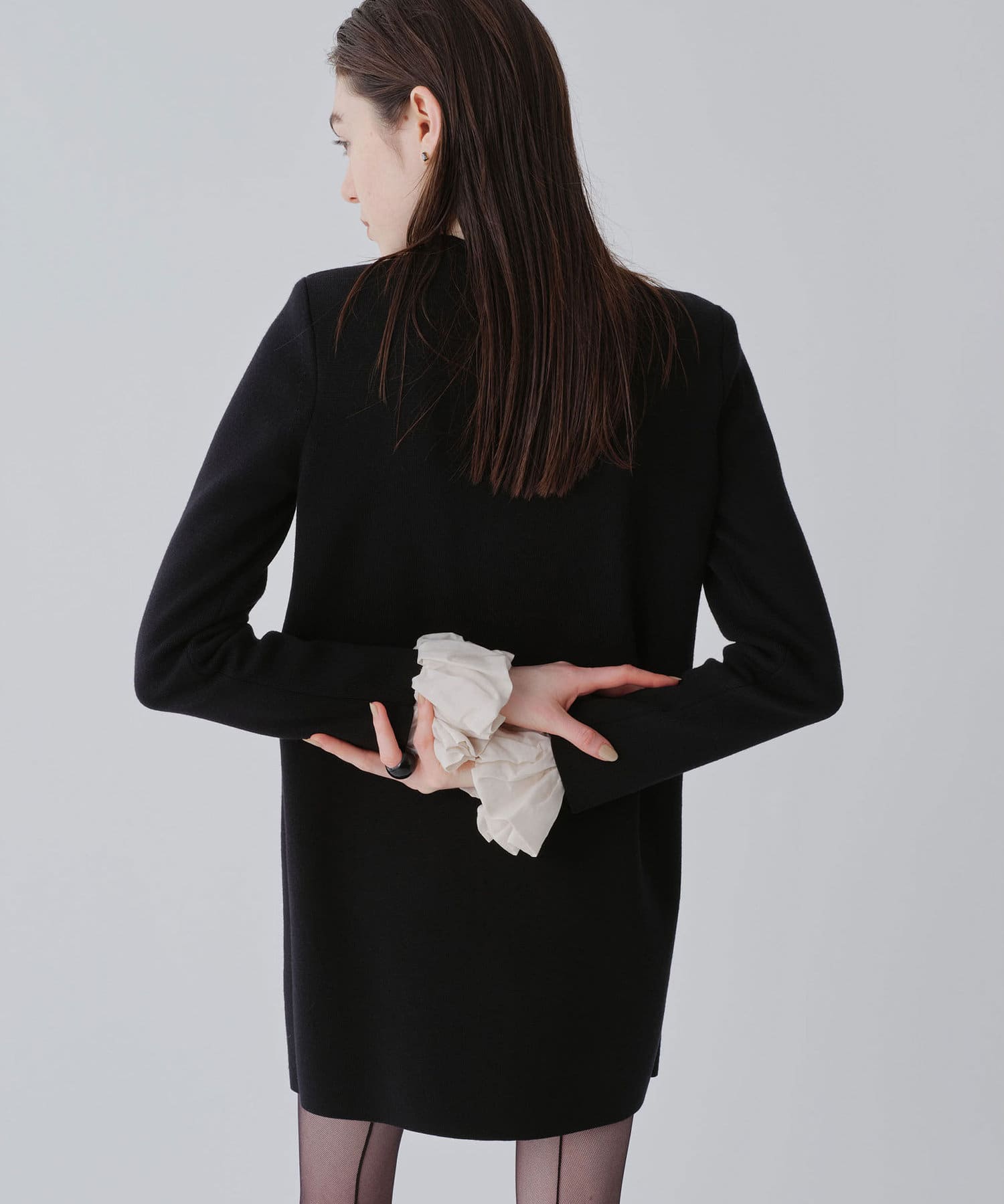 ■ミラノリブのしっかりとした肉感に、肩パッド入りのデザインできれいなフォルムの出る一着。