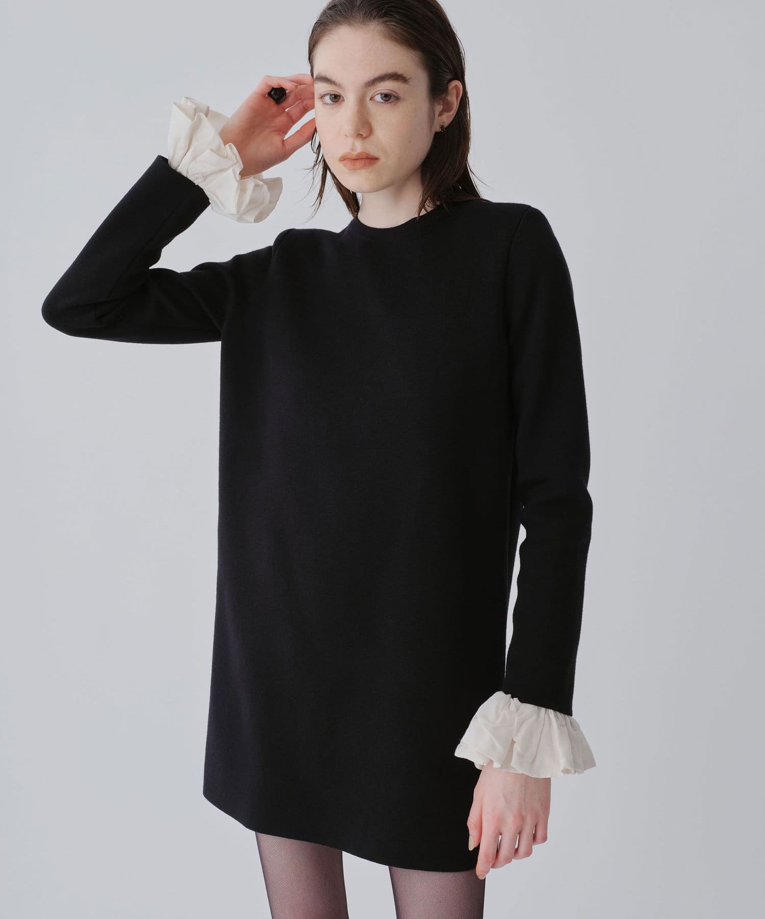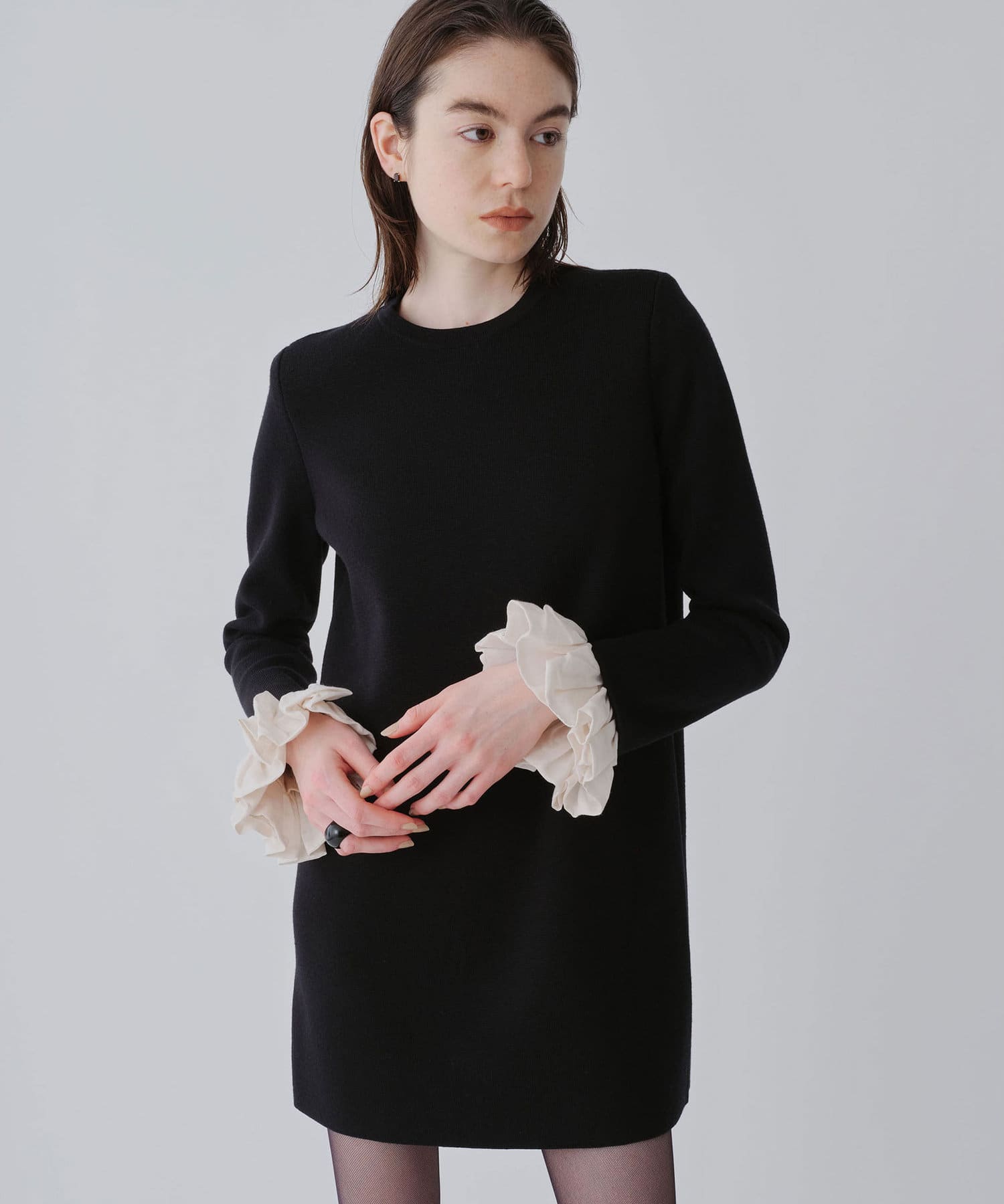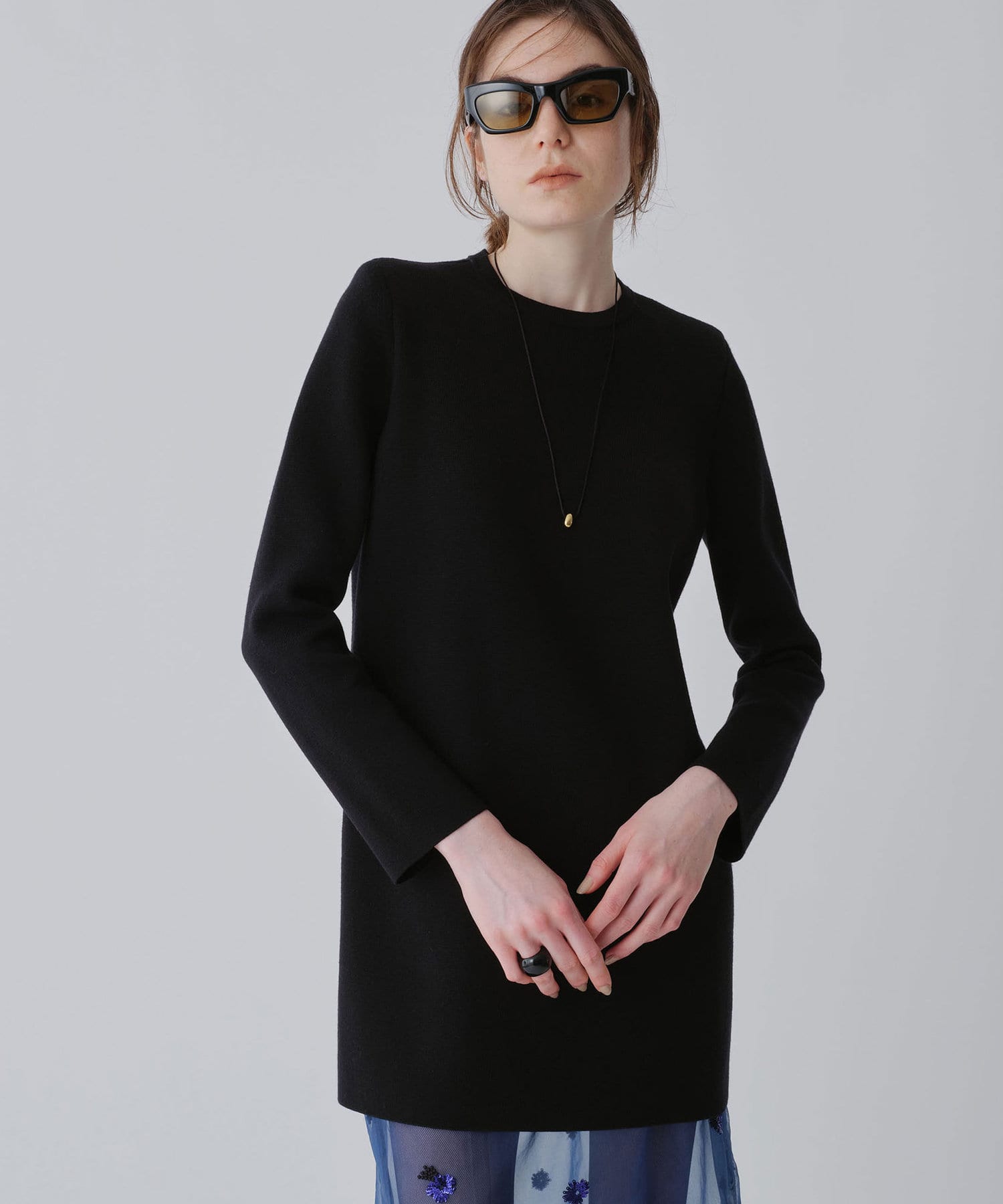 ■ブランド定番のセミ梳毛のウルトラファインメリノウールを使用したニットワンピース。