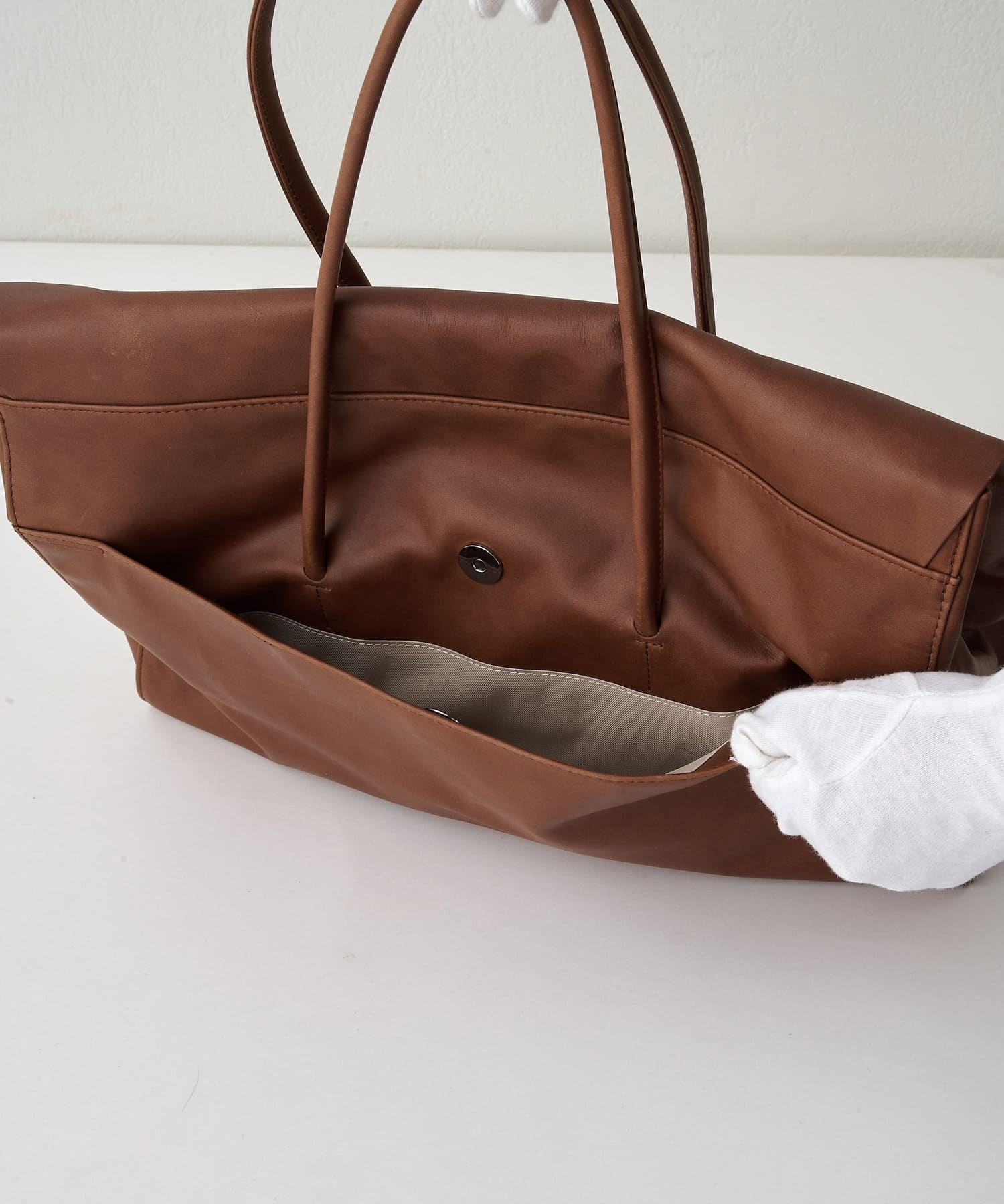 ■ソフトなスムースレザーを生かした作りでありながら、厚めな底板をいれて型崩れしにくいのも◎。