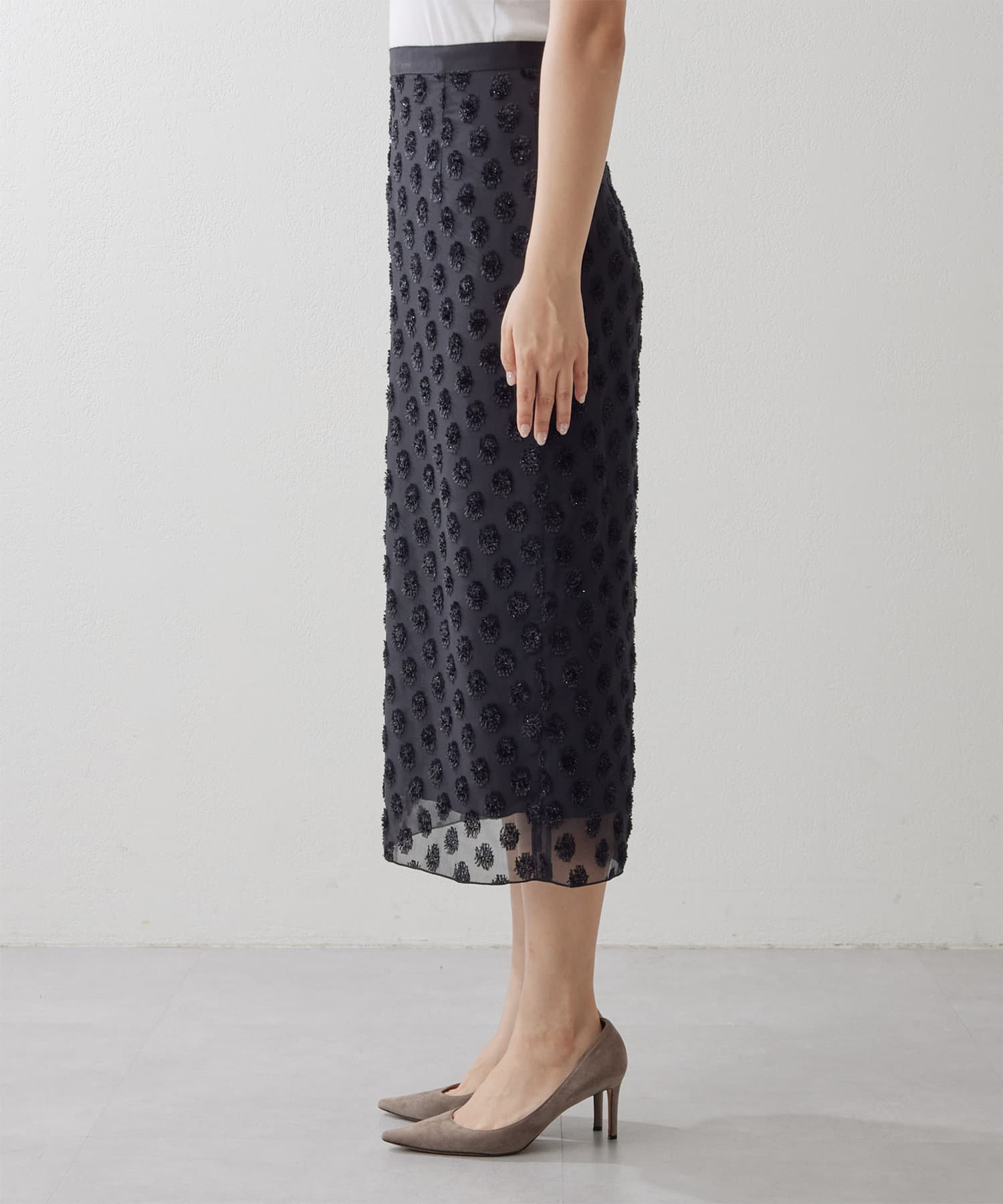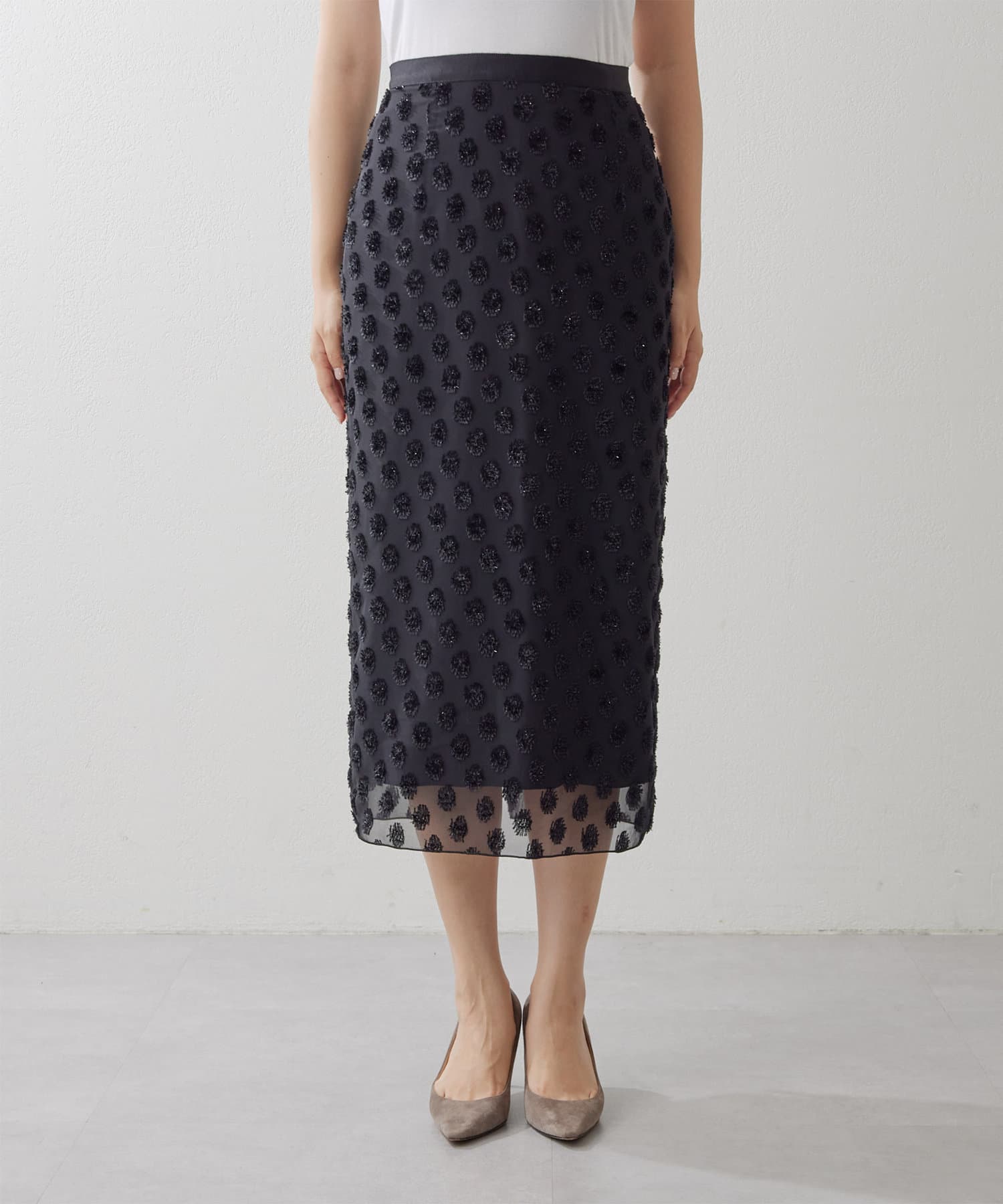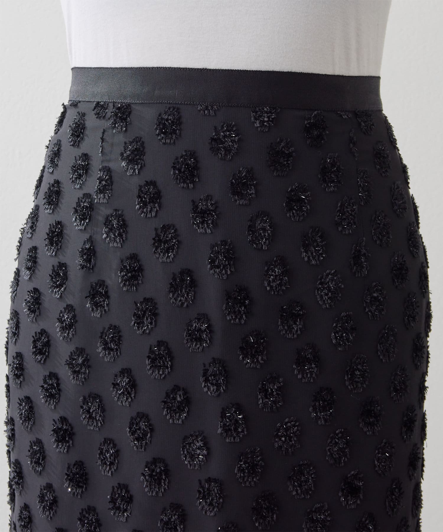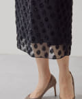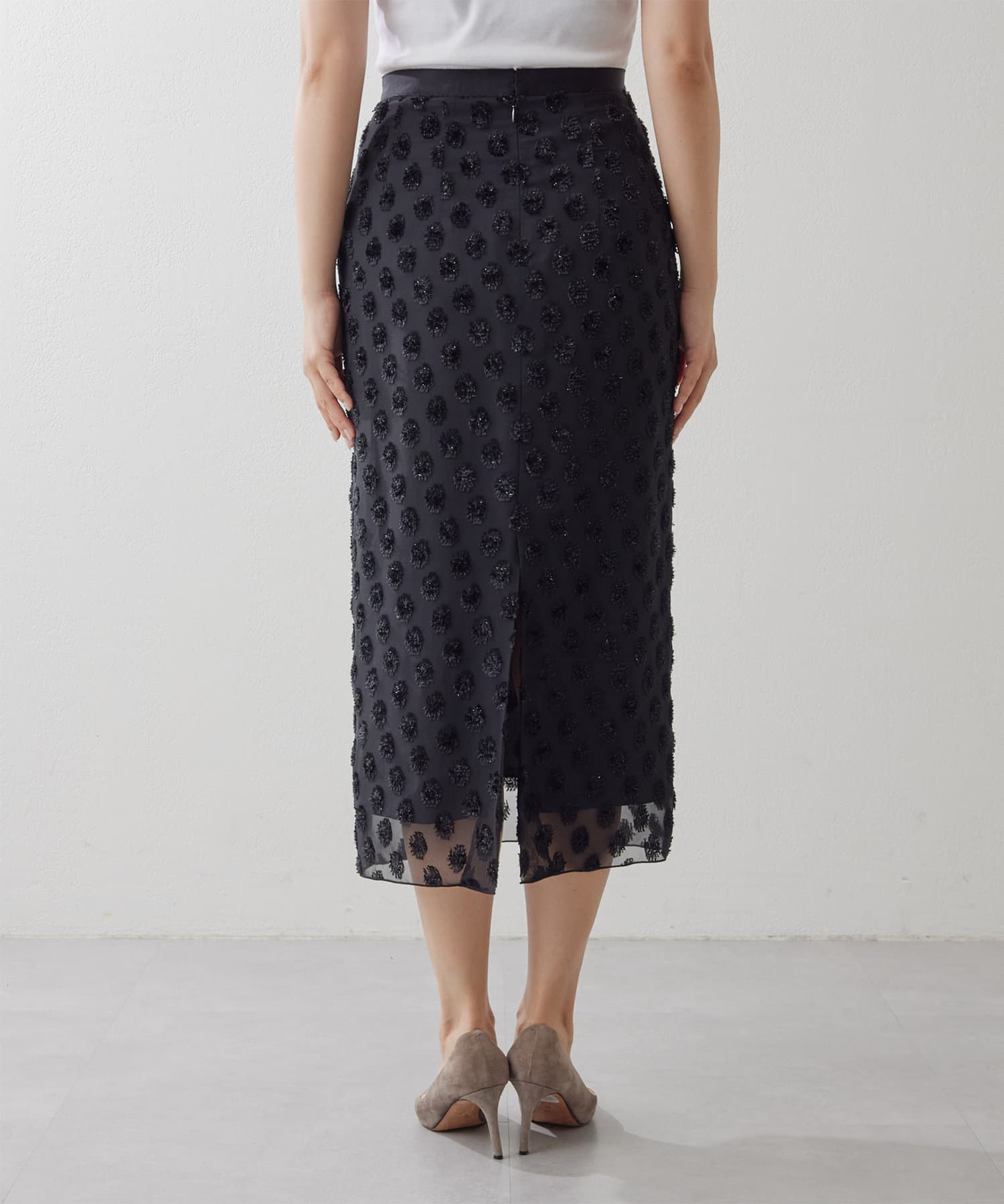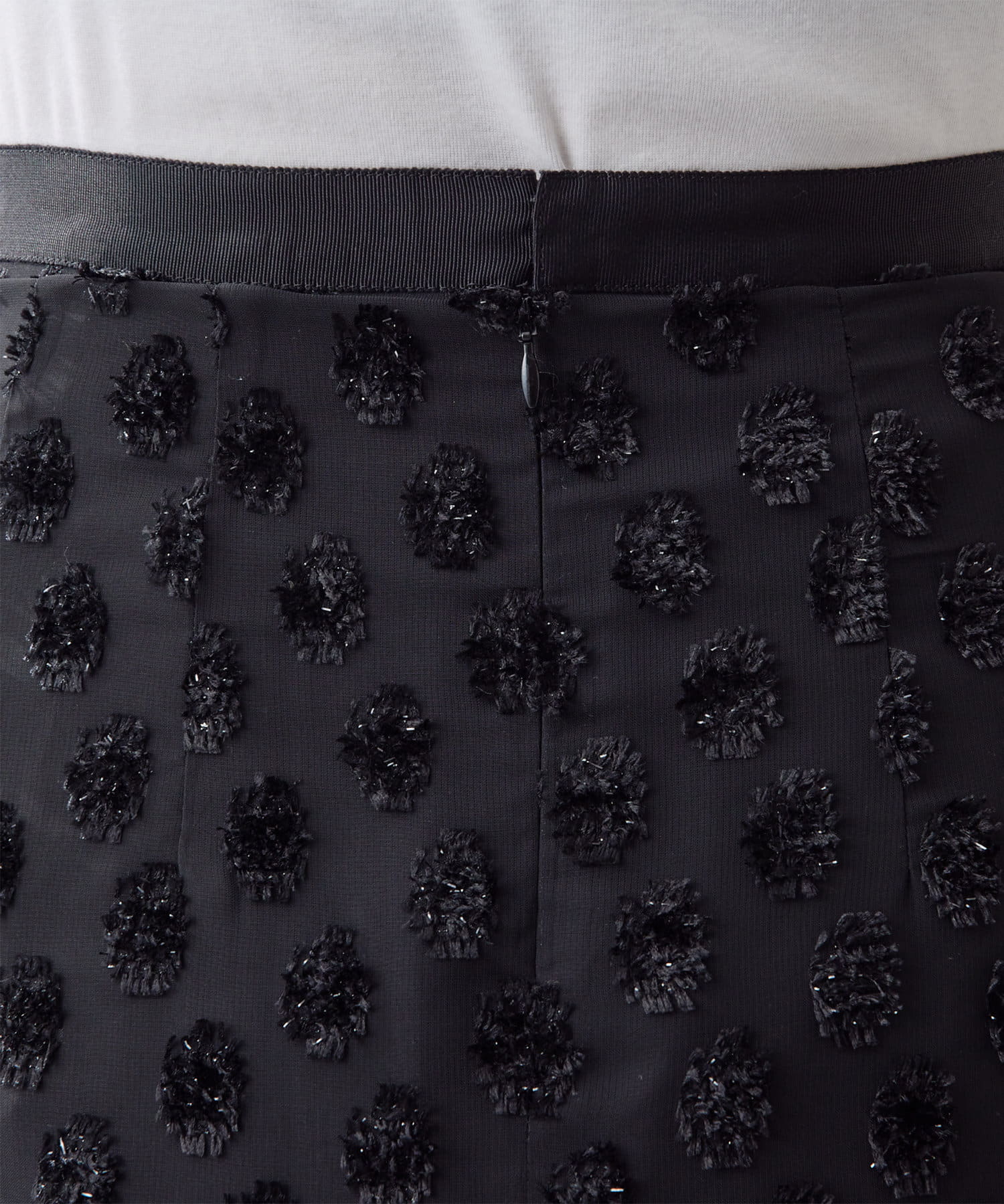 ■シアーな表情とラメ入りのドットジャガードが華やかなスカート。