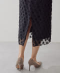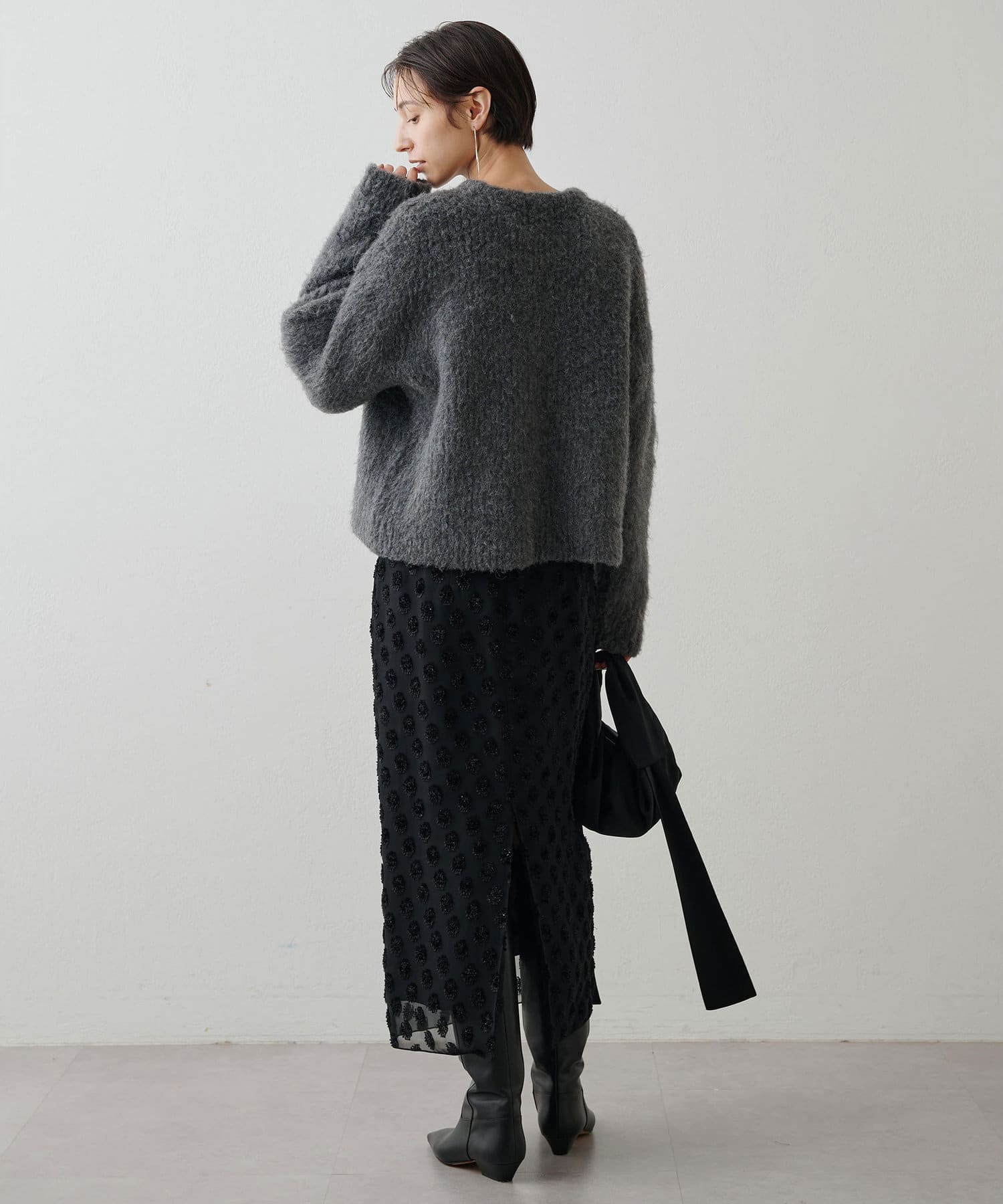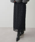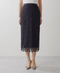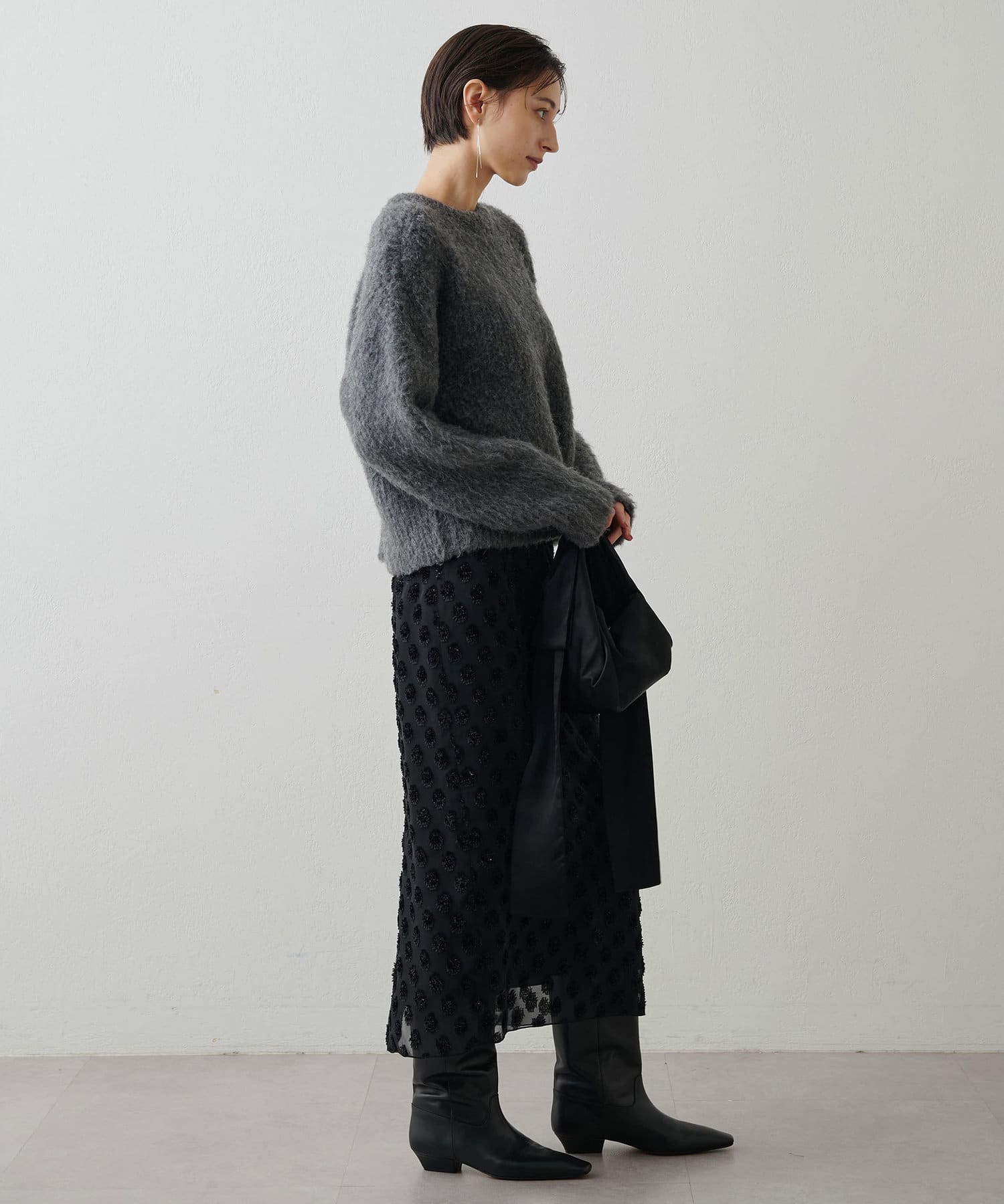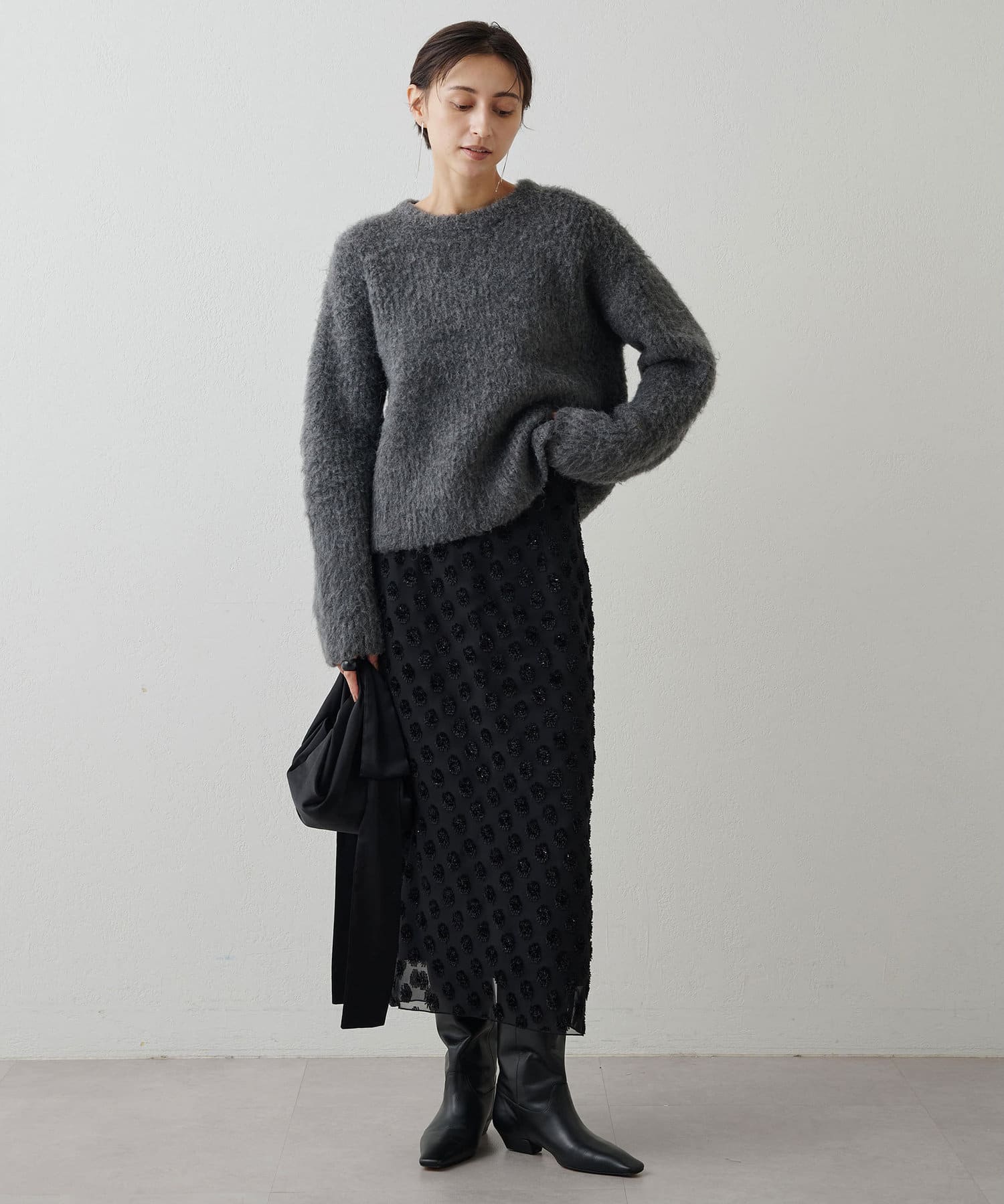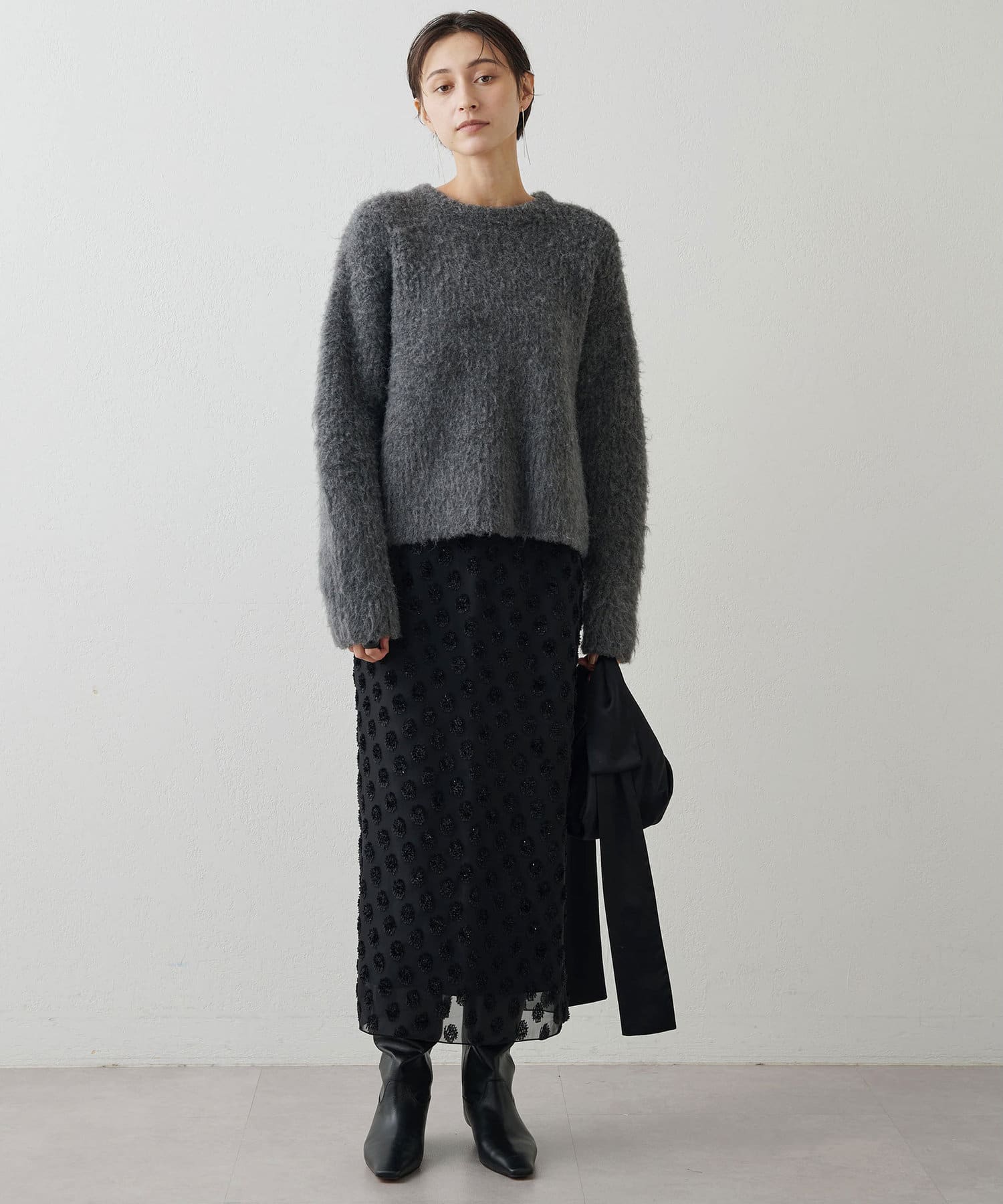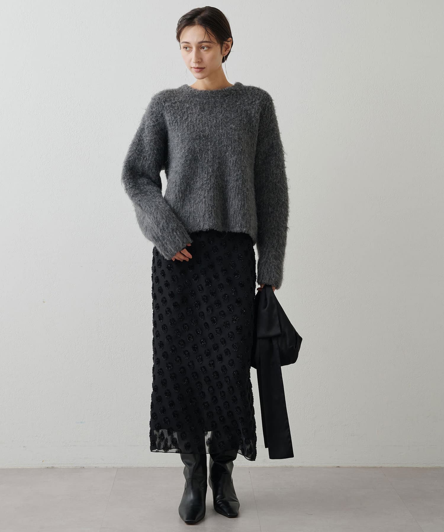 ■シアーな表情とラメ入りのドットジャガードが華やかなスカート。