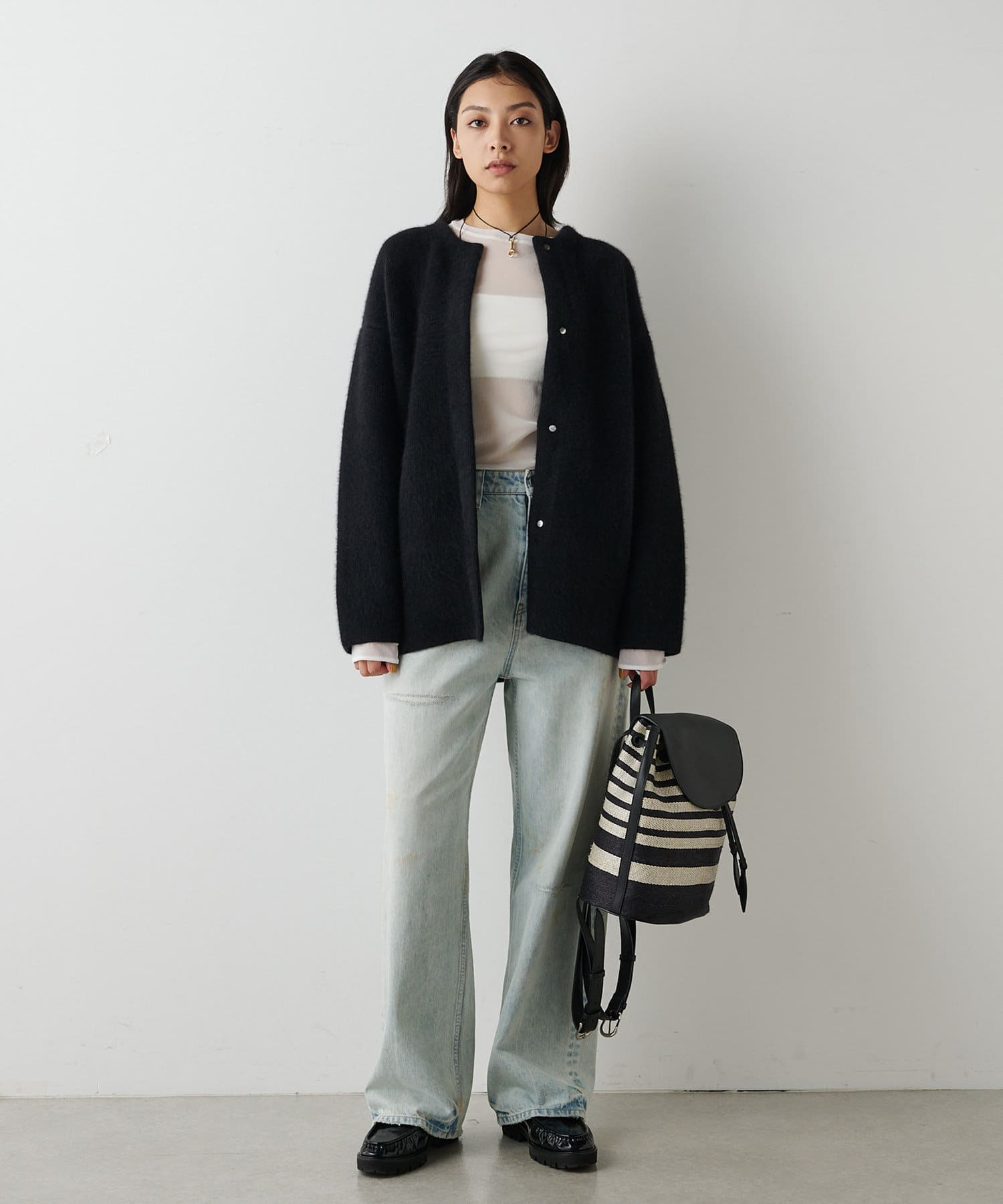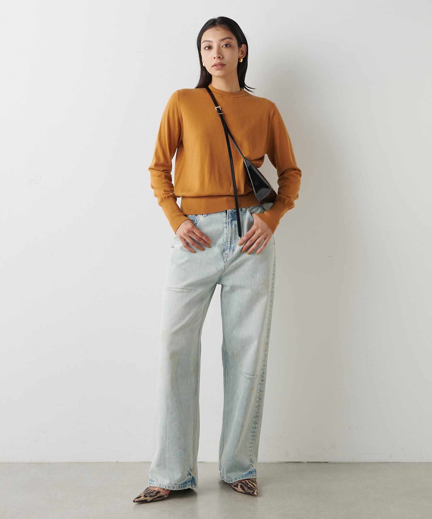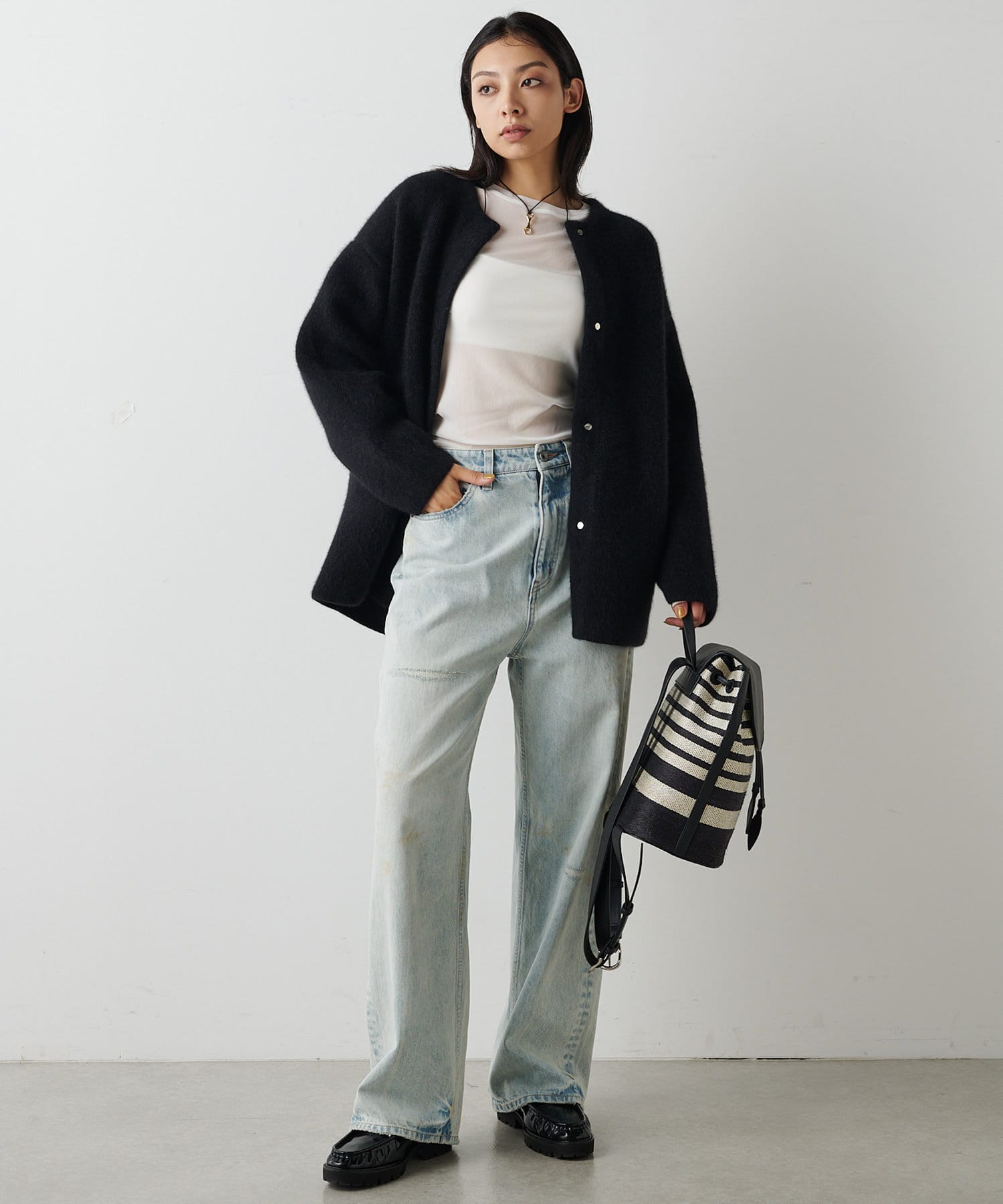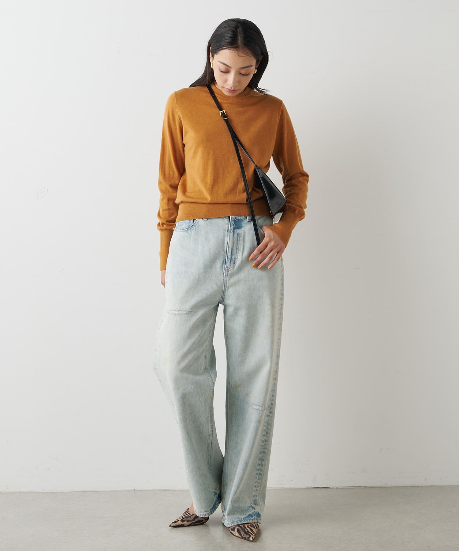 ■程よい加工感でカジュアルにもきれいめにも合わせやすく、様々なスタイリングを楽しめるアイテム。