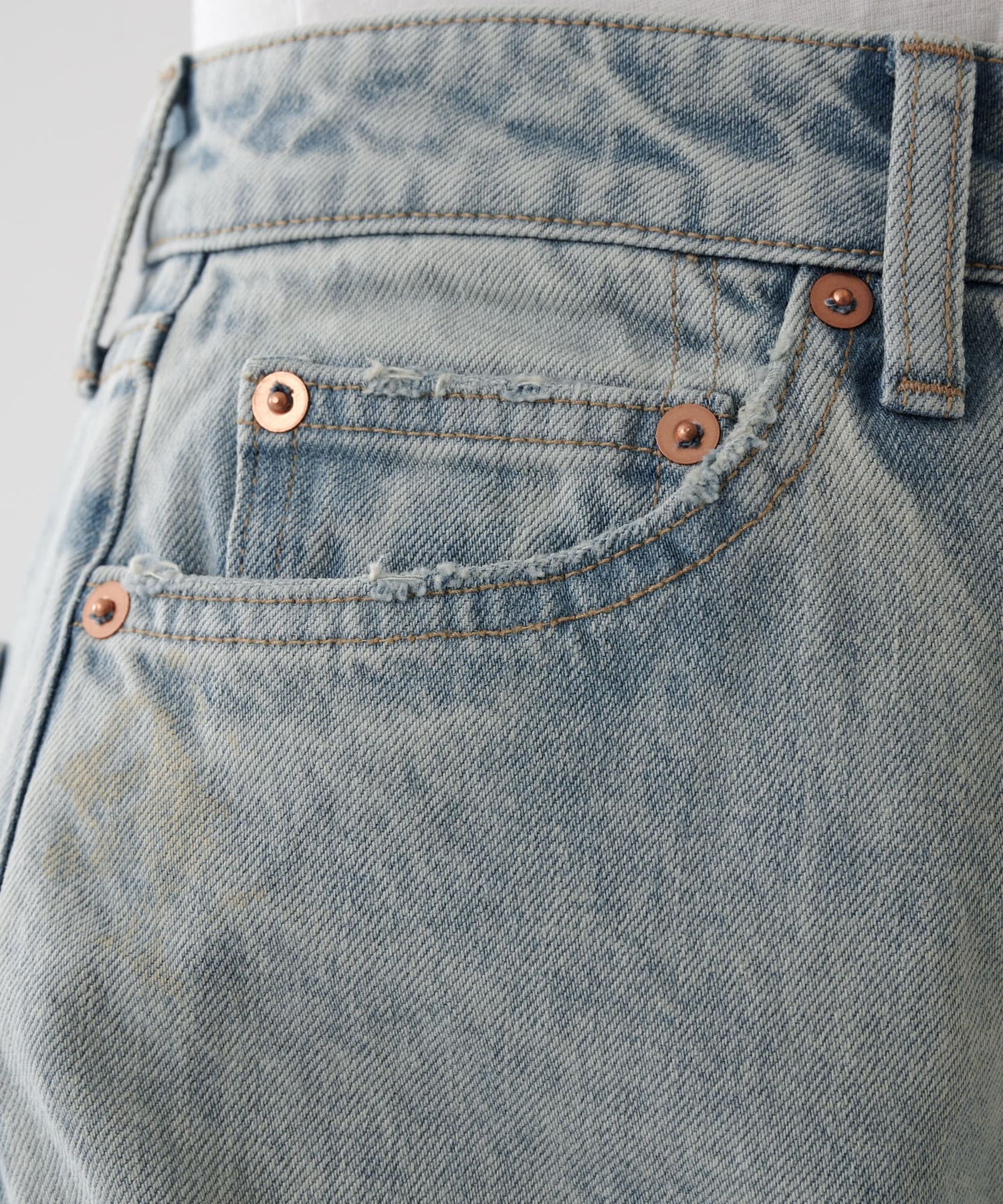 スカイブルー:ユーズド感を再現した淡いデニムブルー。