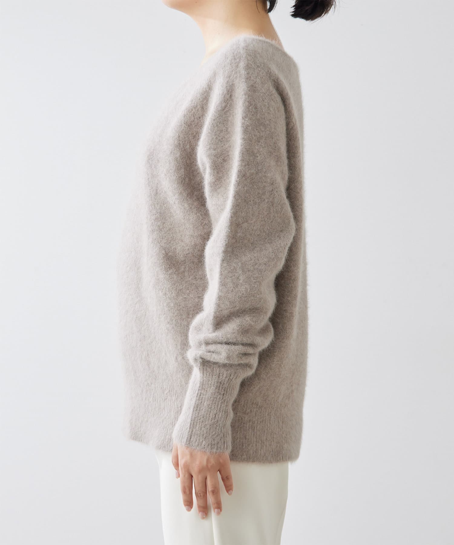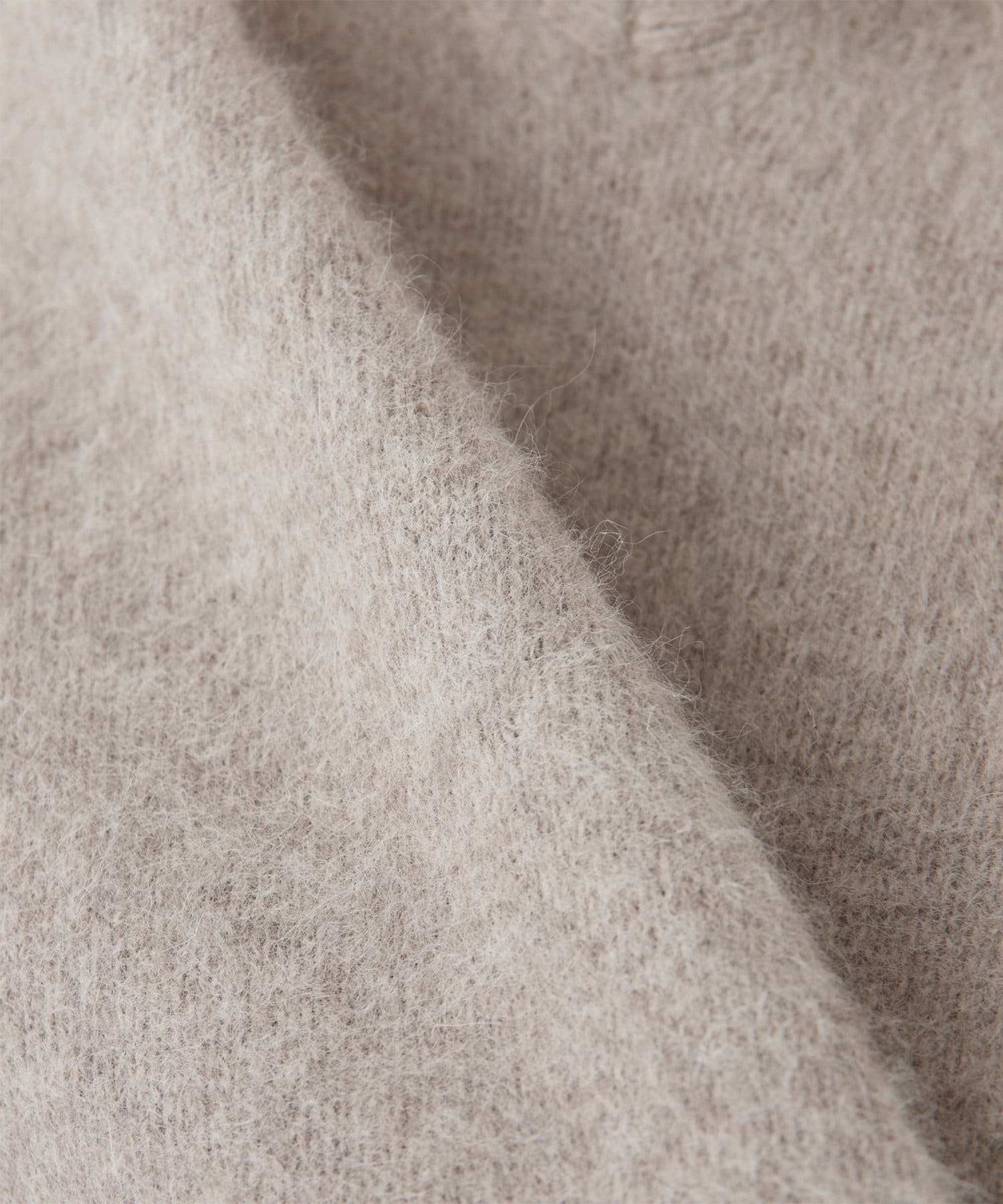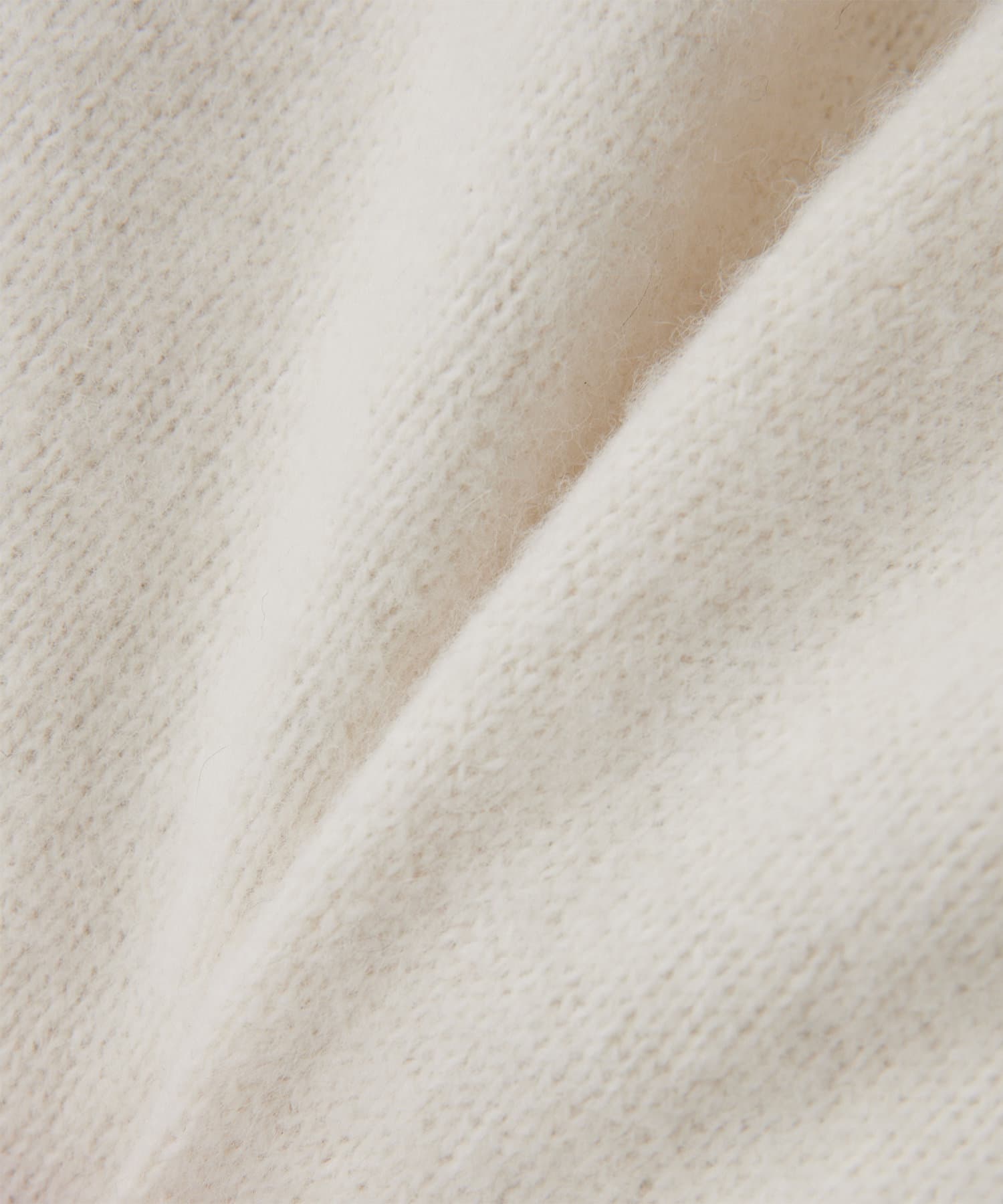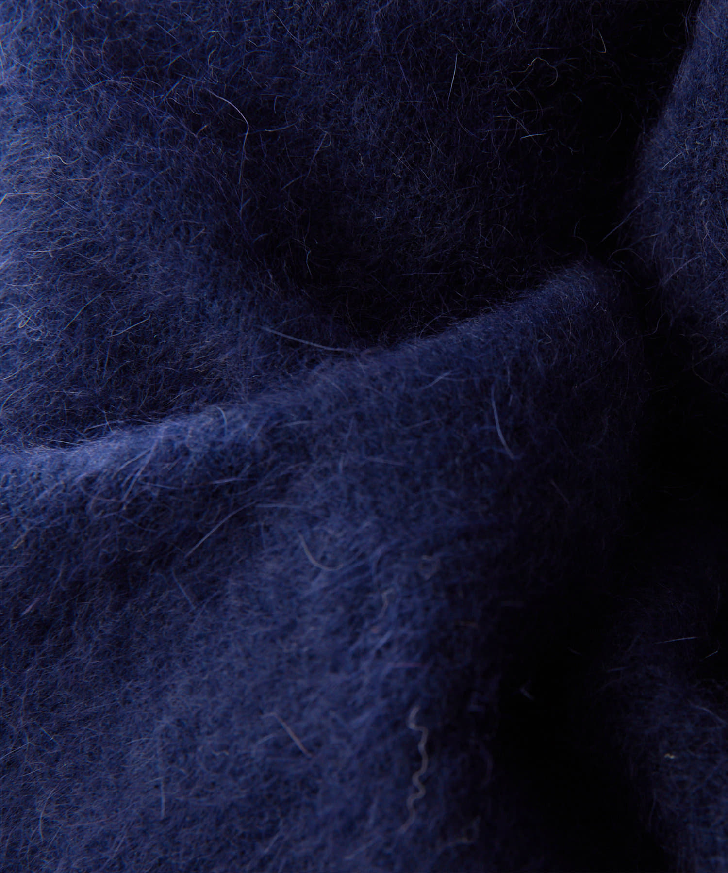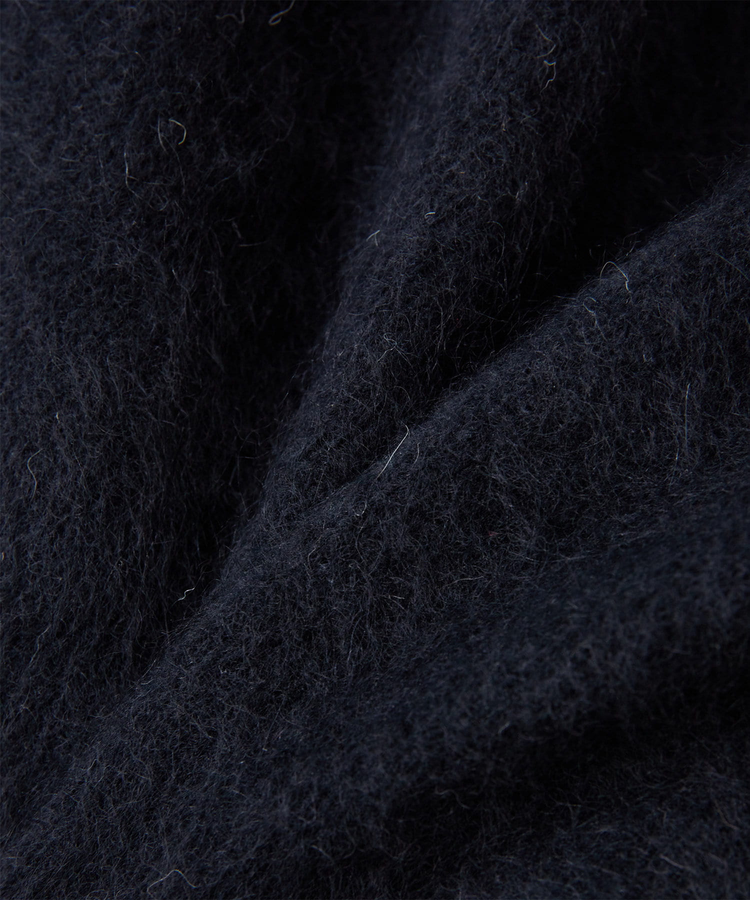 ※本品には毛足のある素材を使用しております。糸の特性上、毛羽が他のものに付着することがあります。着用中の摩擦はできるだけ避け、毛羽が付着した場合は、衣類用ブラシなどで取り除いてください。濃色は特に毛羽の付着が目立ちますので、できるだけ同系色のものとの組み合わせをおすすめいたします。
