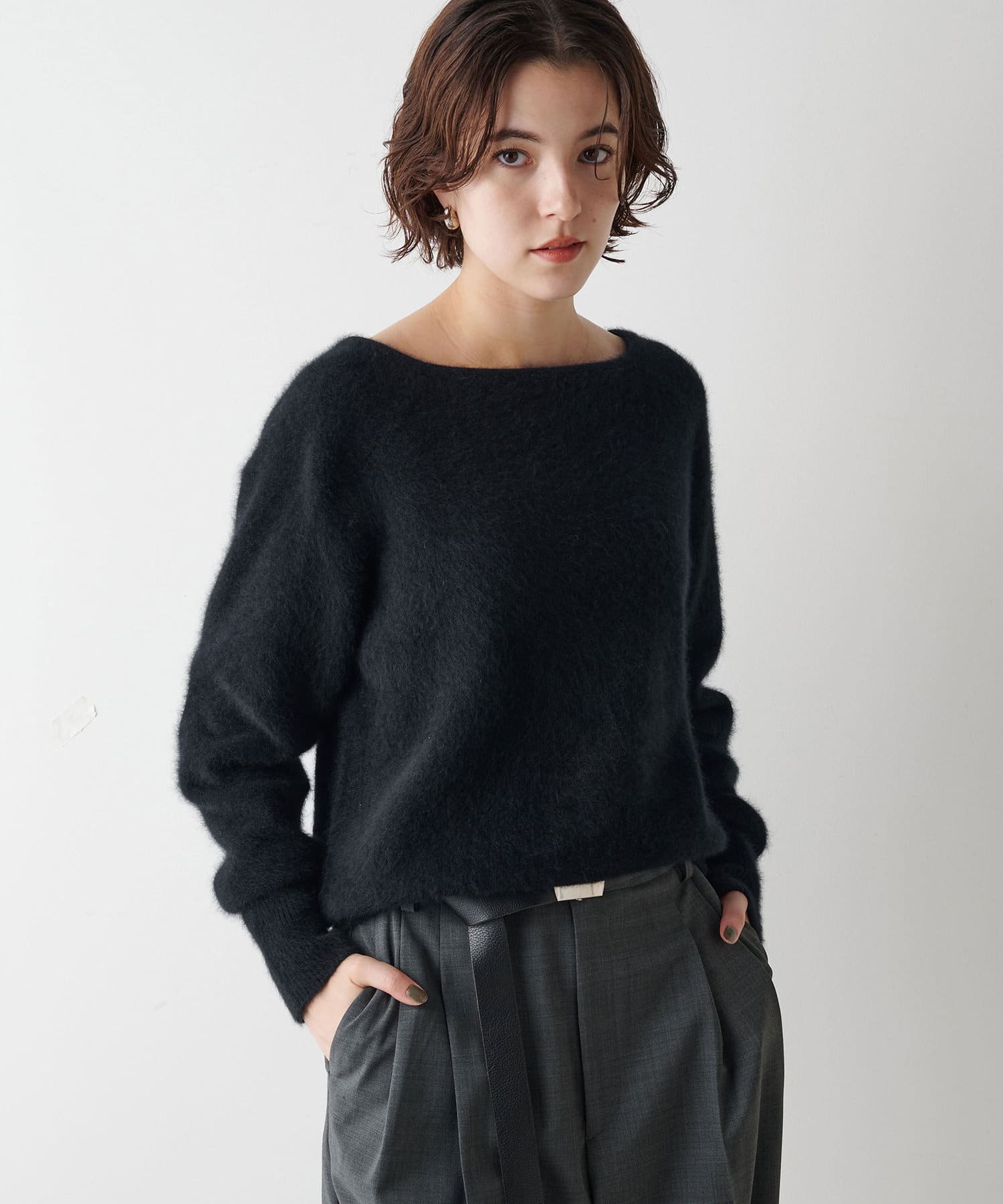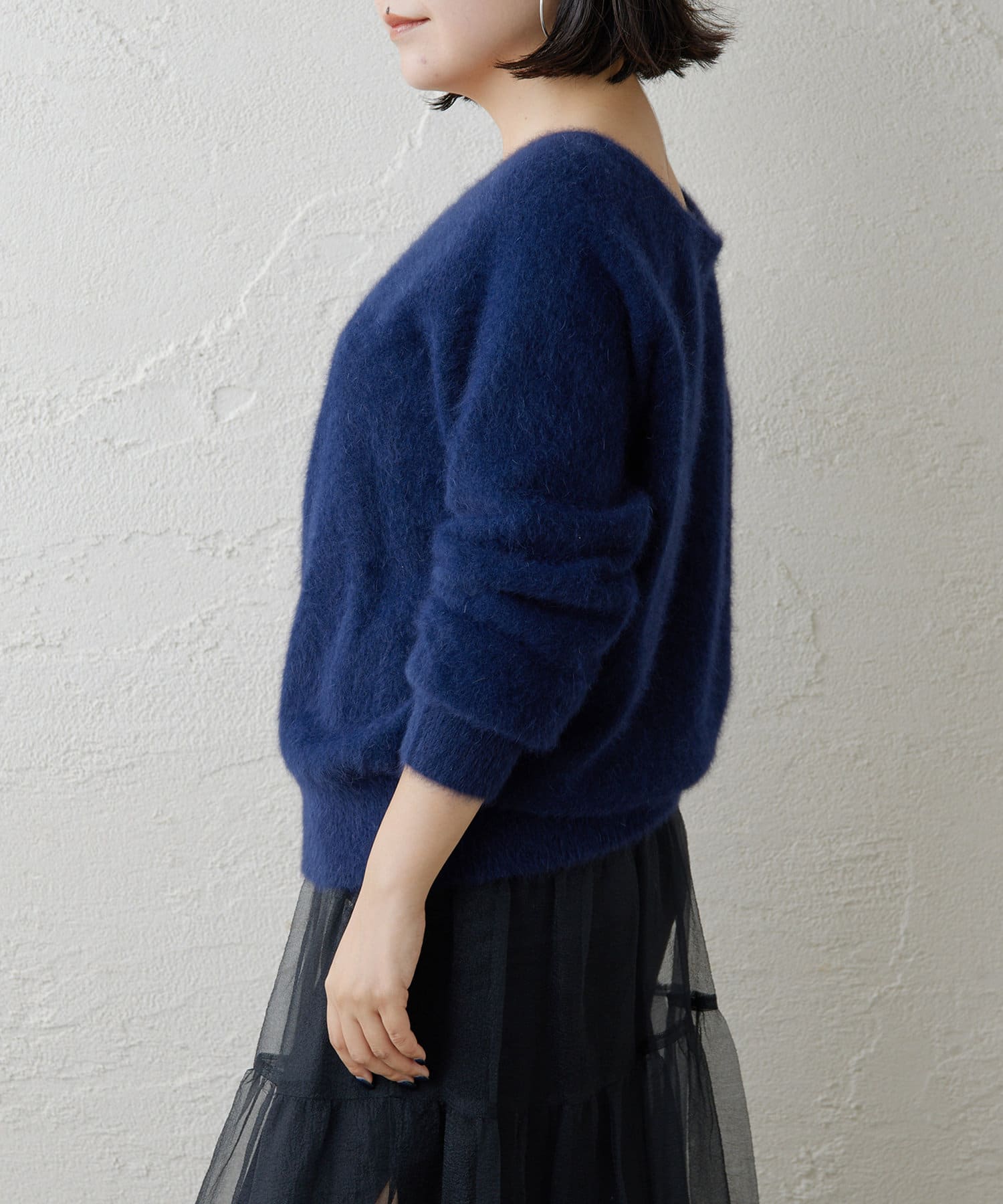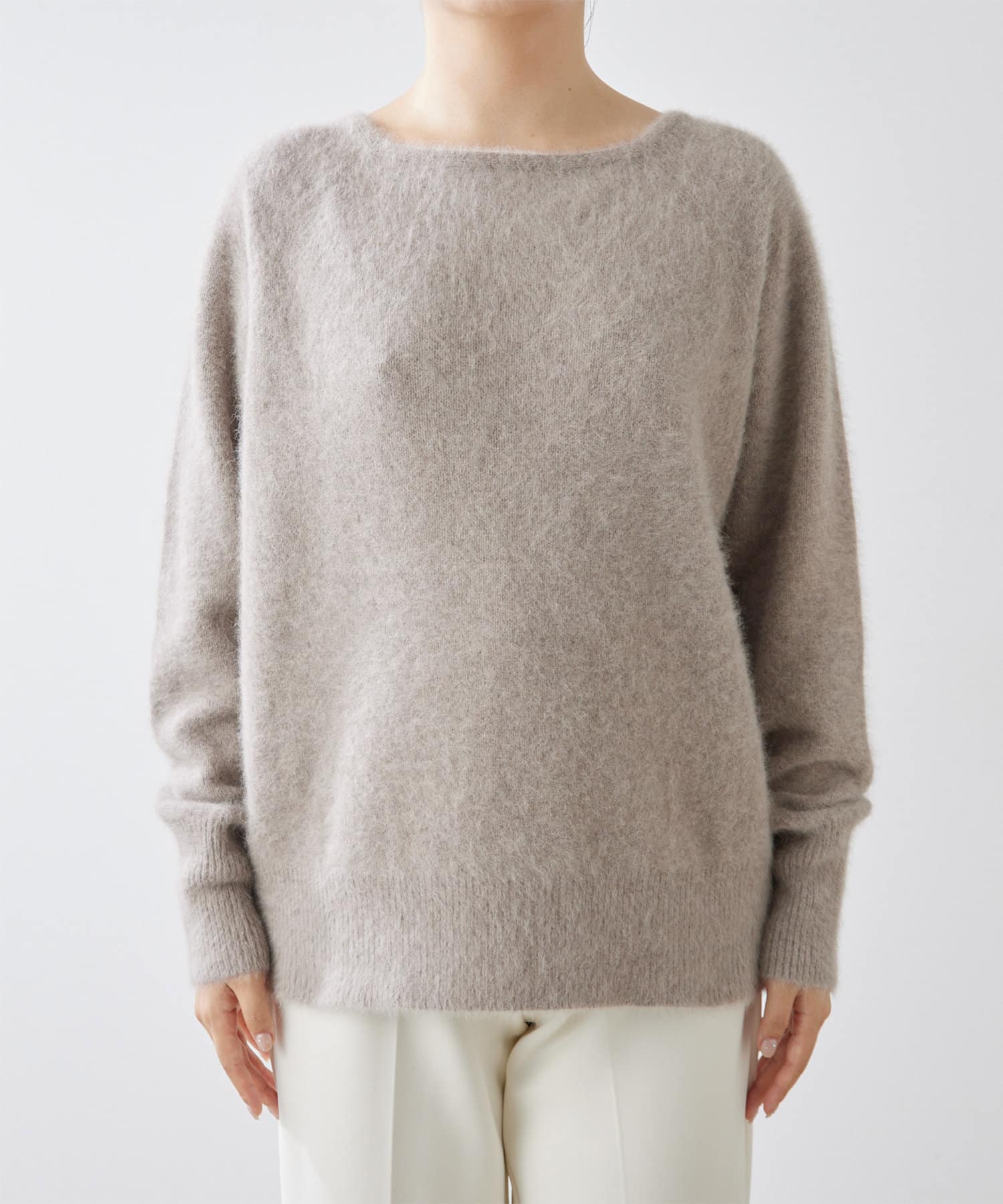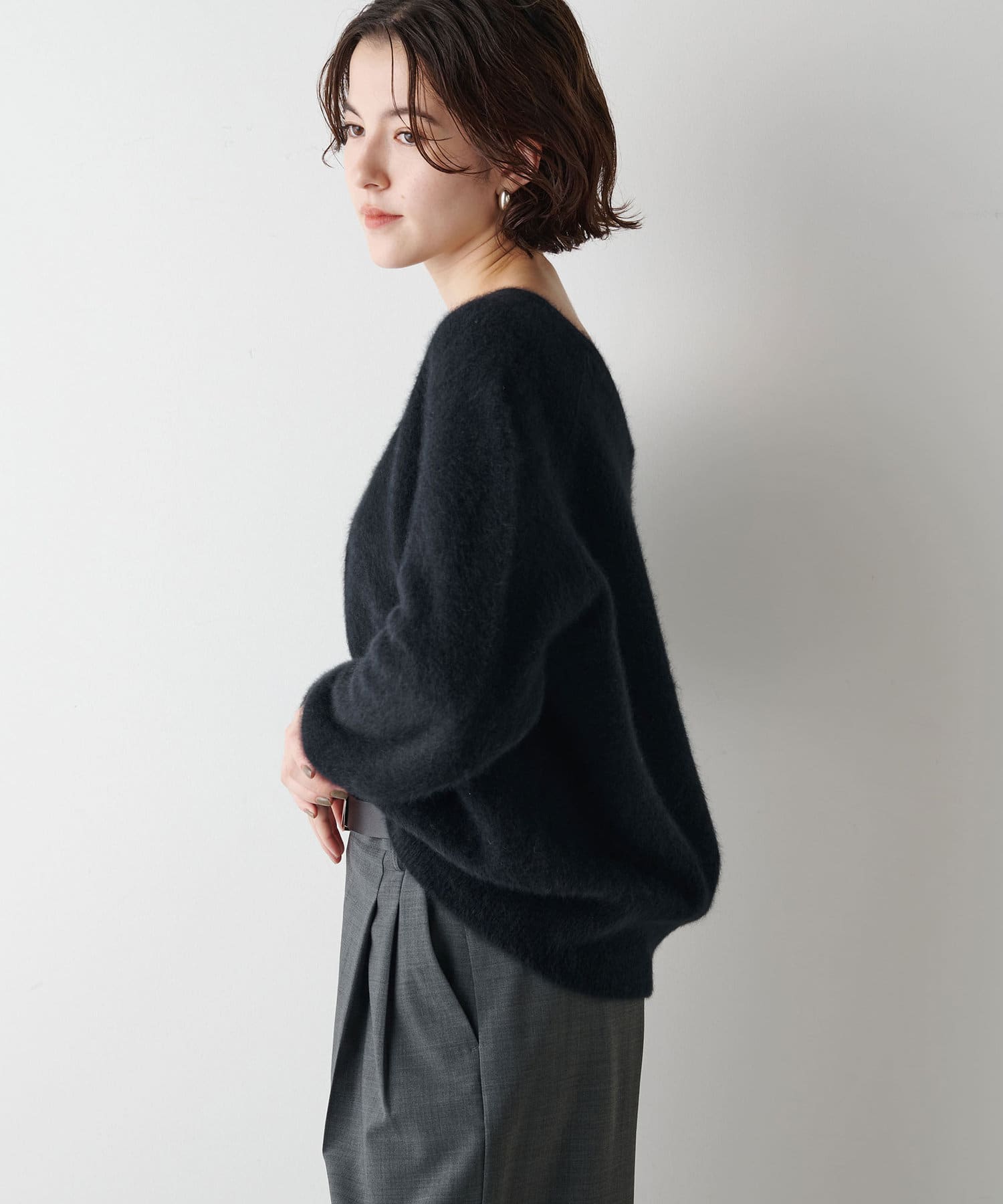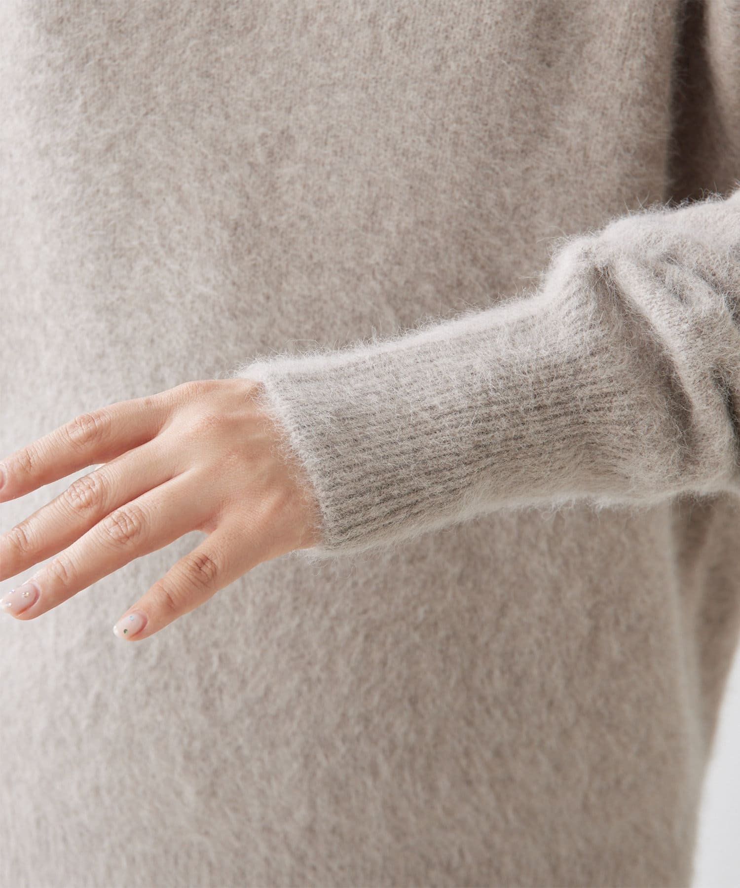 ※本品には毛足のある素材を使用しております。糸の特性上、毛羽が他のものに付着することがあります。着用中の摩擦はできるだけ避け、毛羽が付着した場合は、衣類用ブラシなどで取り除いてください。濃色は特に毛羽の付着が目立ちますので、できるだけ同系色のものとの組み合わせをおすすめいたします。