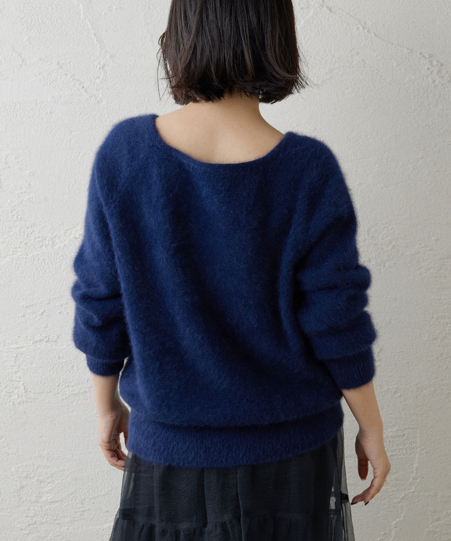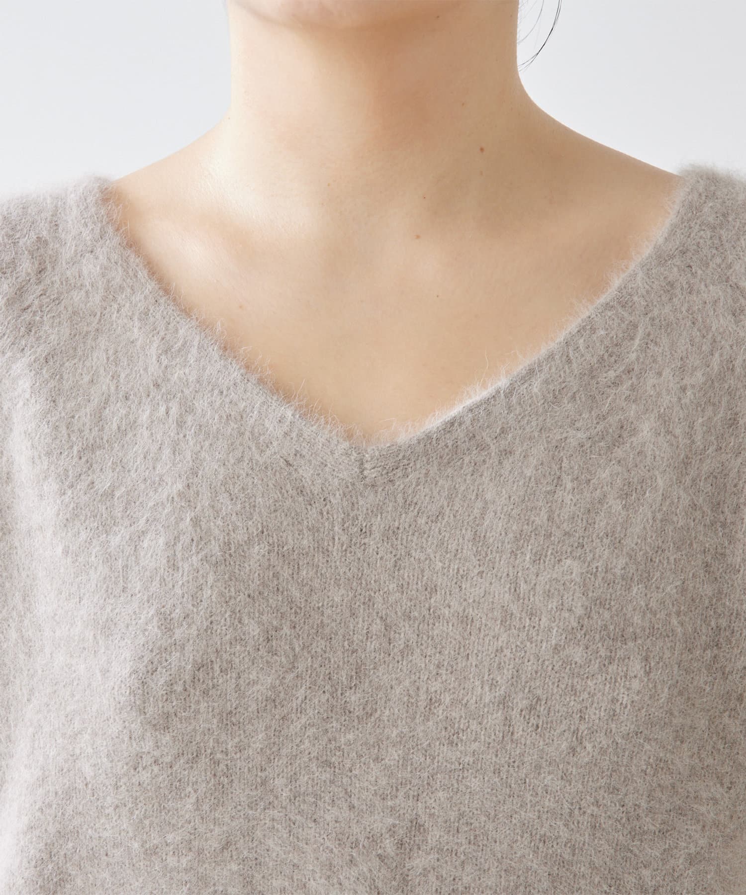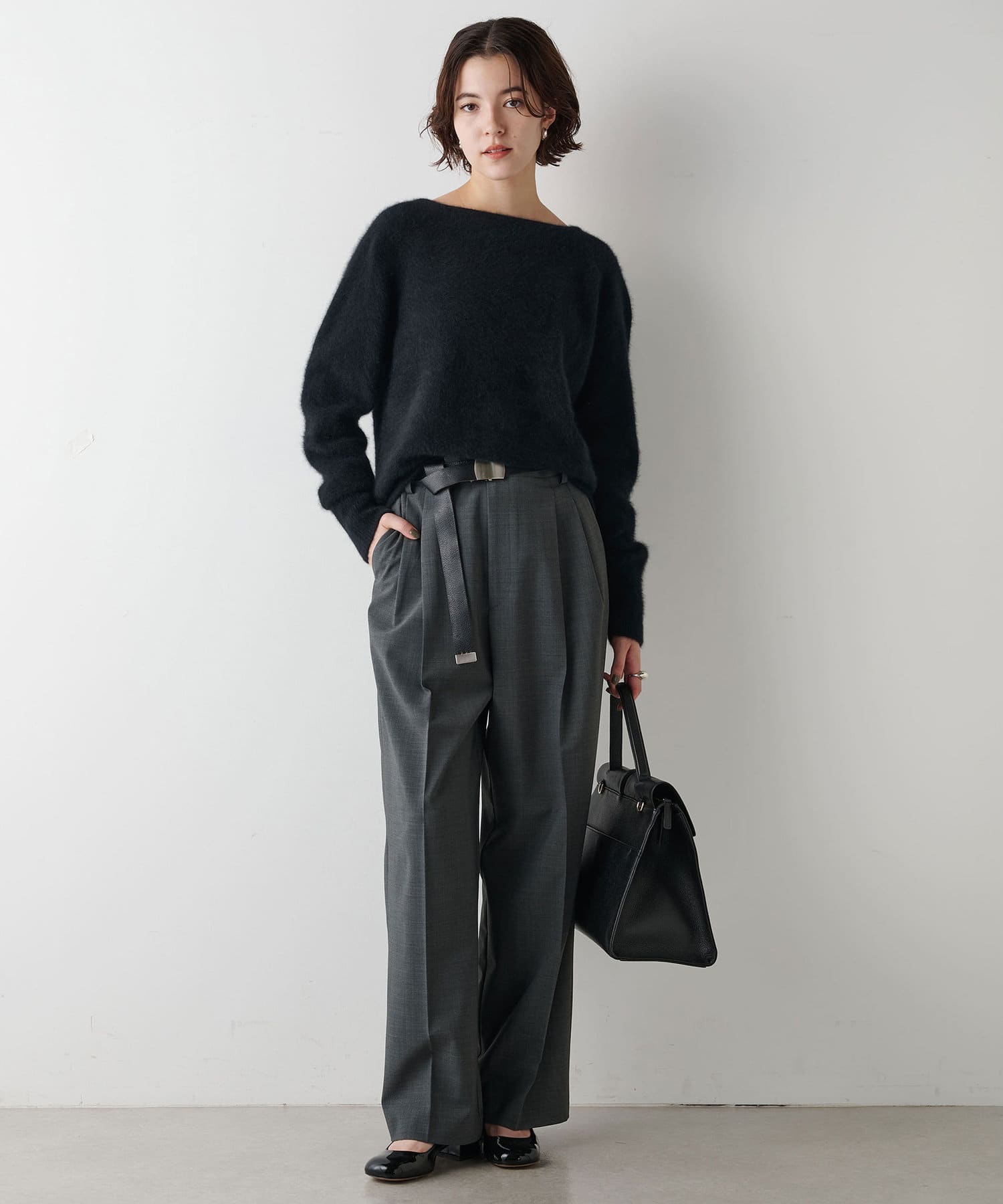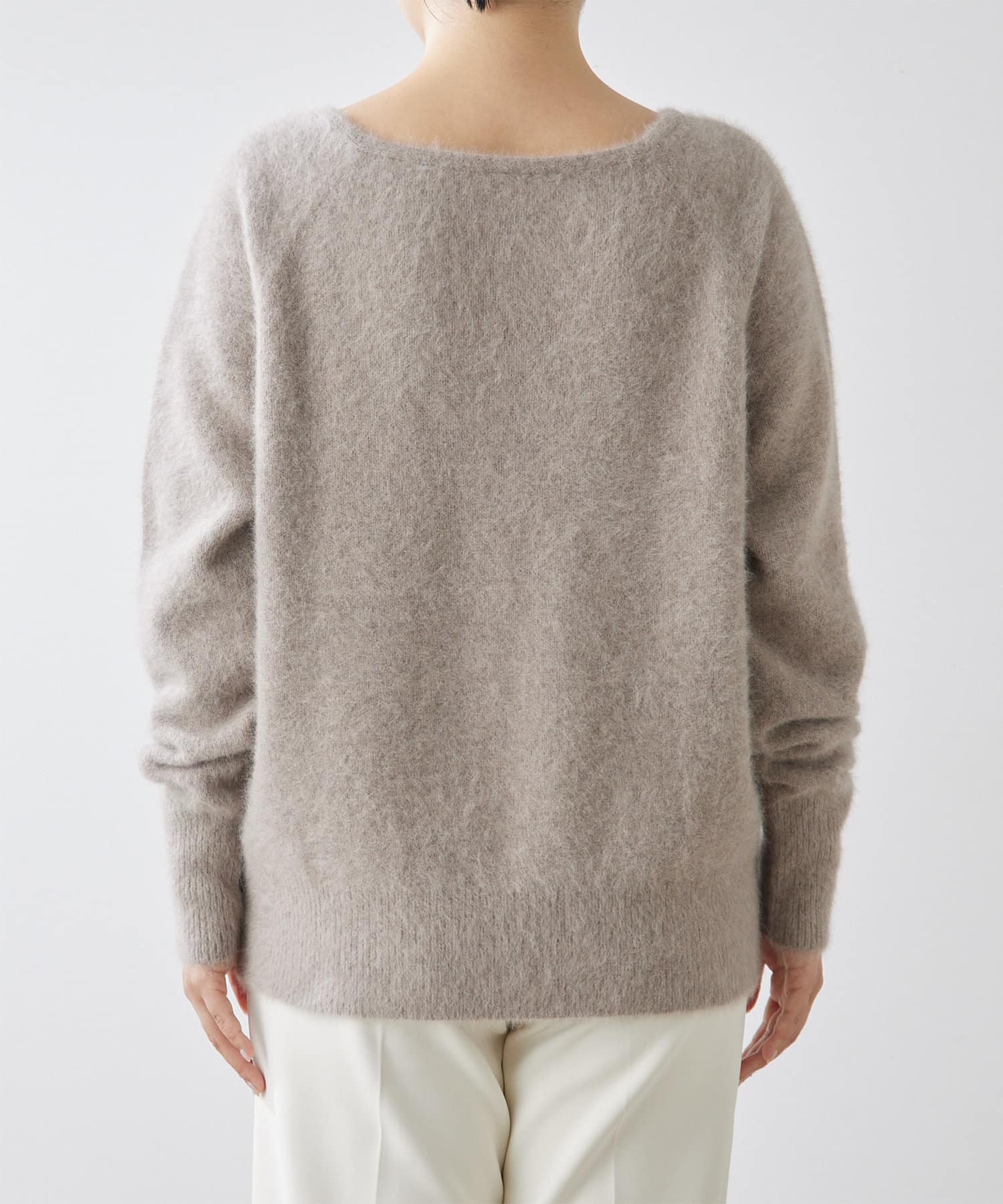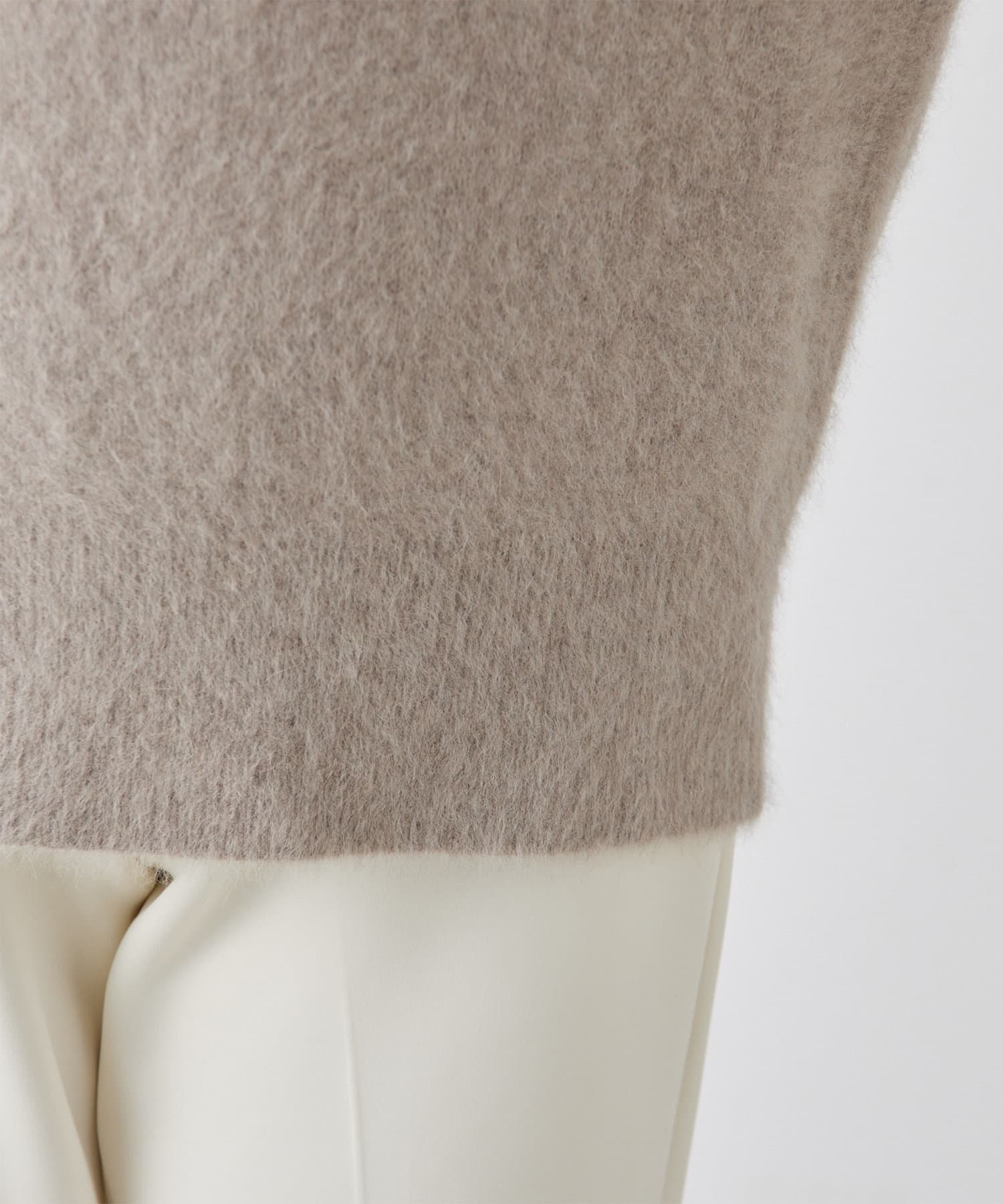 ※本品には毛足のある素材を使用しております。糸の特性上、毛羽が他のものに付着することがあります。着用中の摩擦はできるだけ避け、毛羽が付着した場合は、衣類用ブラシなどで取り除いてください。濃色は特に毛羽の付着が目立ちますので、できるだけ同系色のものとの組み合わせをおすすめいたします。