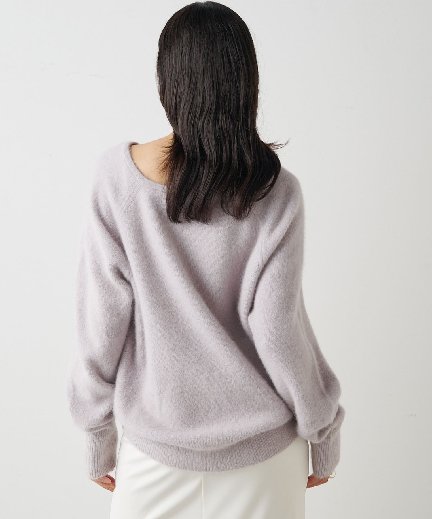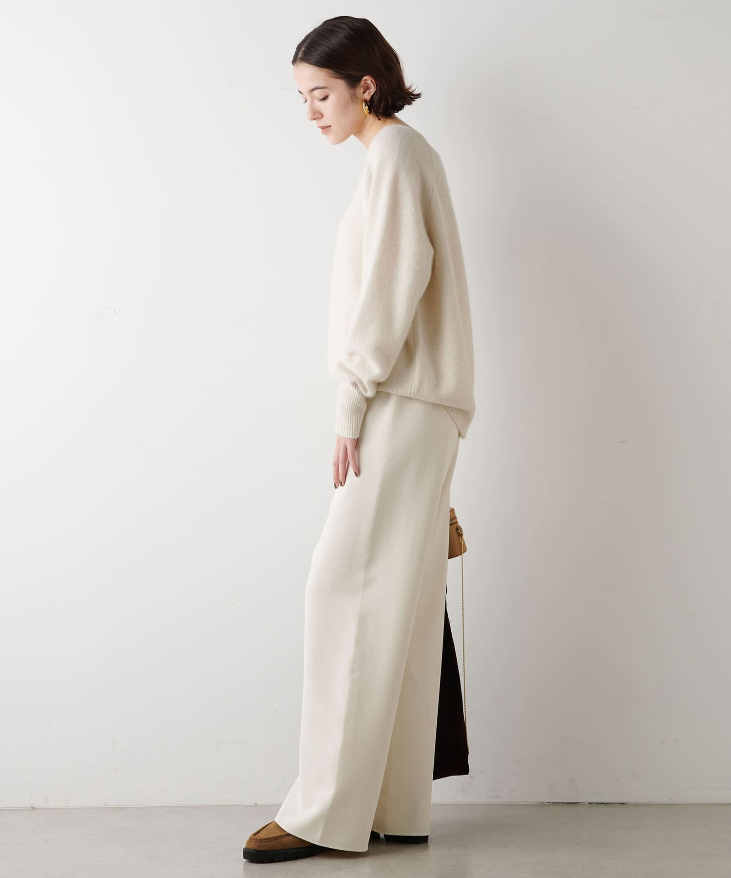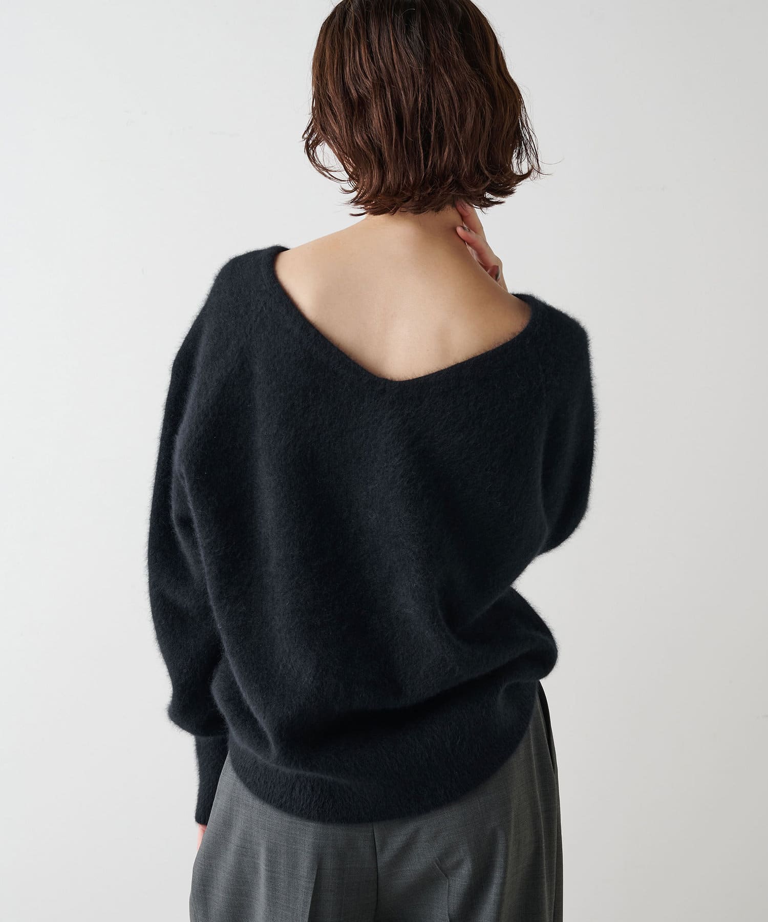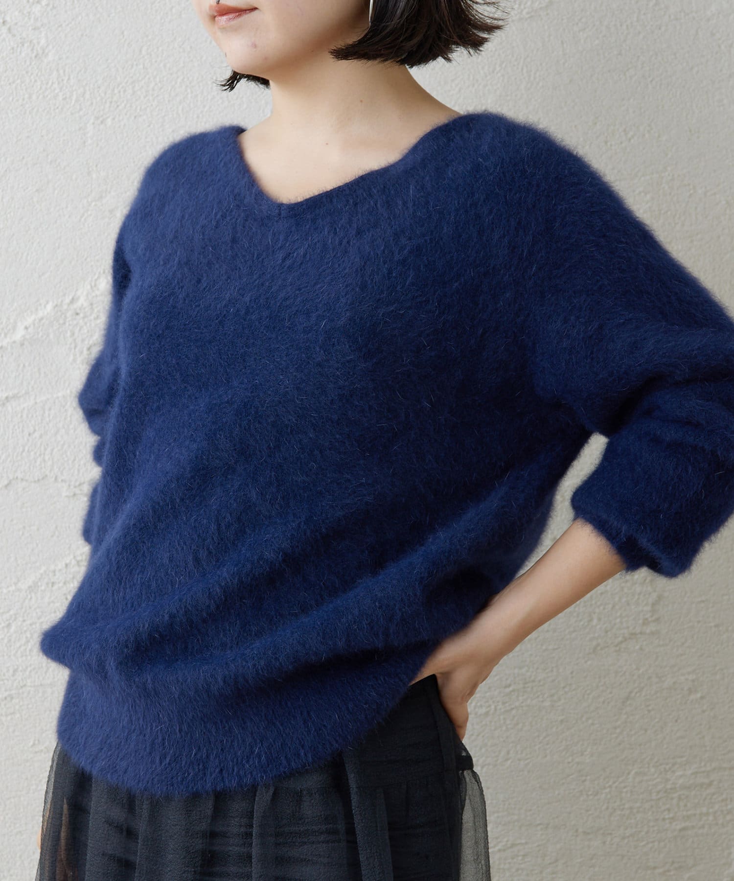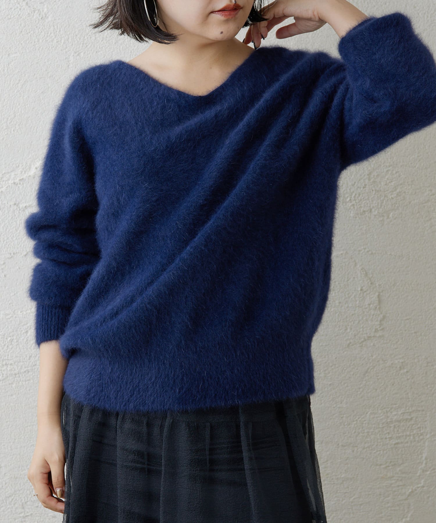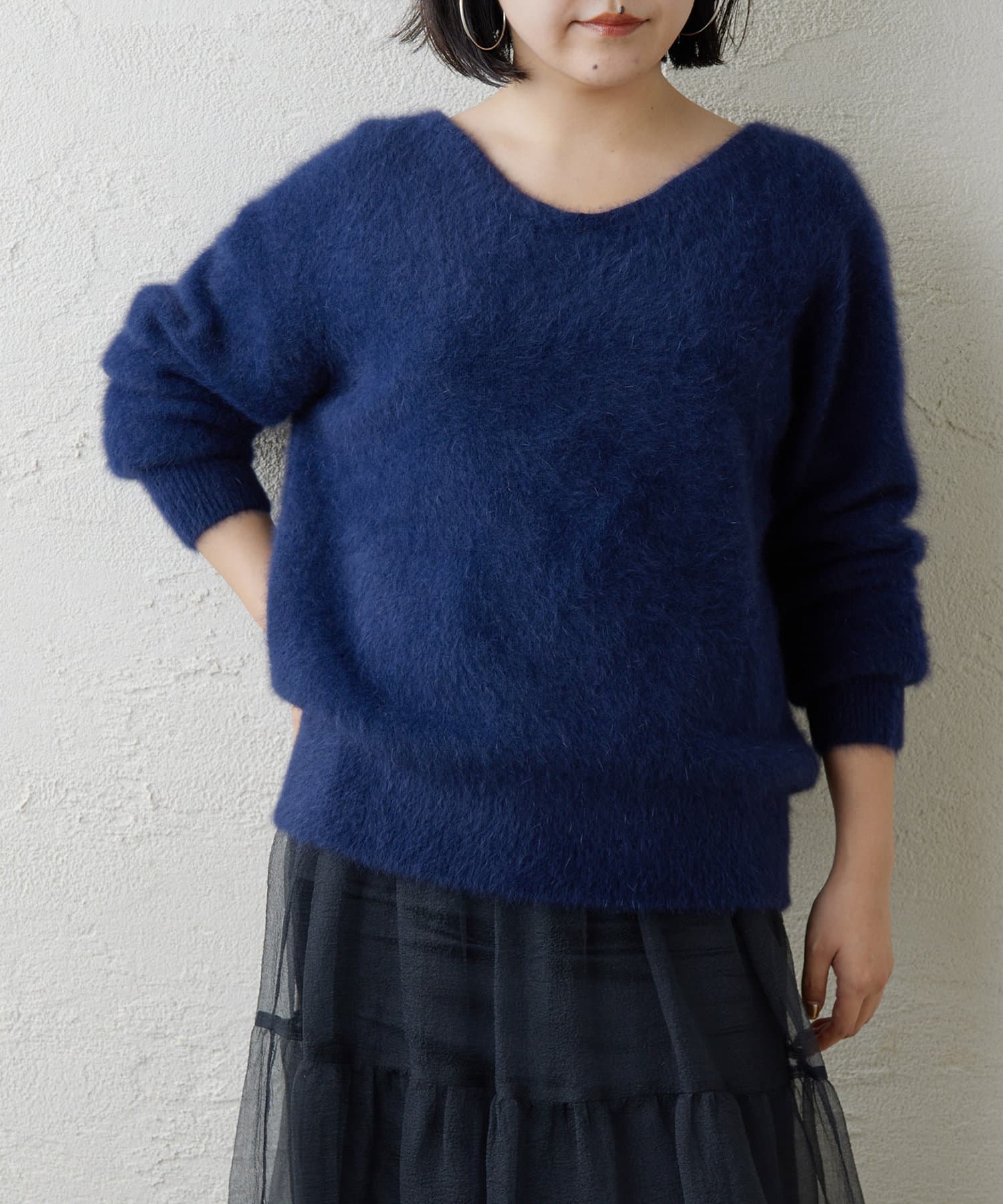 ※本品には毛足のある素材を使用しております。糸の特性上、毛羽が他のものに付着することがあります。着用中の摩擦はできるだけ避け、毛羽が付着した場合は、衣類用ブラシなどで取り除いてください。濃色は特に毛羽の付着が目立ちますので、できるだけ同系色のものとの組み合わせをおすすめいたします。