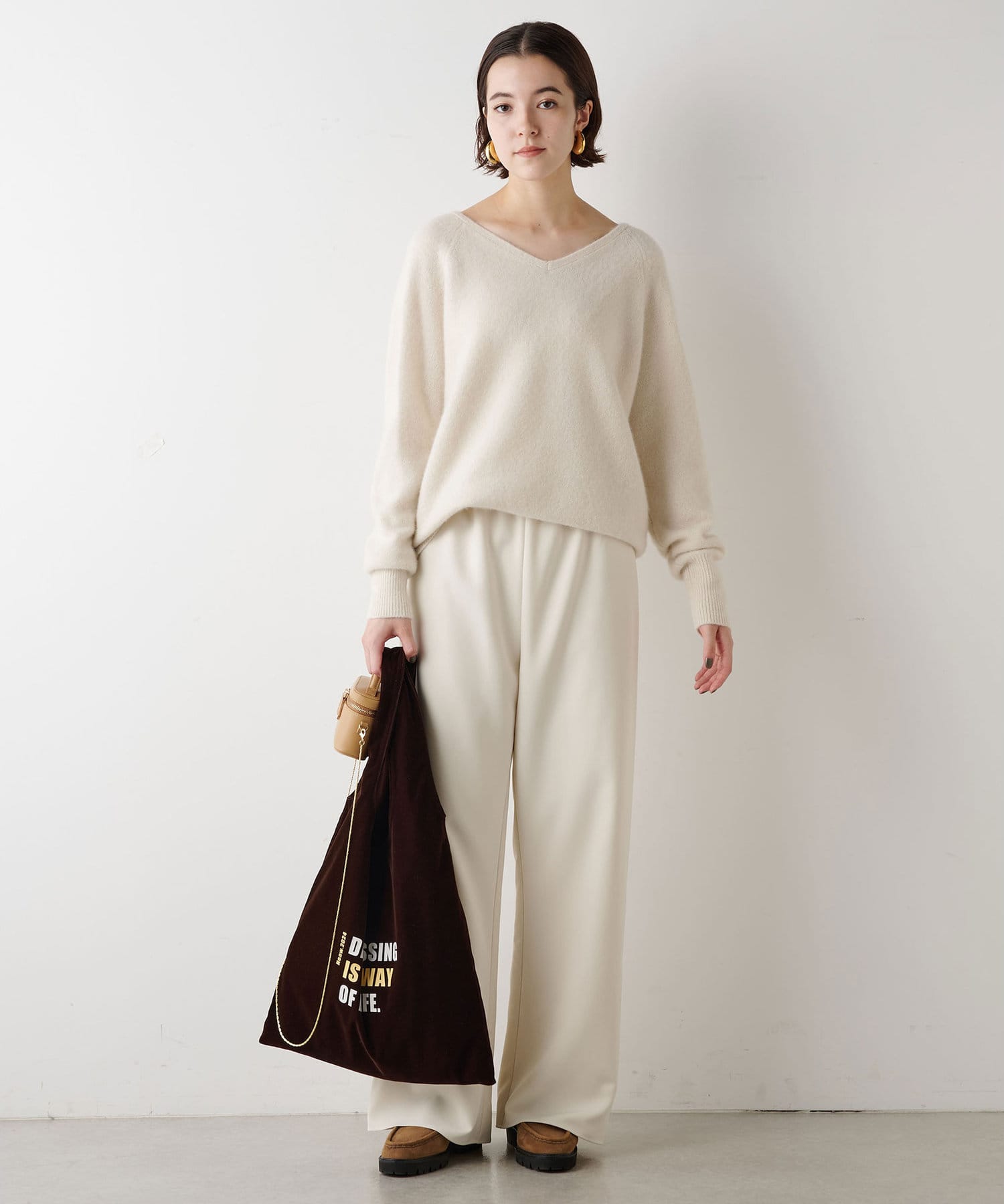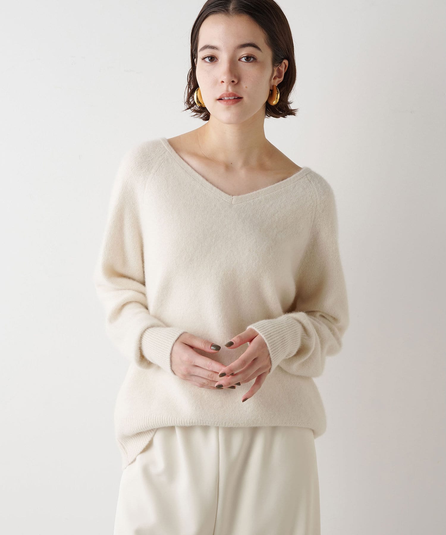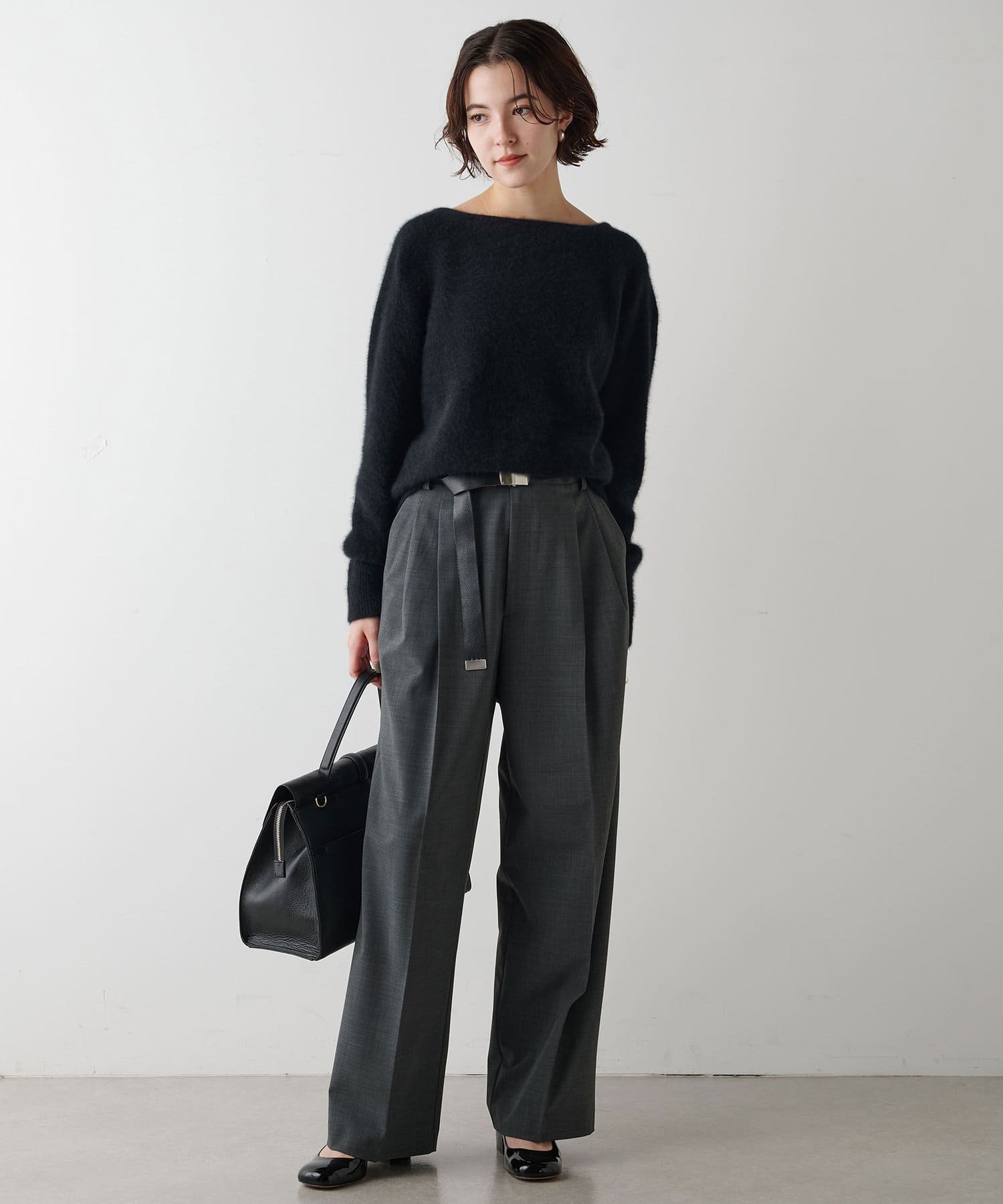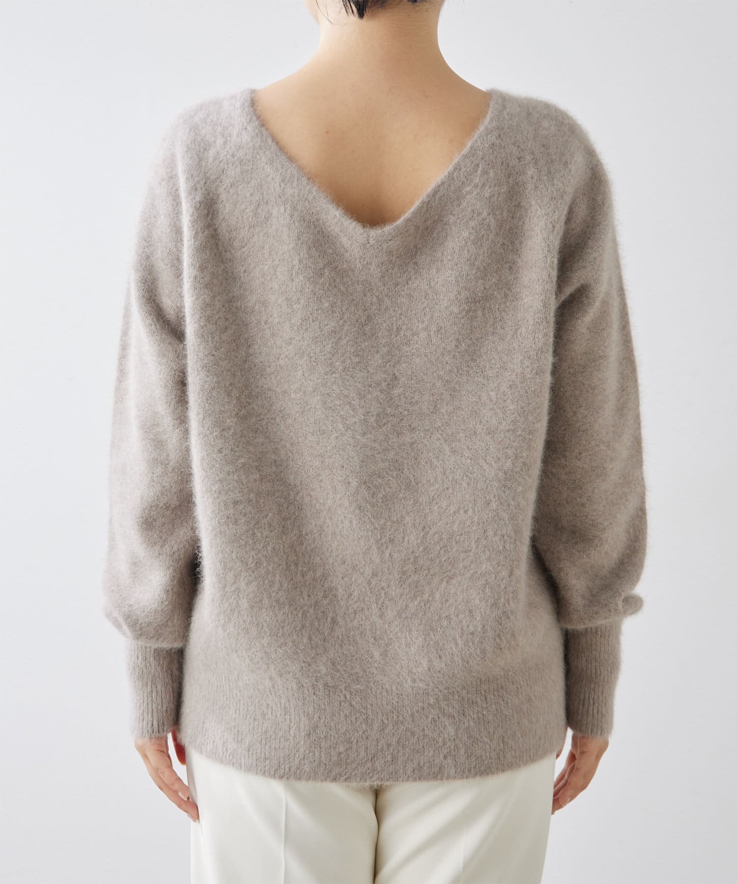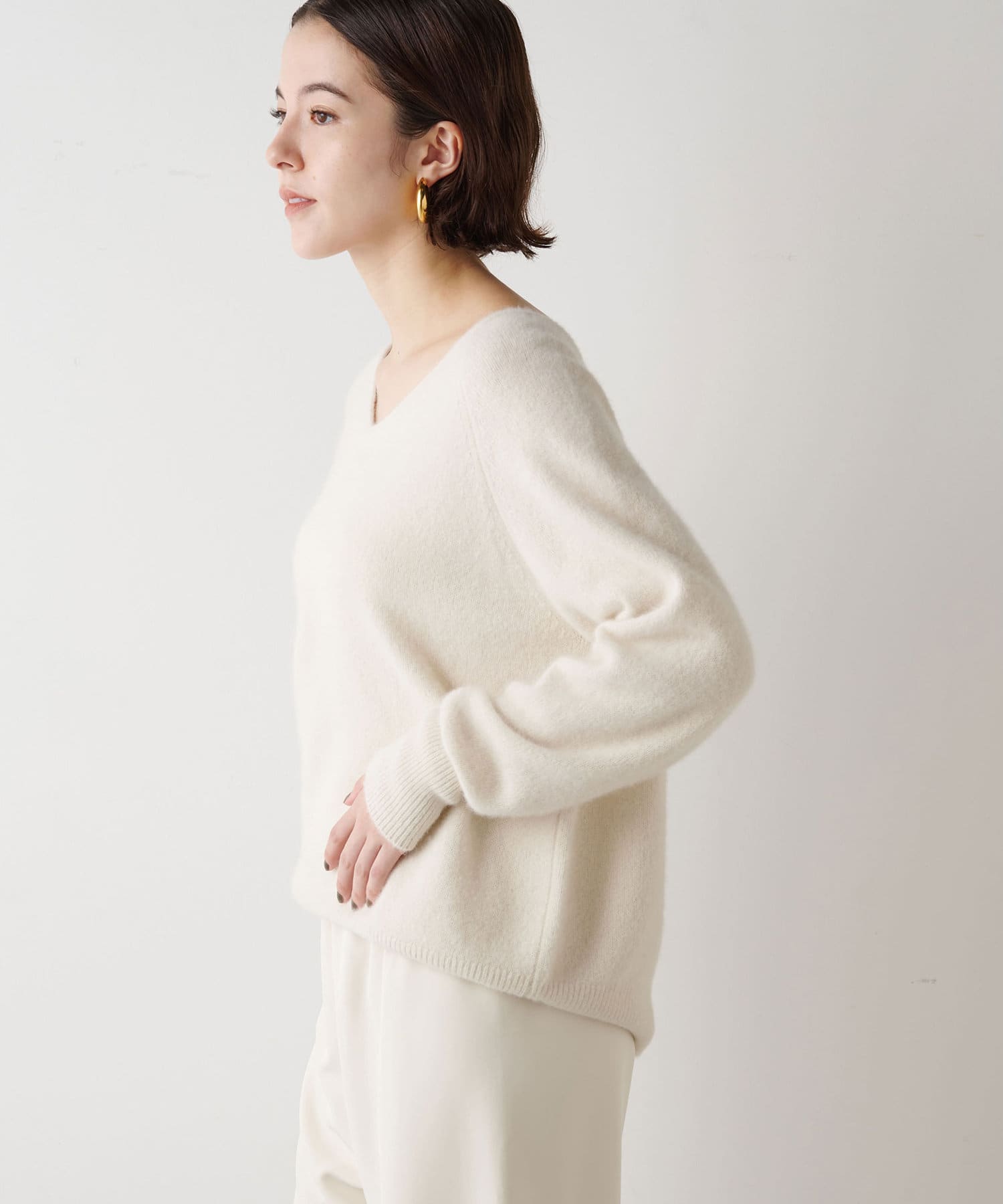 ※本品には毛足のある素材を使用しております。糸の特性上、毛羽が他のものに付着することがあります。着用中の摩擦はできるだけ避け、毛羽が付着した場合は、衣類用ブラシなどで取り除いてください。濃色は特に毛羽の付着が目立ちますので、できるだけ同系色のものとの組み合わせをおすすめいたします。