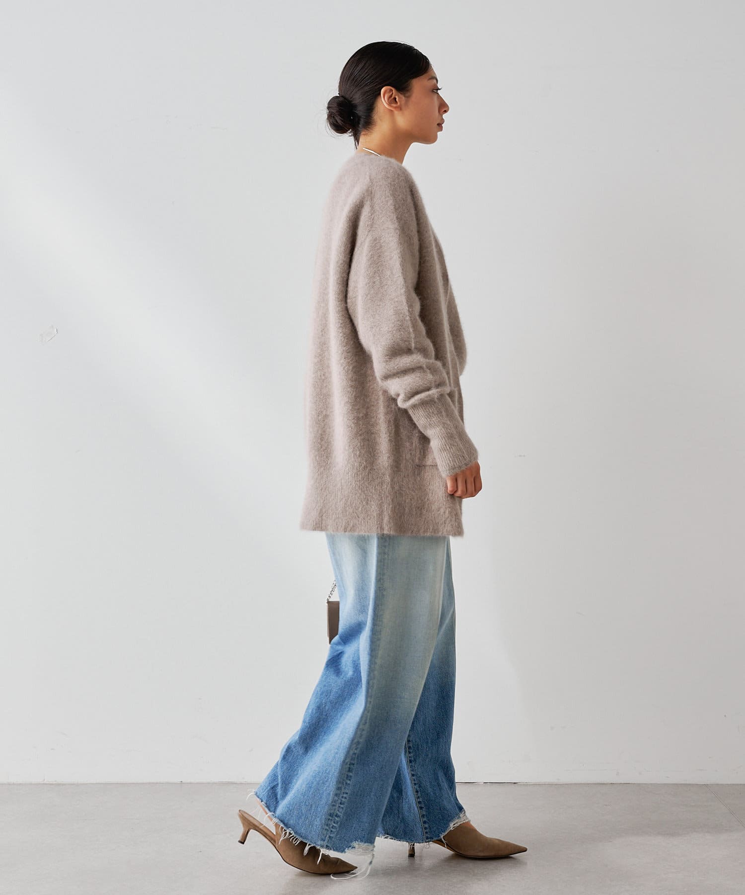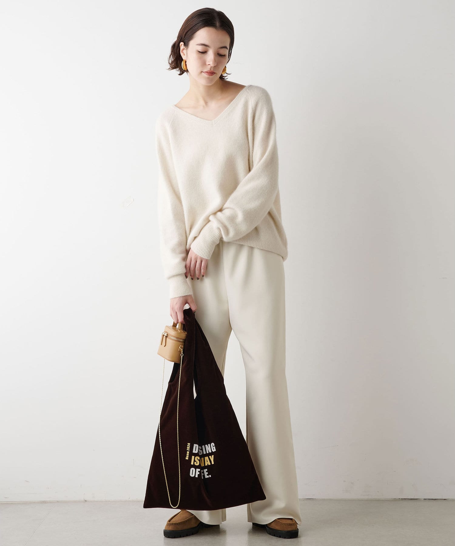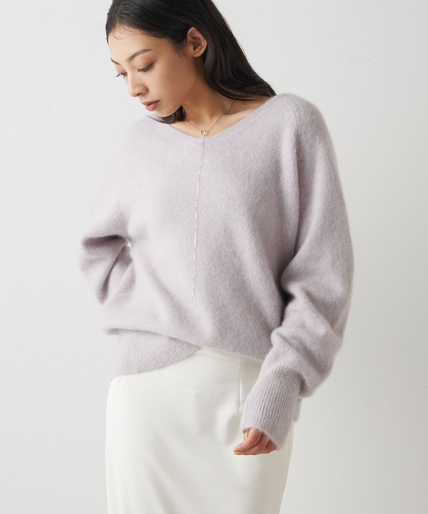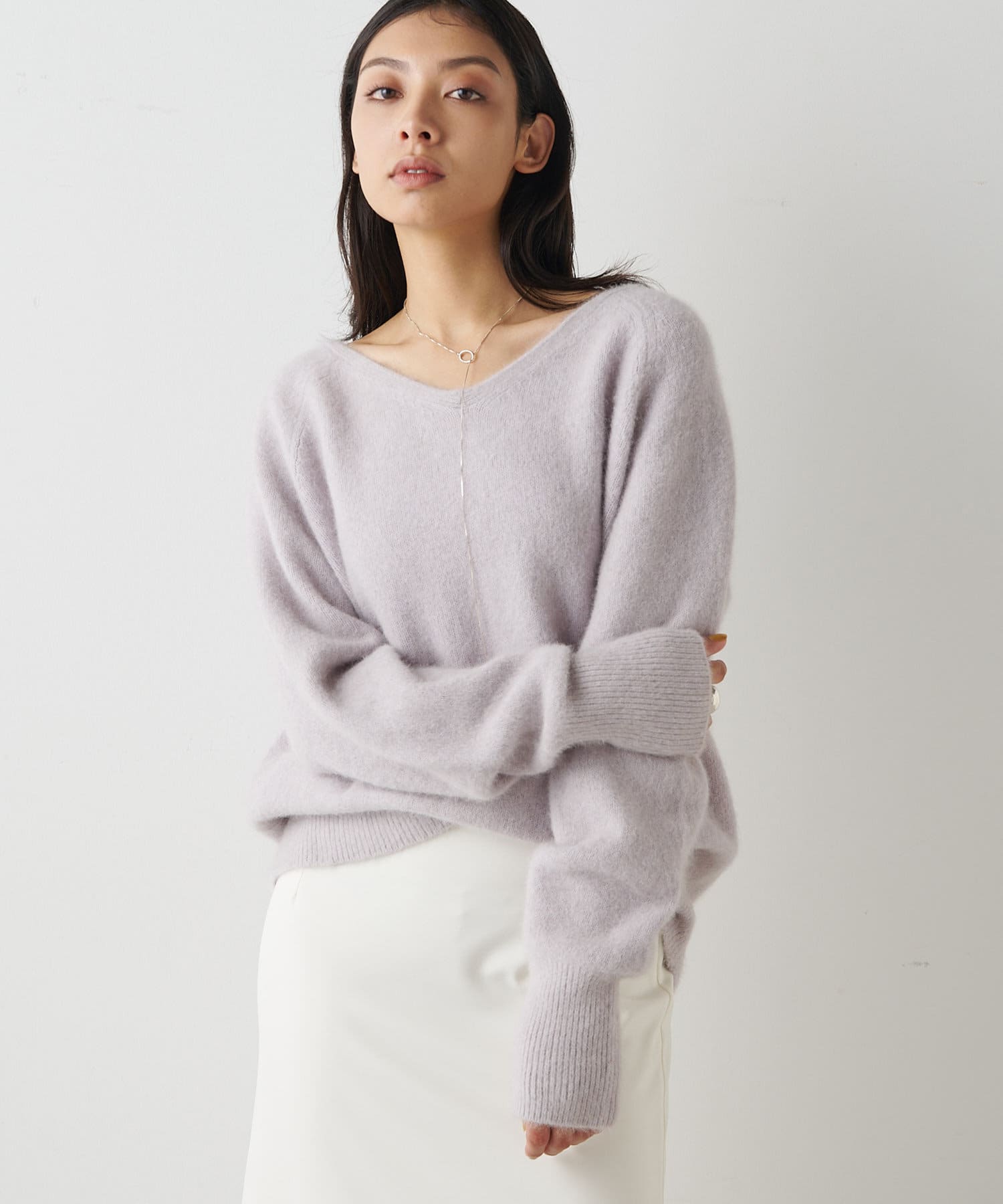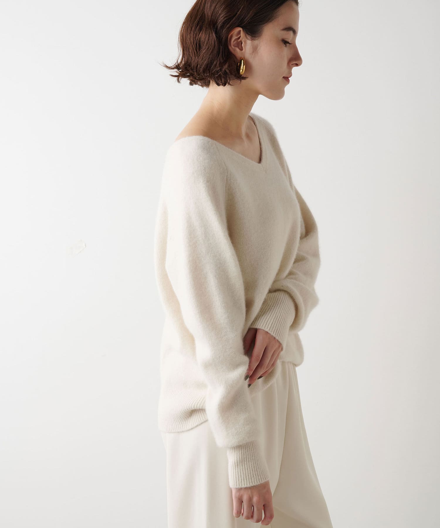 ※本品には毛足のある素材を使用しております。糸の特性上、毛羽が他のものに付着することがあります。着用中の摩擦はできるだけ避け、毛羽が付着した場合は、衣類用ブラシなどで取り除いてください。濃色は特に毛羽の付着が目立ちますので、できるだけ同系色のものとの組み合わせをおすすめいたします。