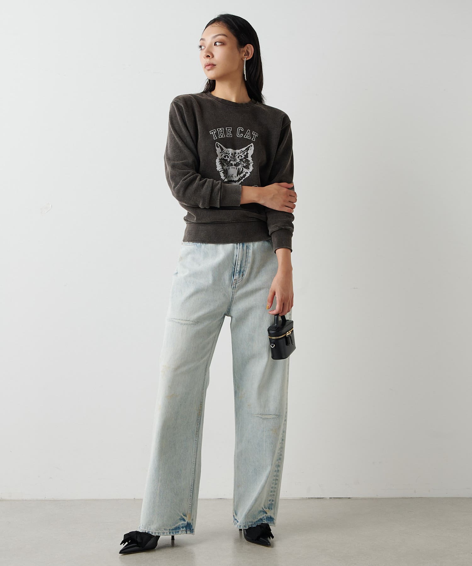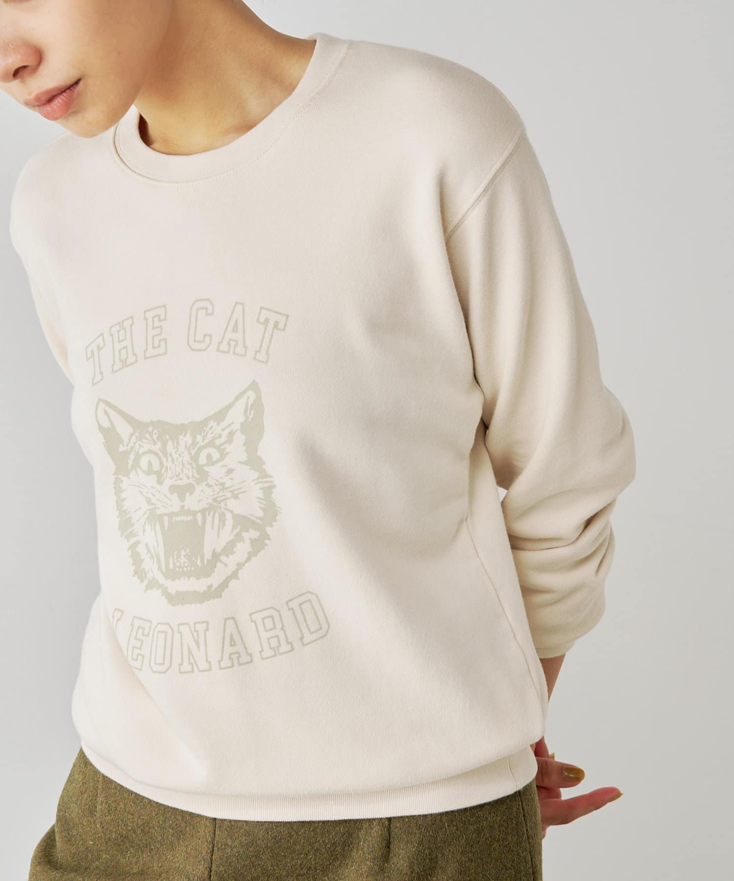 ■キャッチーなキャットプリントが目を惹くスウェットプルーバー。