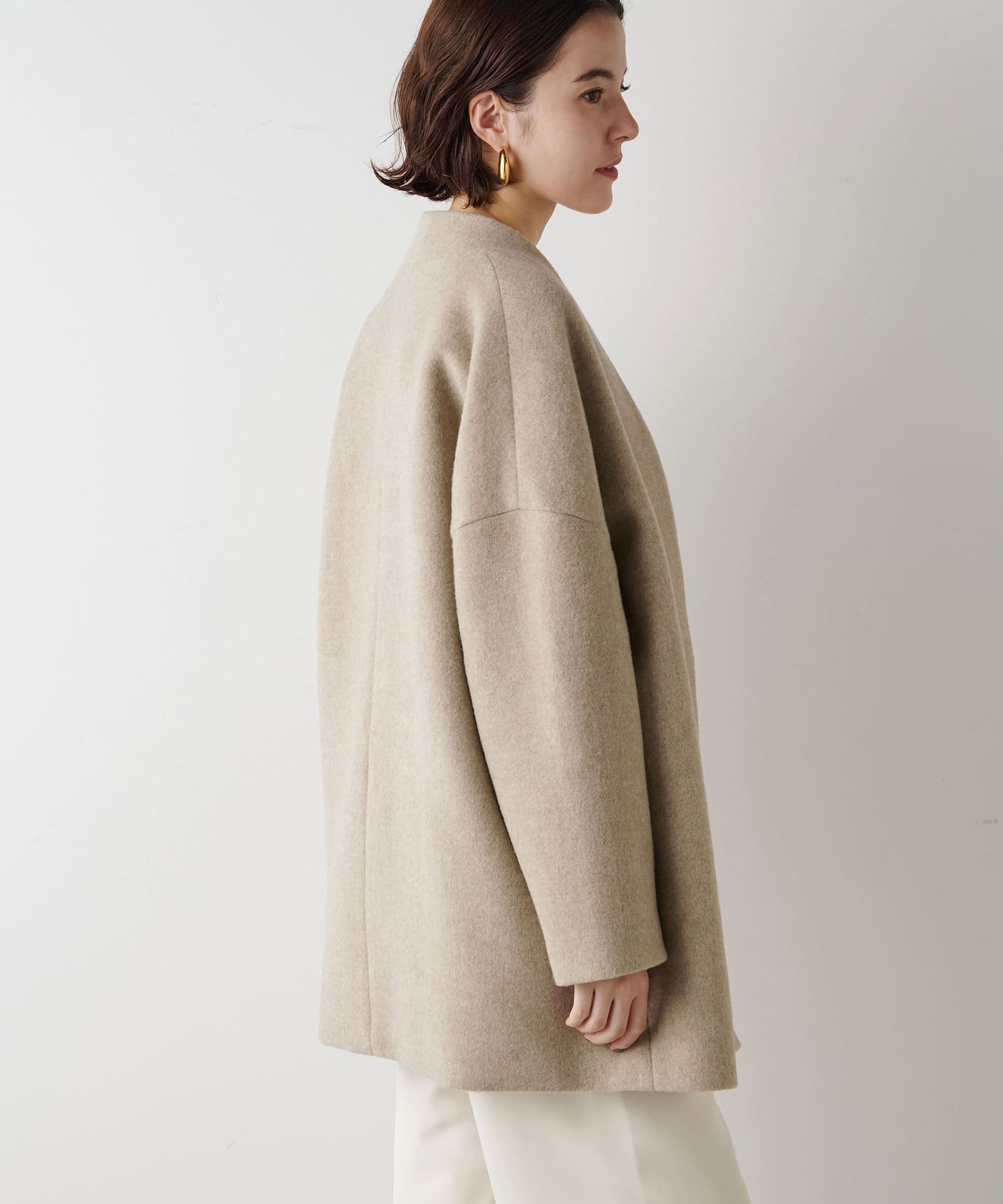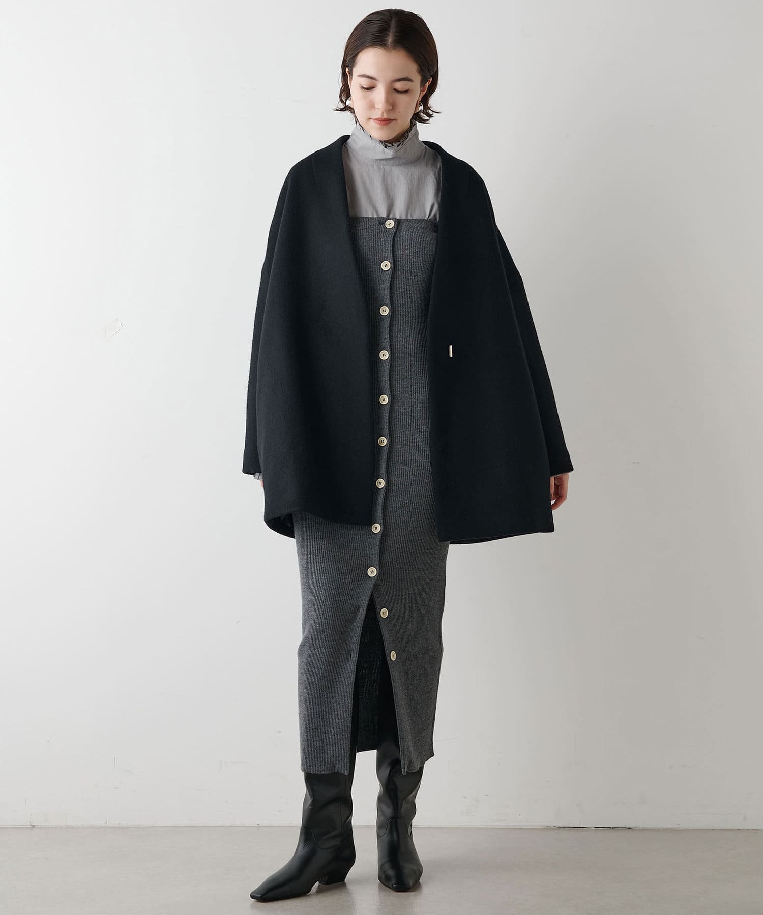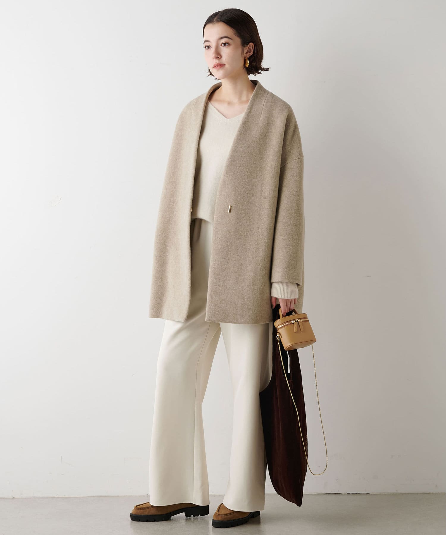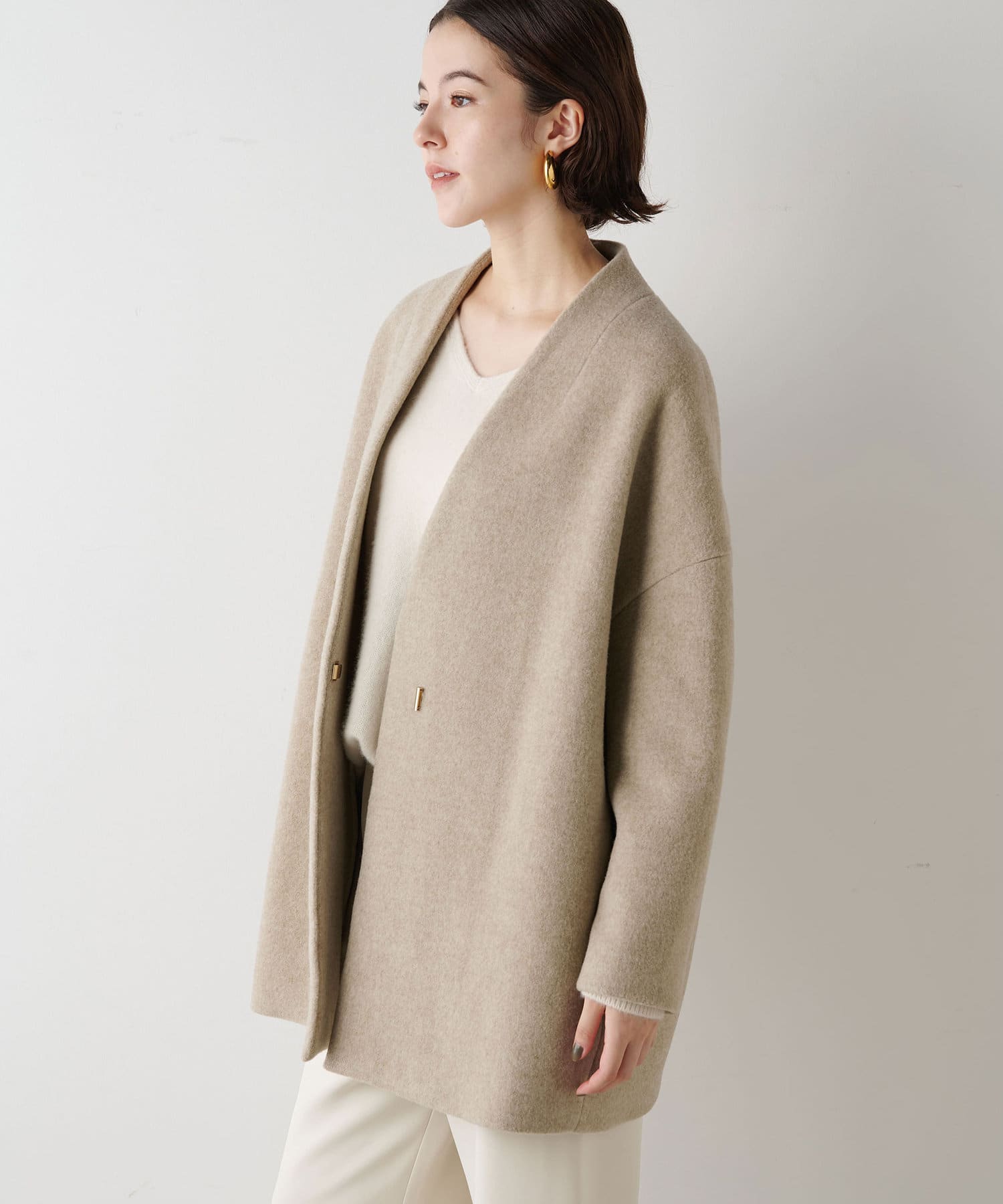 ■ノーカラージャケットのようなすっきりとしたデザインで、カーディガン感覚で気軽に羽織れる一着。