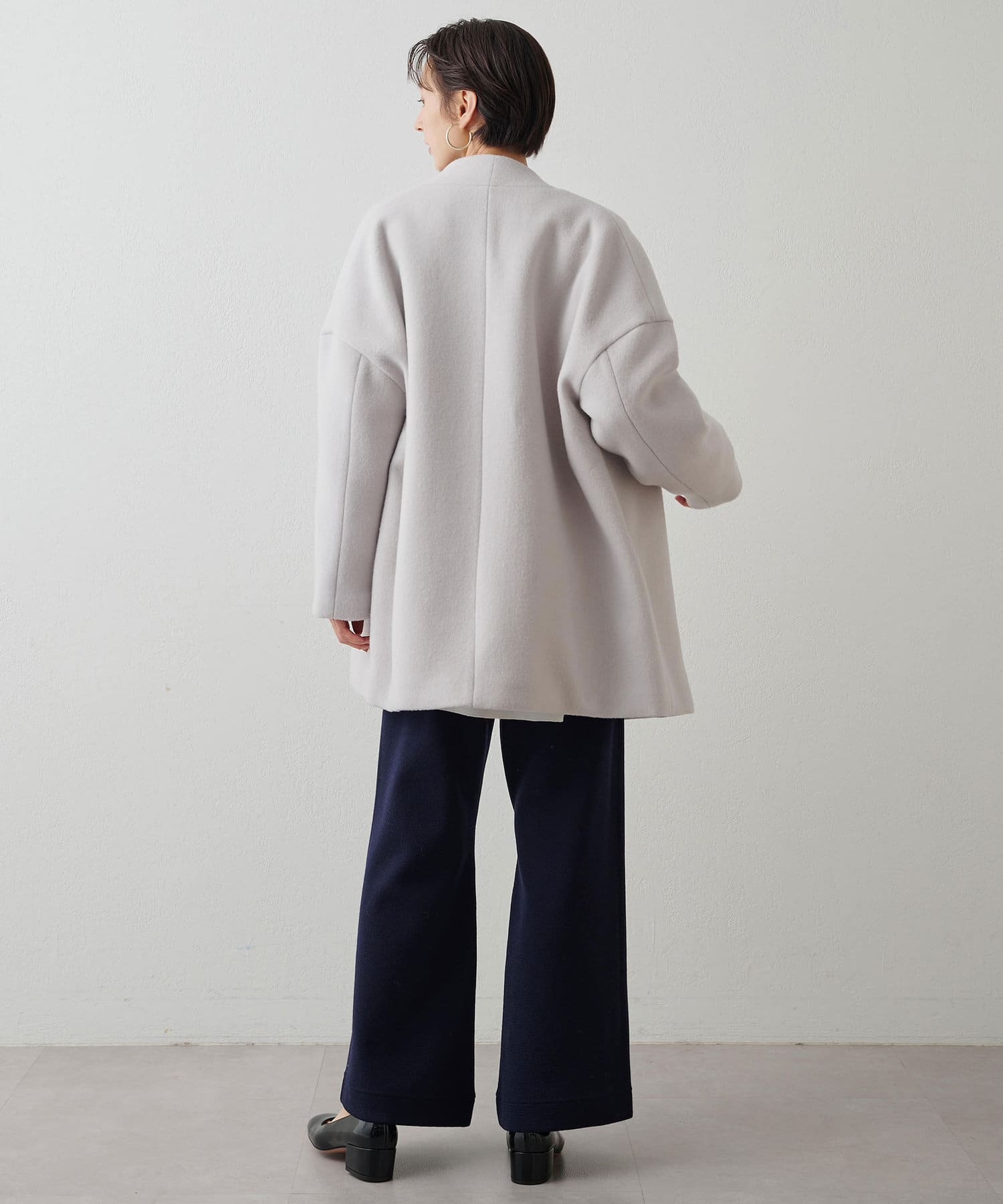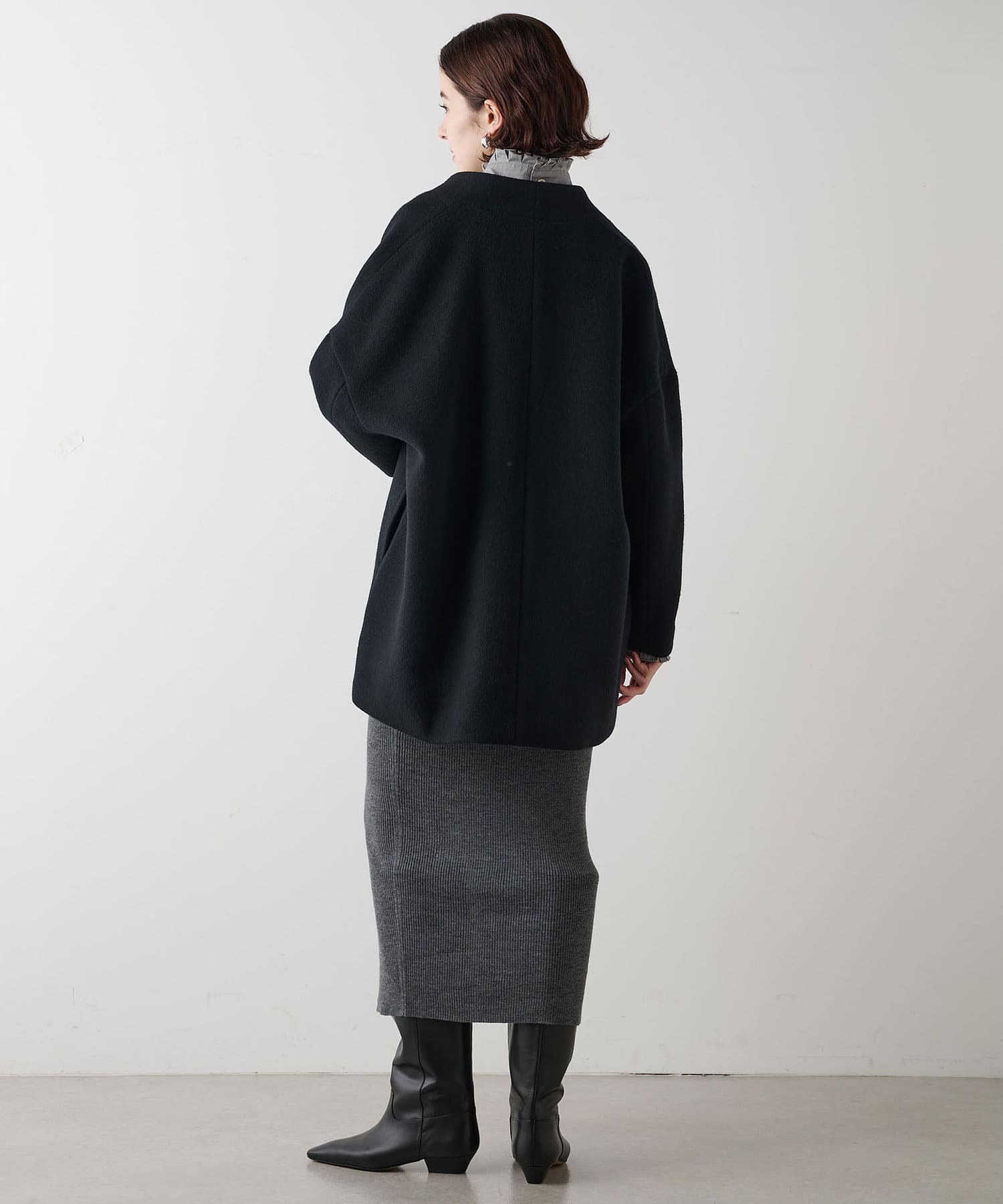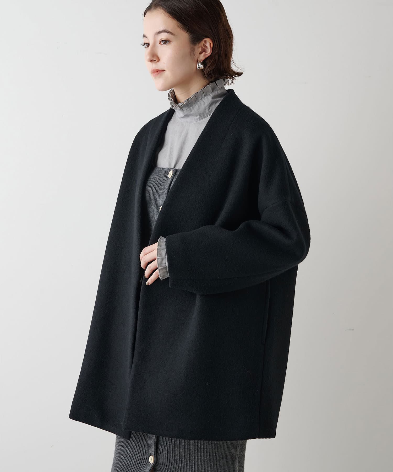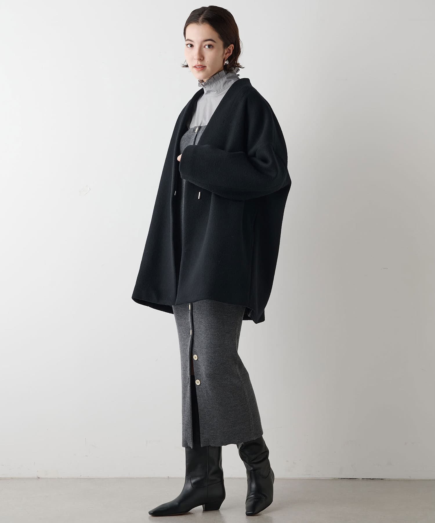 ■ノーカラージャケットのようなすっきりとしたデザインで、カーディガン感覚で気軽に羽織れる一着。