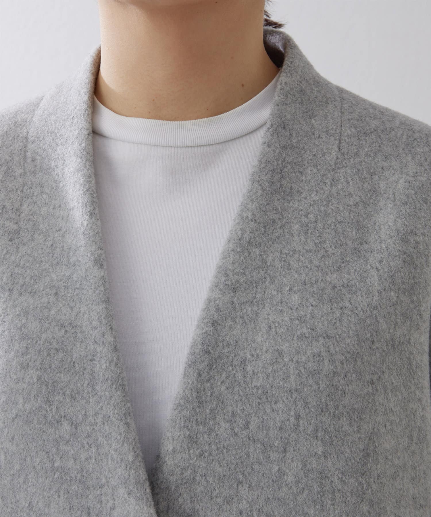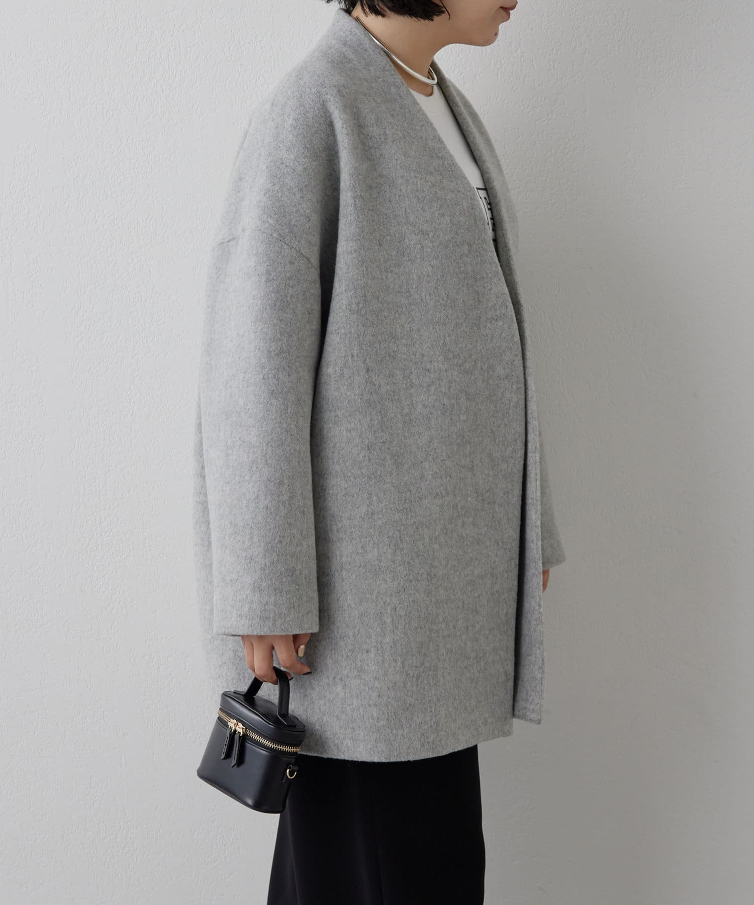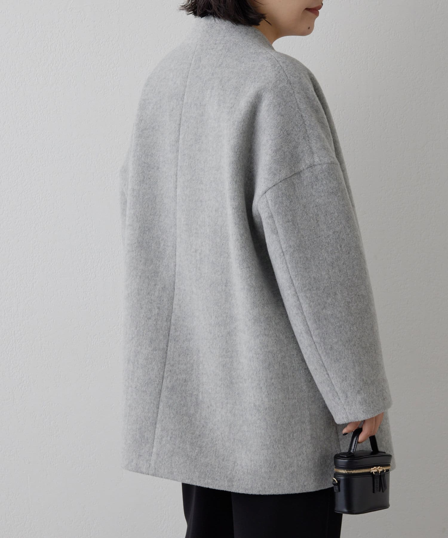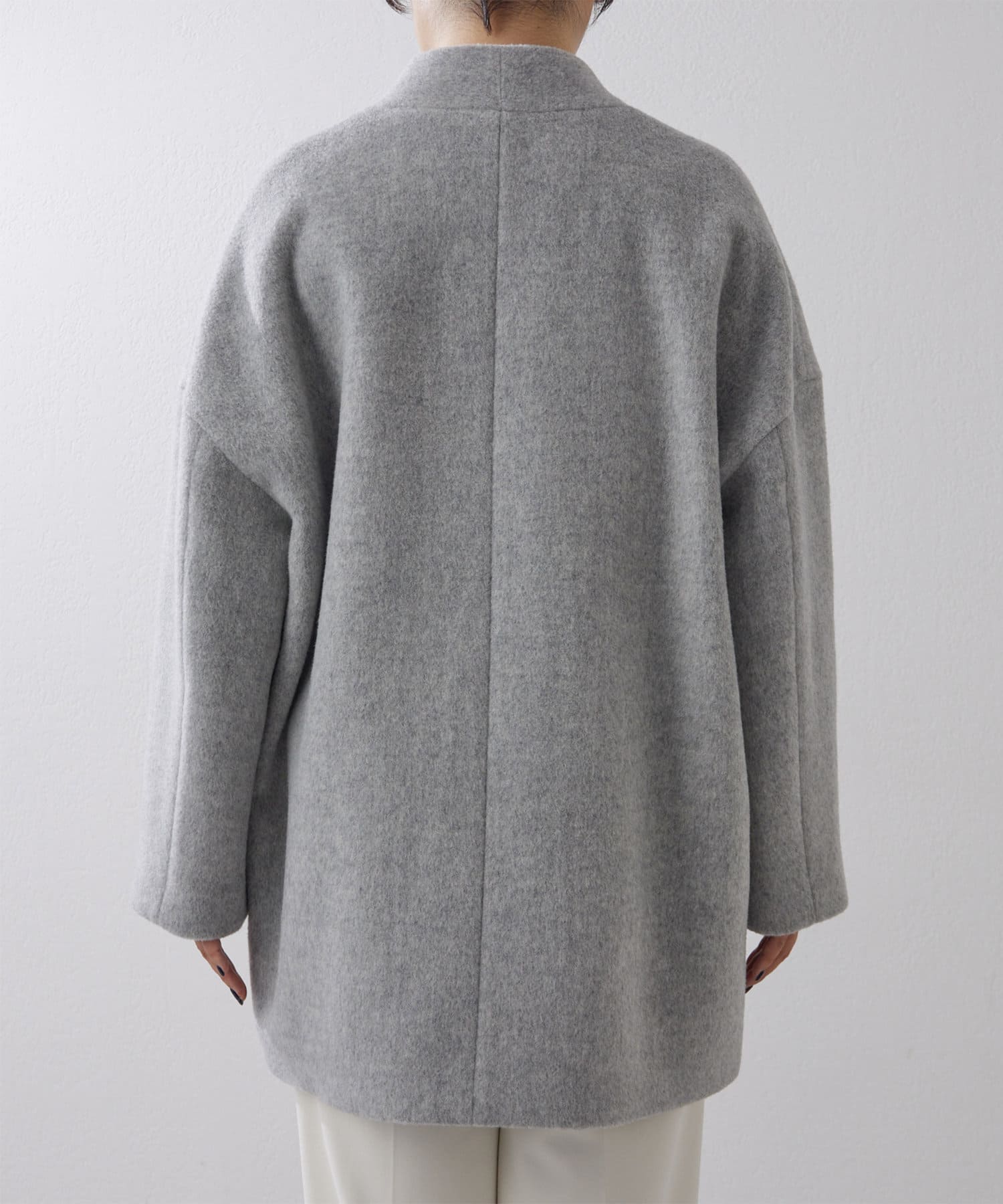 ■ノーカラージャケットのようなすっきりとしたデザインで、カーディガン感覚で気軽に羽織れる一着。