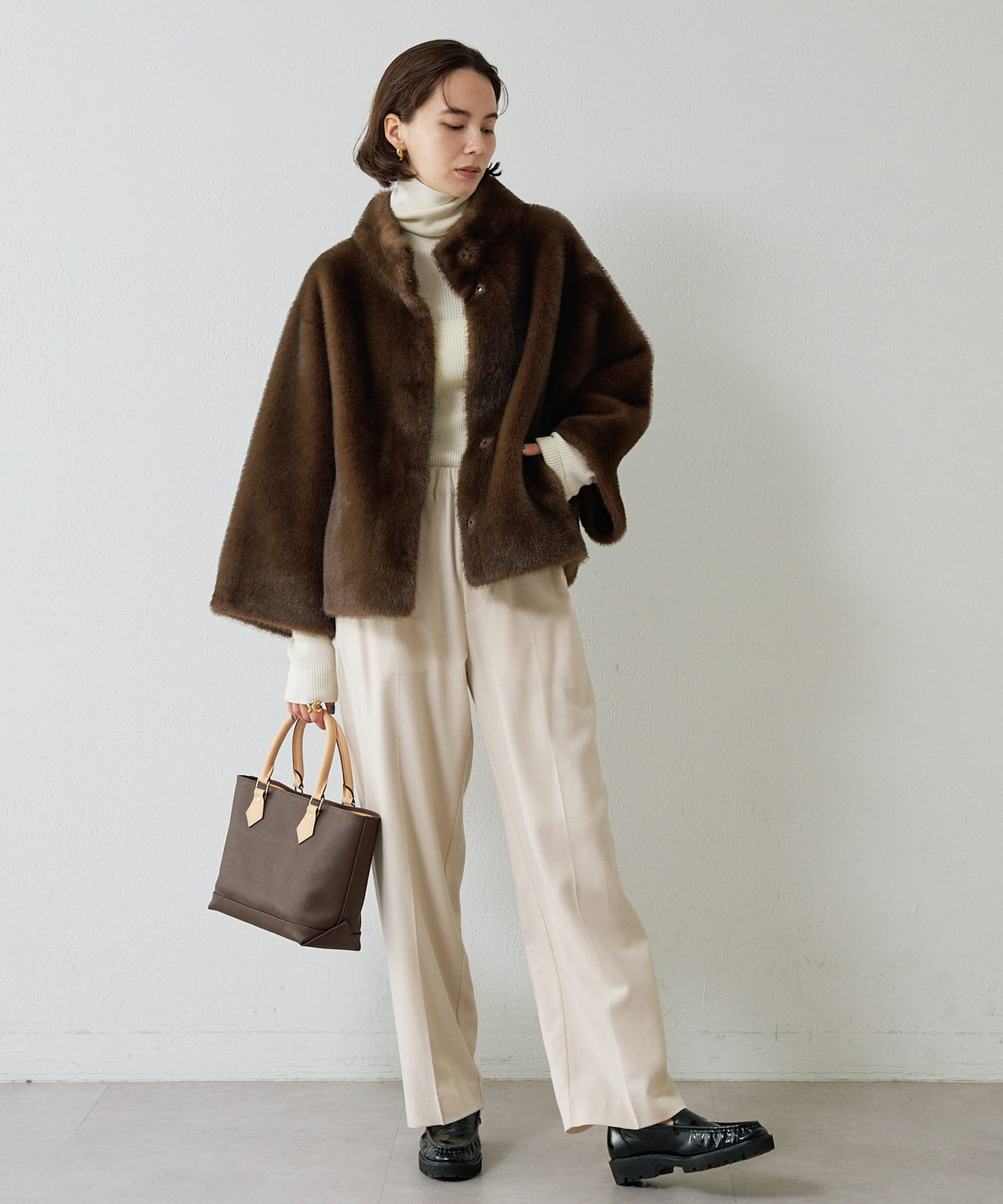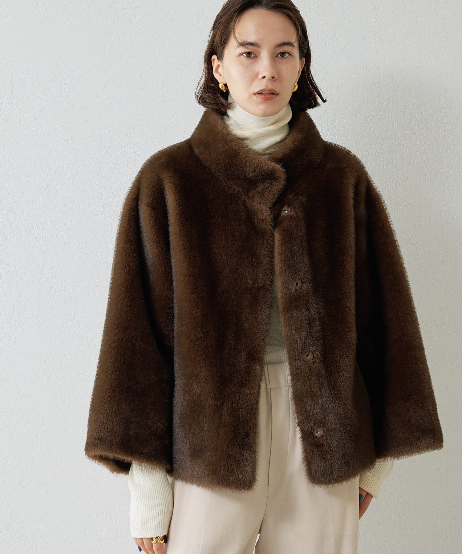 ■クオリティの高い滑らかな肌触りの高級感のあるフェイクファーを使用し、24AW展開モデルのクラシックなショート丈コートに載せ変えて別注オーダー。