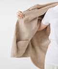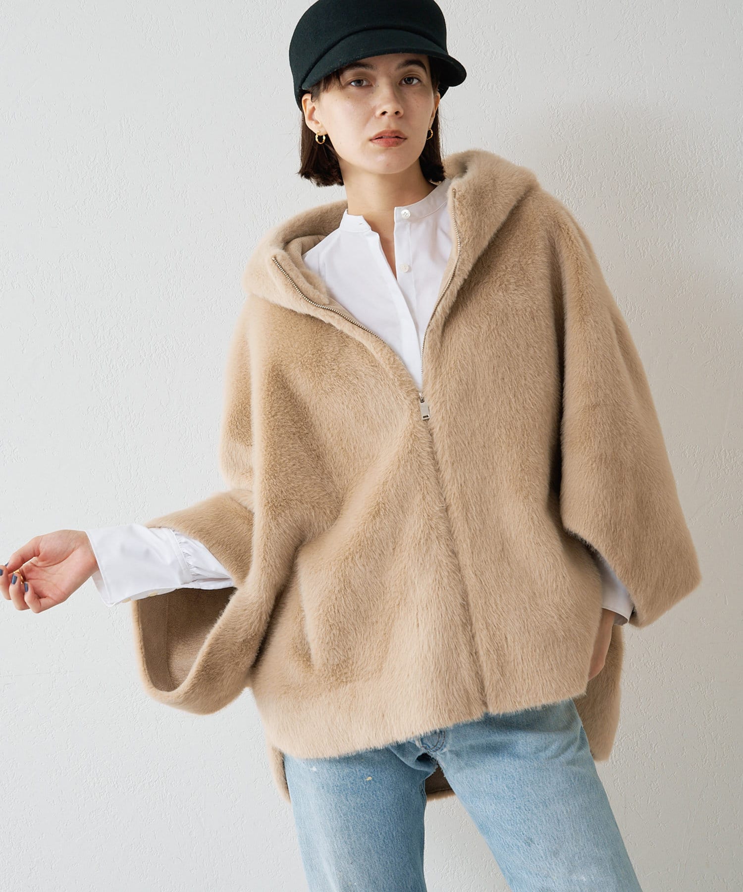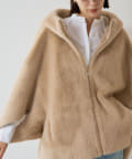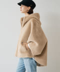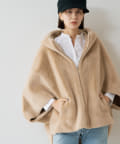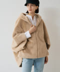 ■ポンチョのようなシルエットに、ジップアップのスタンドカラーとフードデザインがポイント。