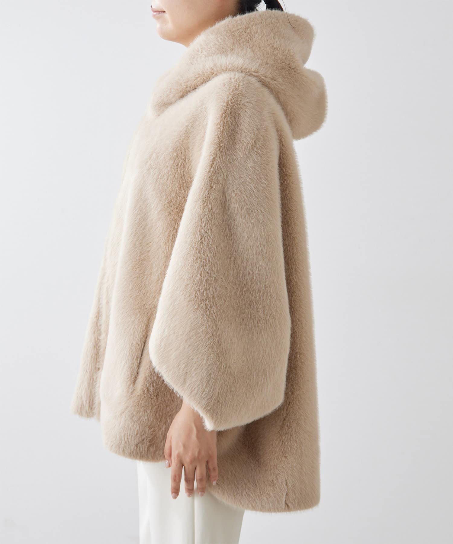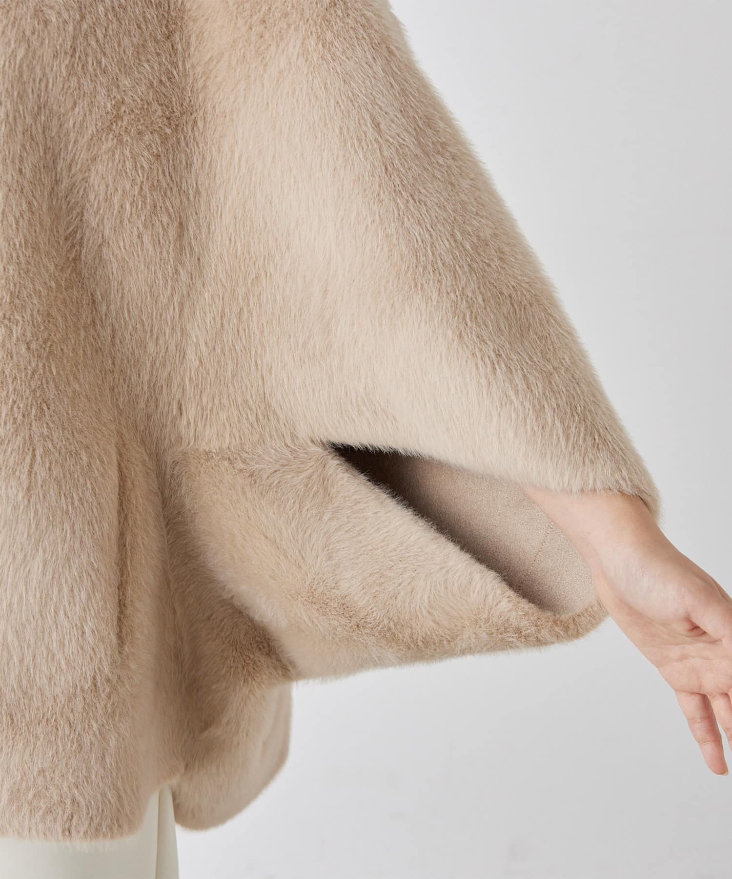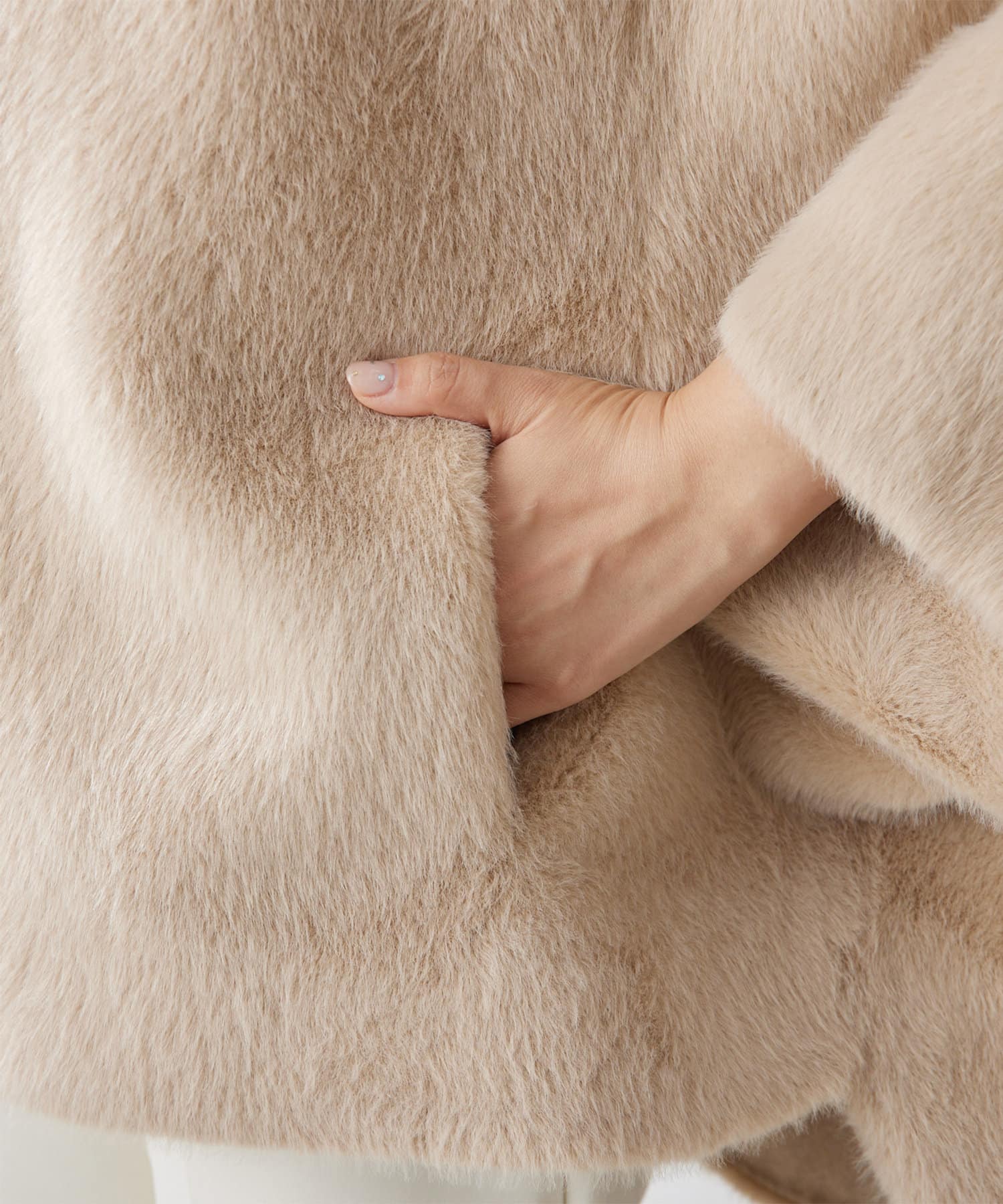 ■23AWのフェイクミンクから、品格のある艶やかでフラットなフェイクムートン素材に変更することで軽さのあるコートに。