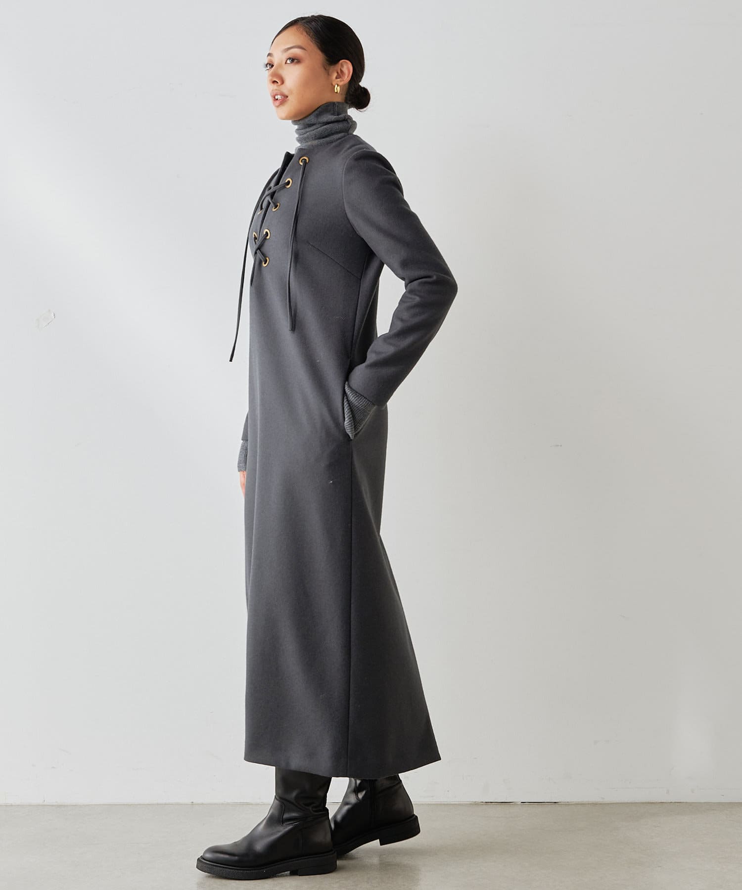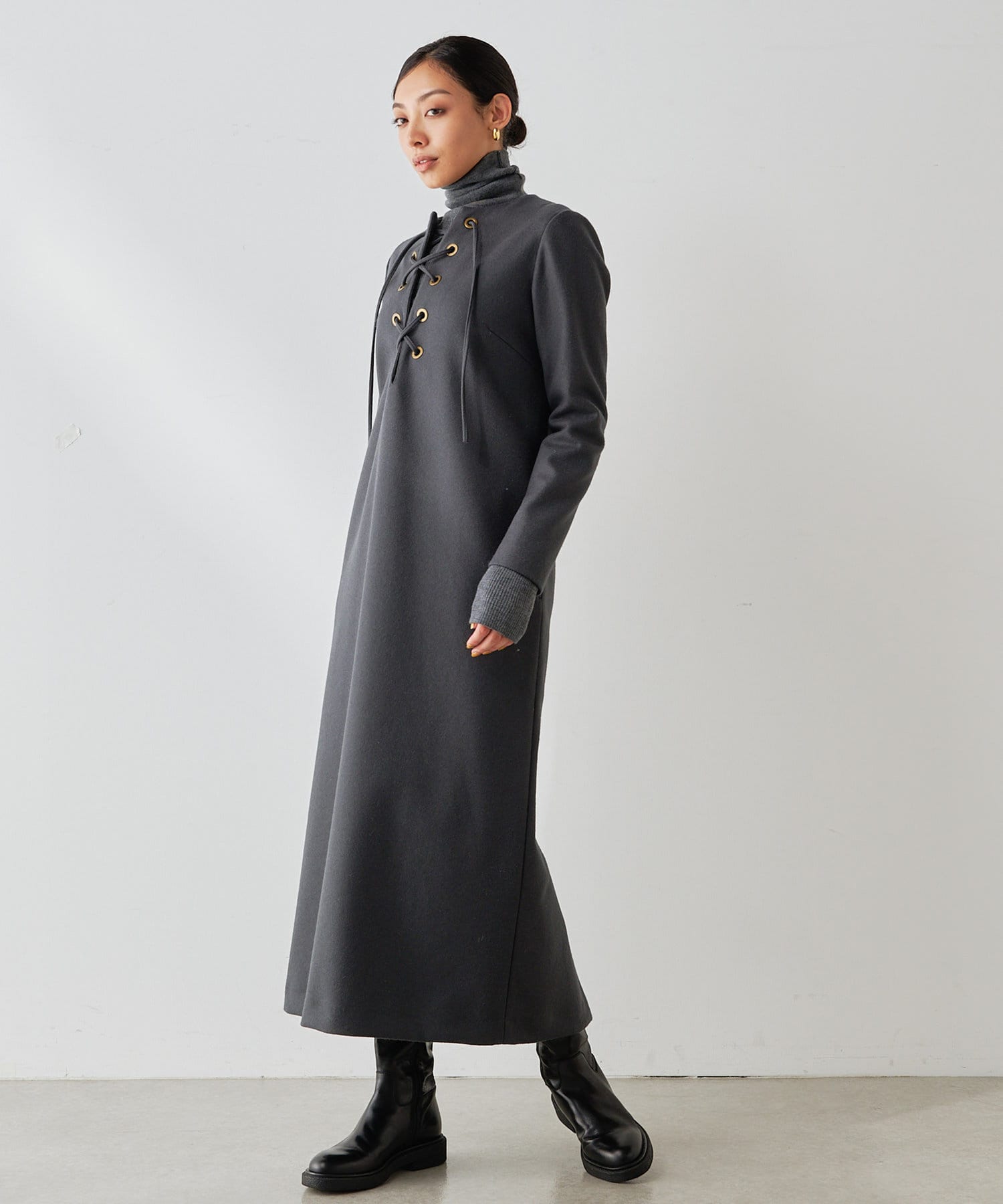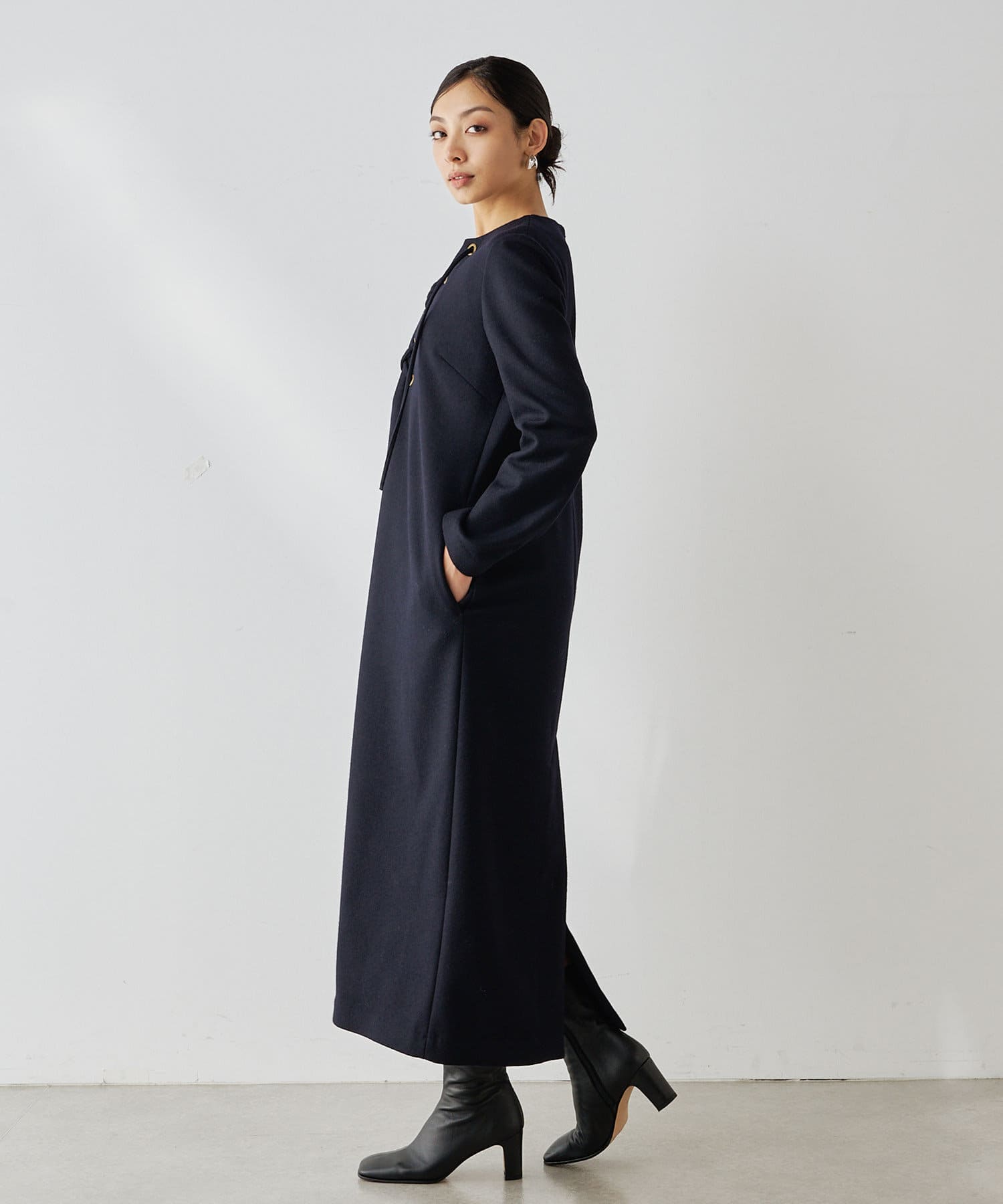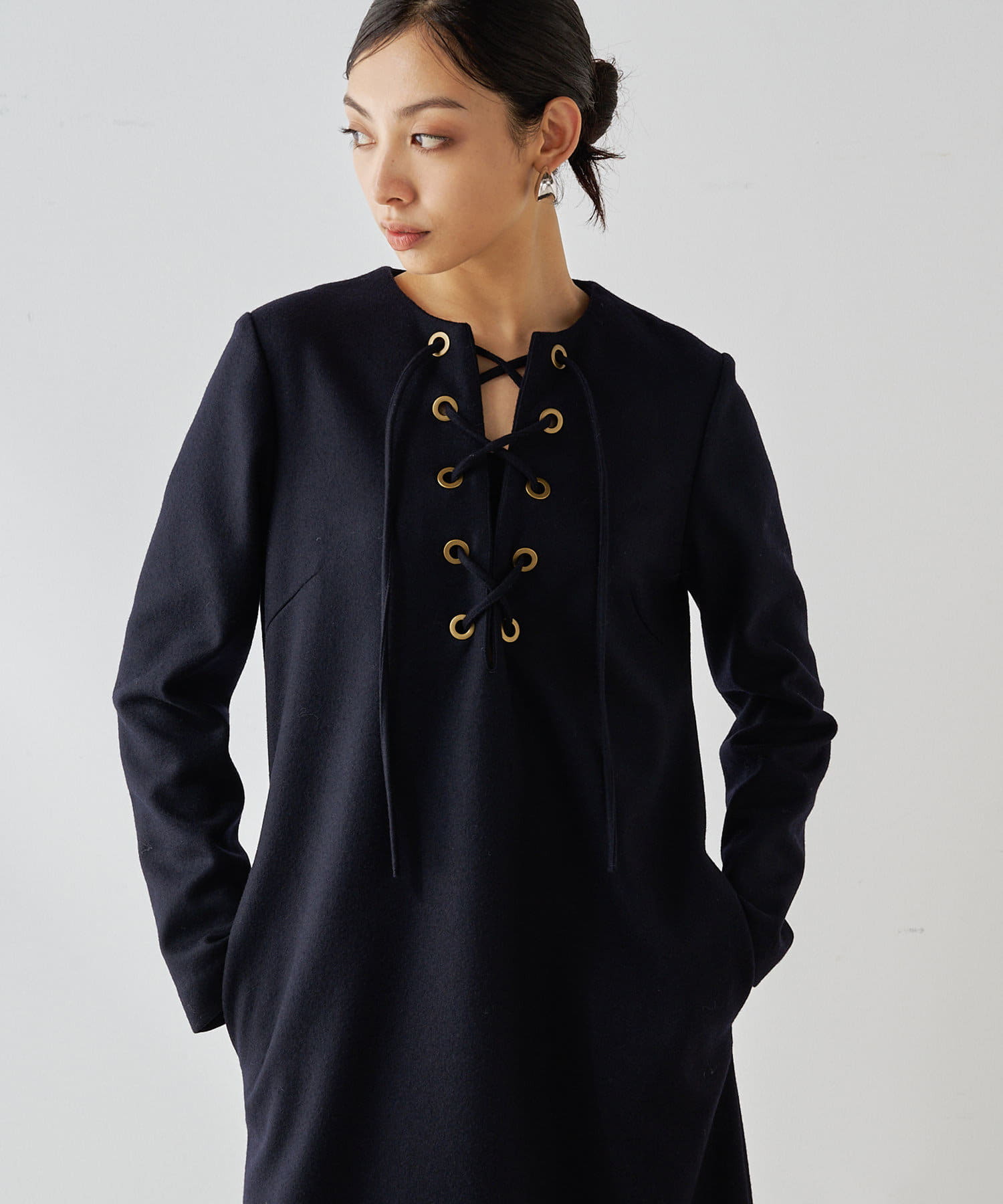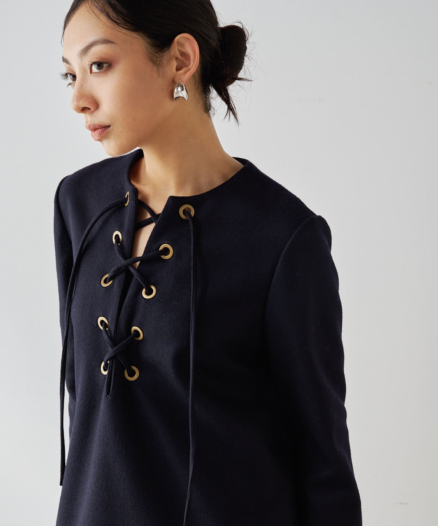 ■一枚でさらりと着るのはもちろん、インナーにタートルネックなどを重ねても◎。