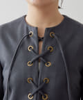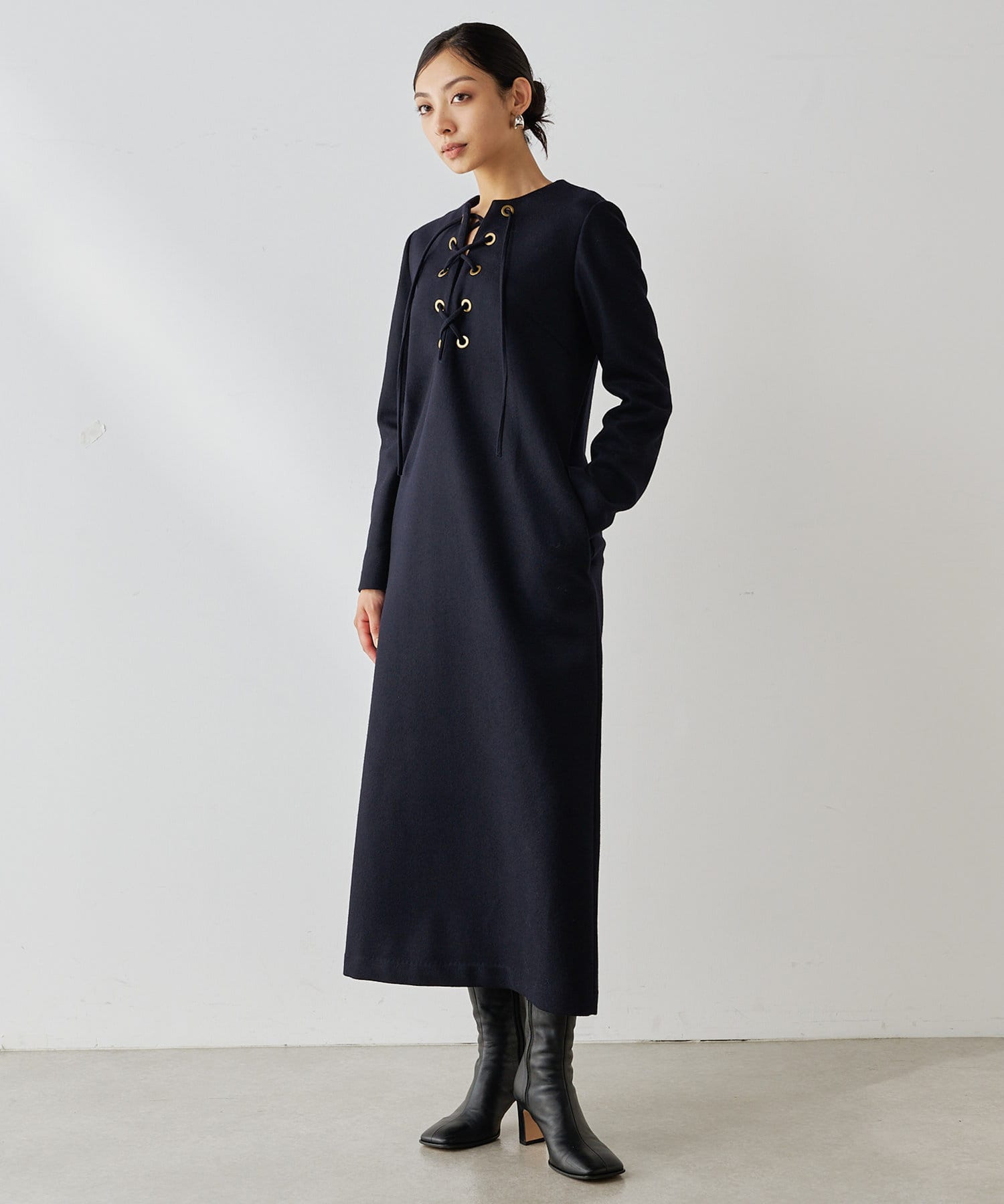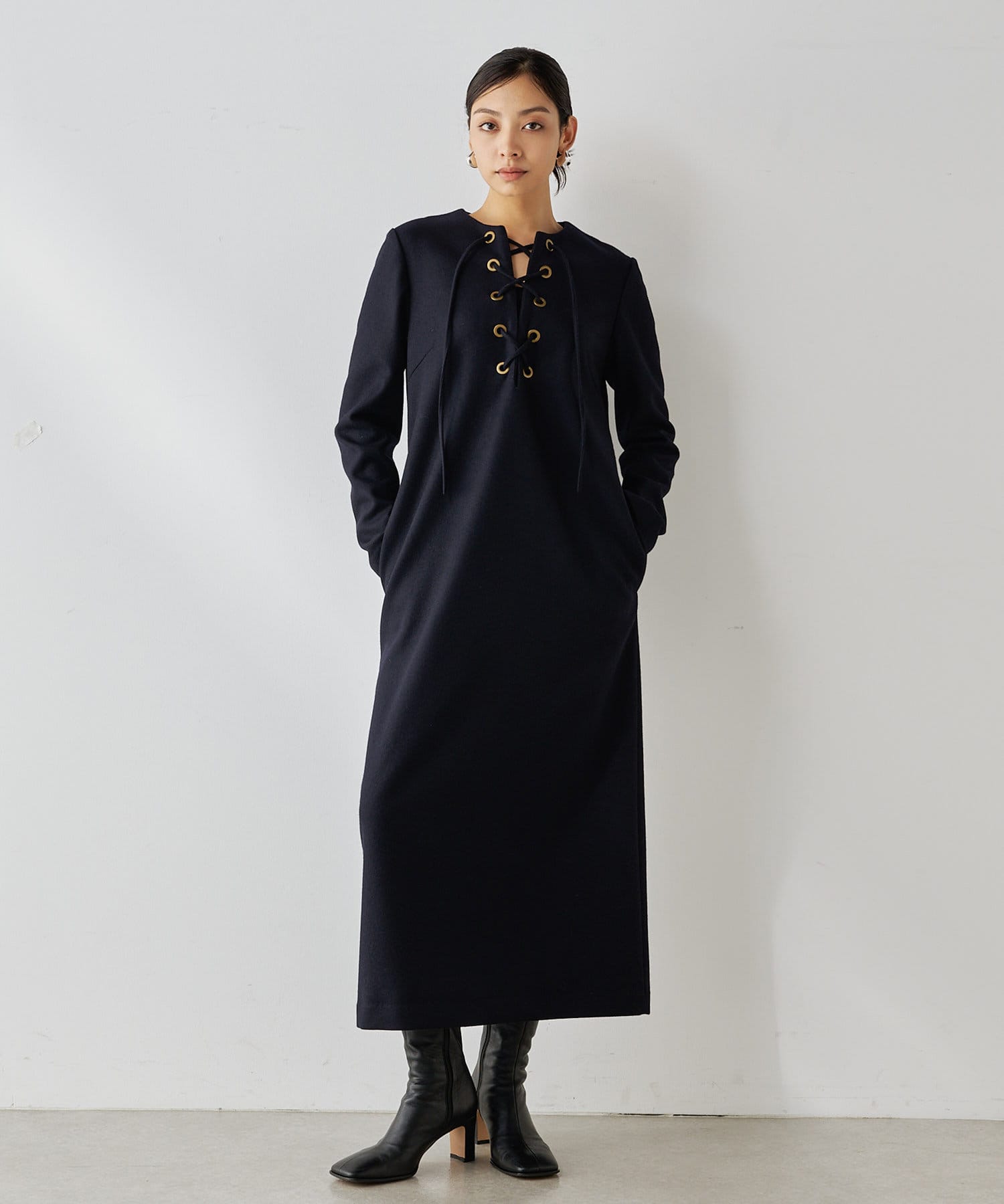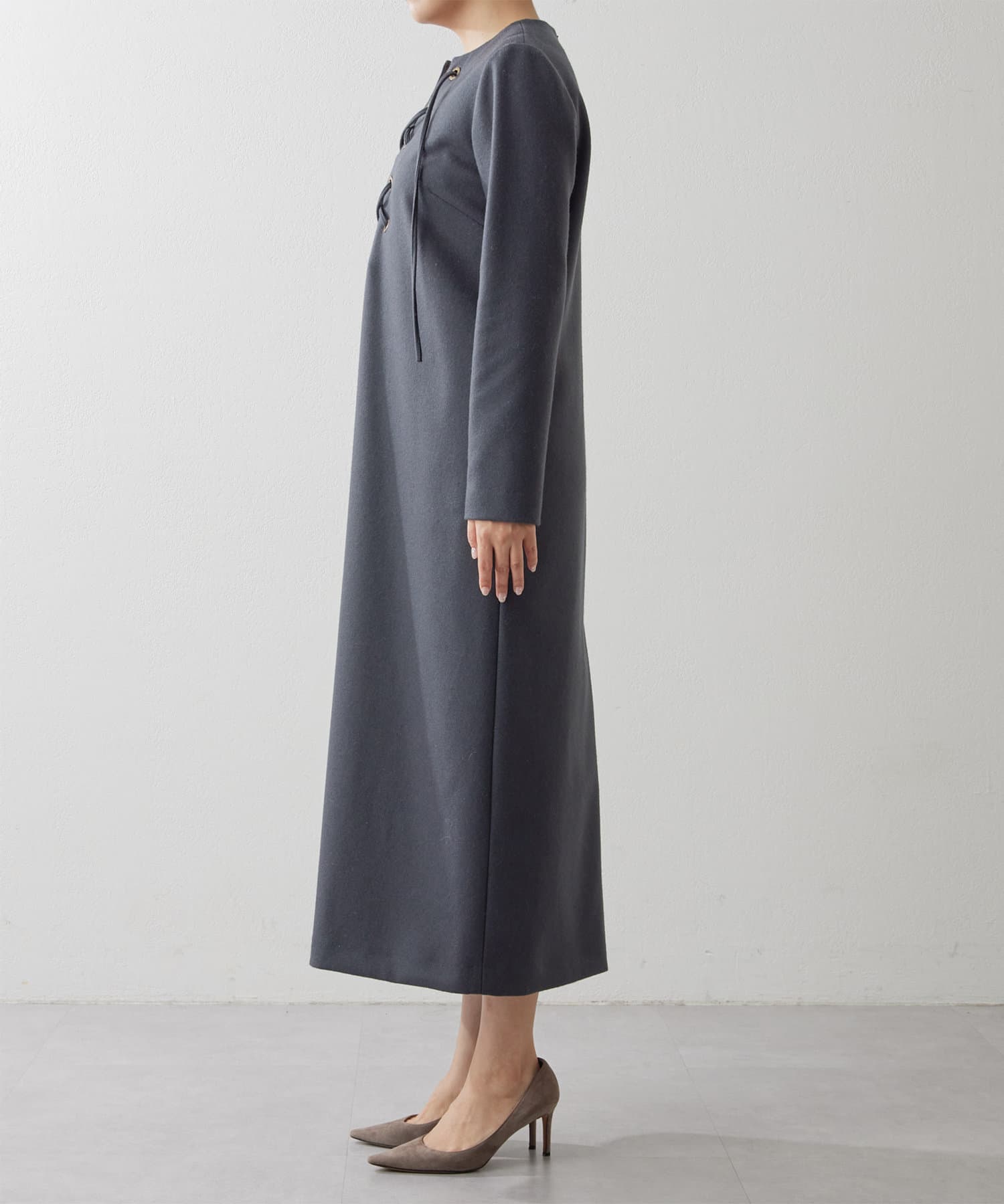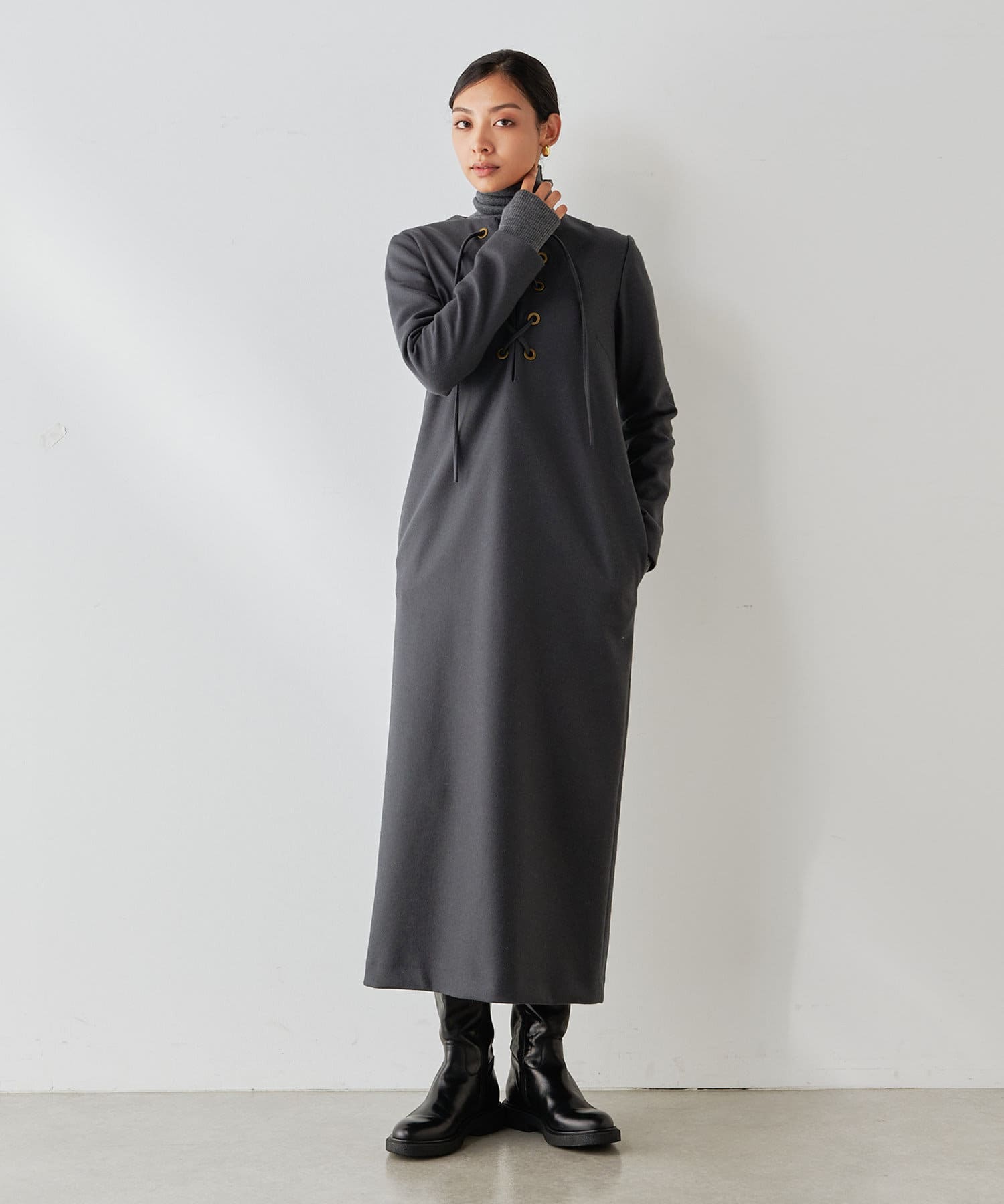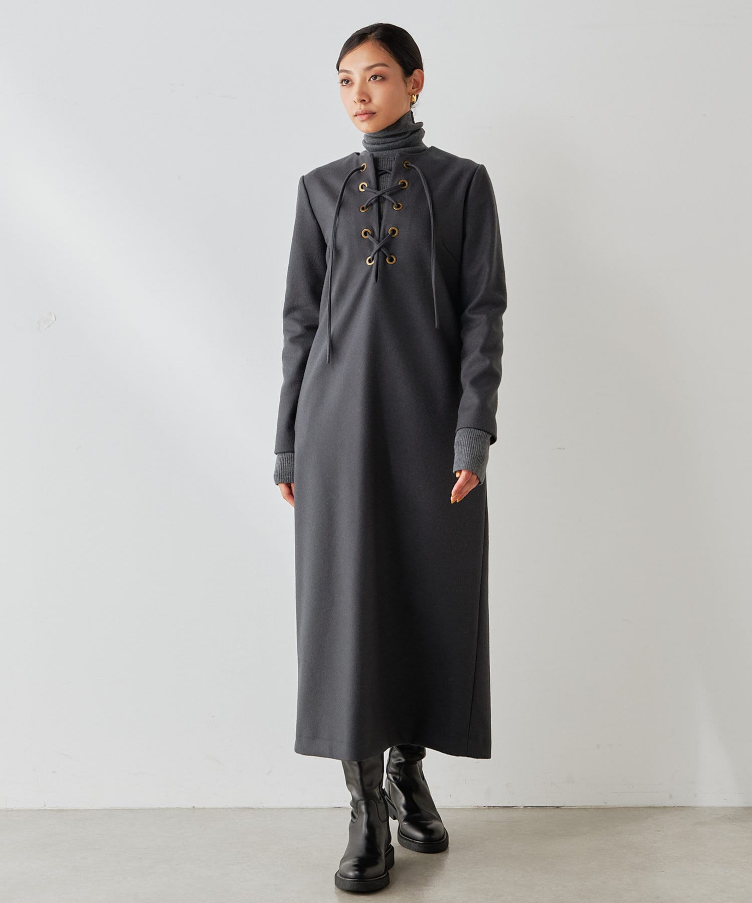 ■一枚でさらりと着るのはもちろん、インナーにタートルネックなどを重ねても◎。