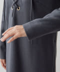 ■ゆったりとしたIラインが体のラインを拾いにくくスタイリッシュな一枚。