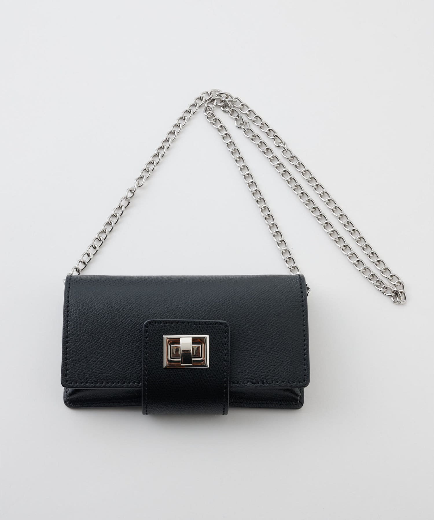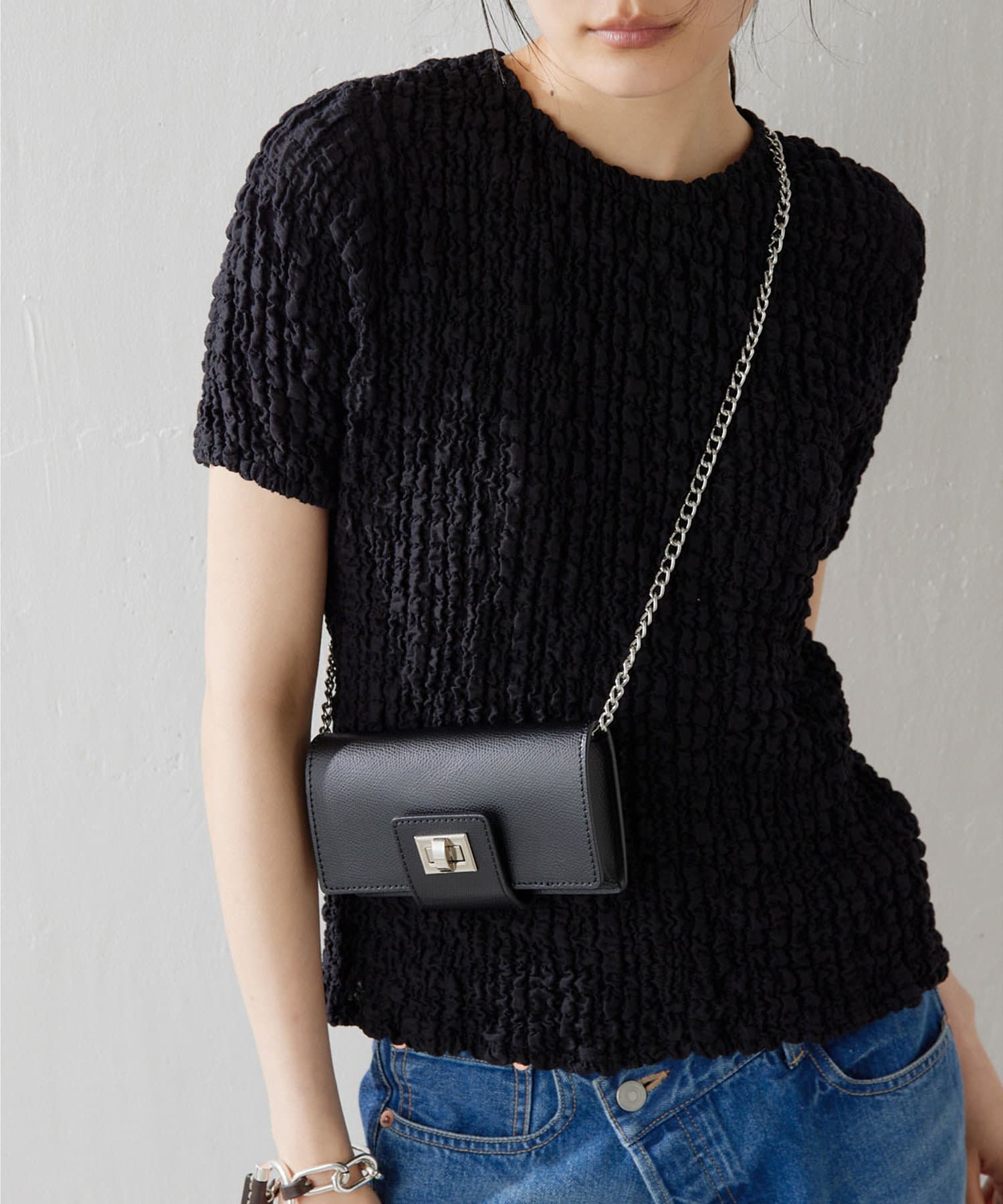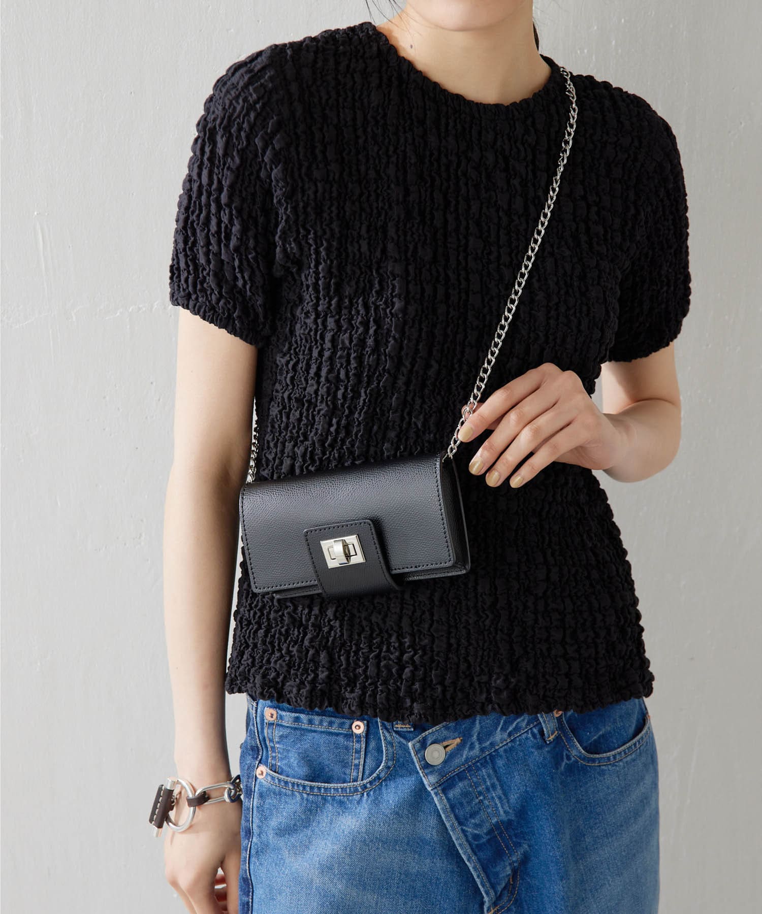 ■型押しのイタリアンレザーを使用したウォレットチェーンバッグ。