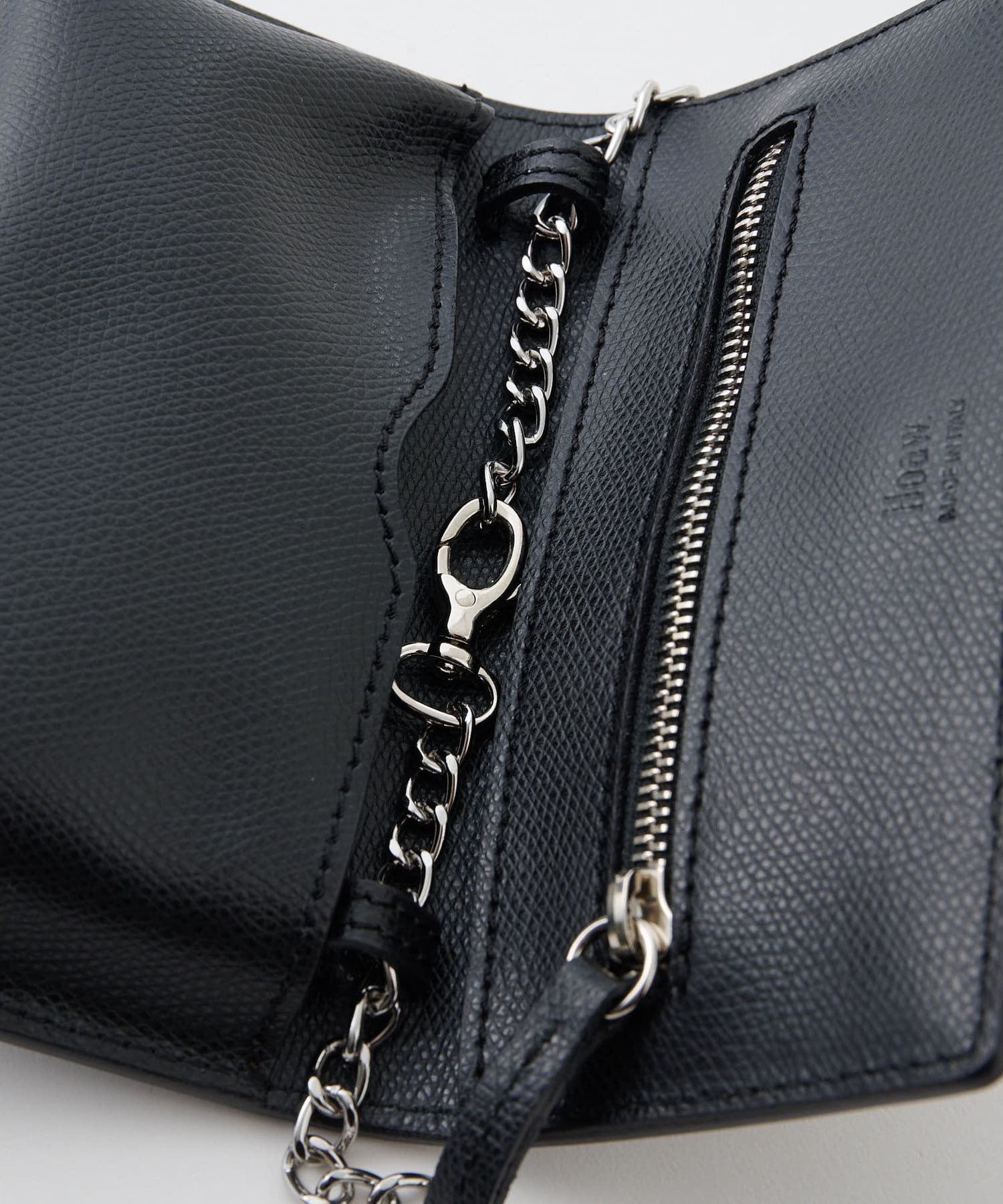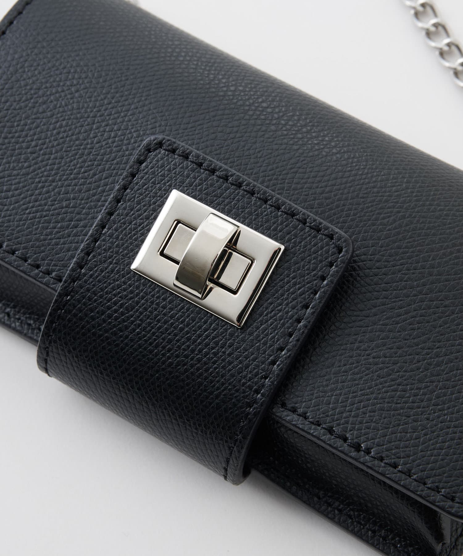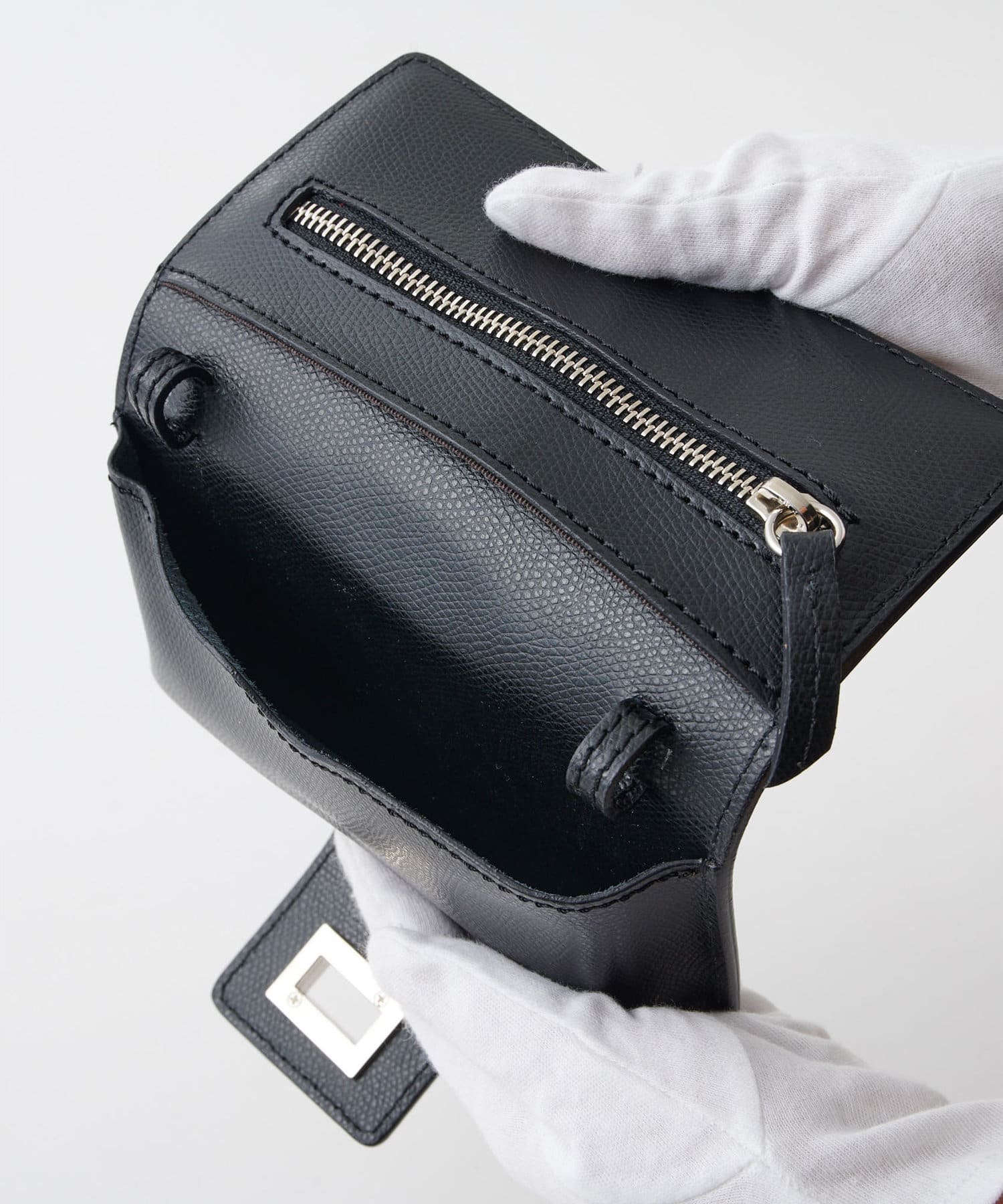 ■型押しのイタリアンレザーを使用したウォレットチェーンバッグ。