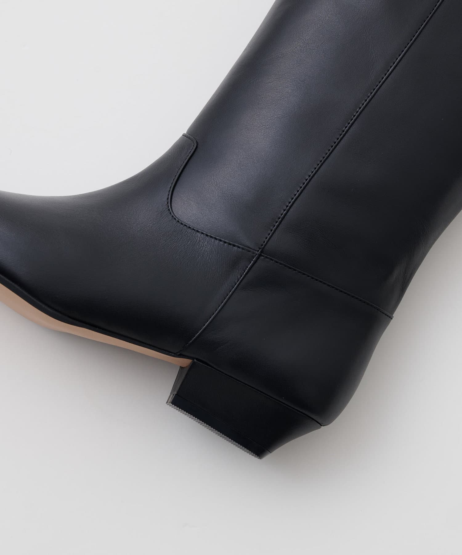 ブラック:脚の締め付けを感じさせないコシがありつつも馴染みの良いトルコ製のスムースレザー。