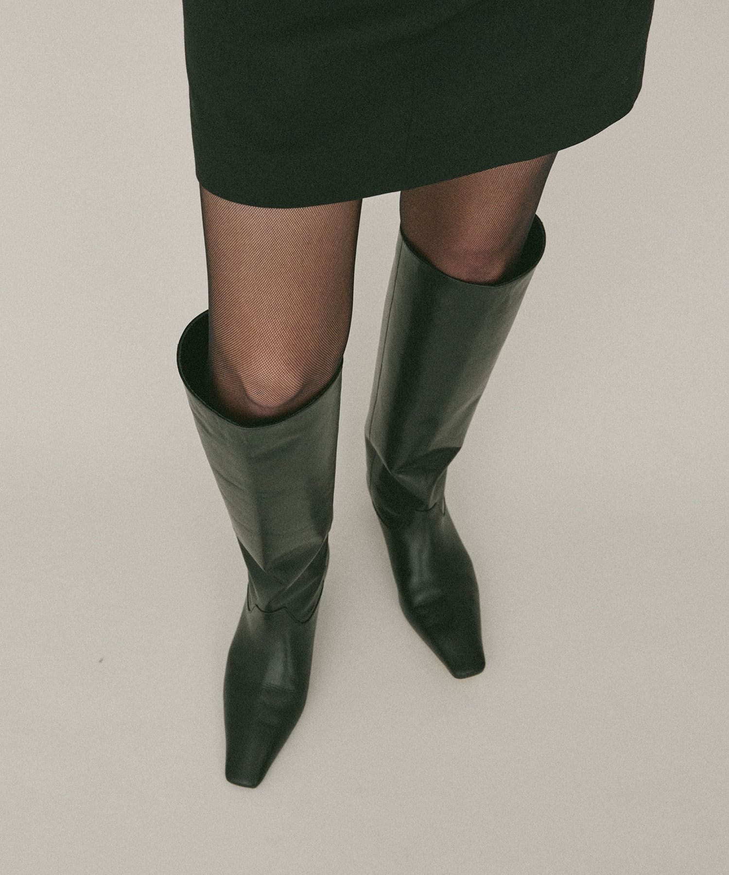脚をきれいに見せてくれる、大人のレザーロングブーツ