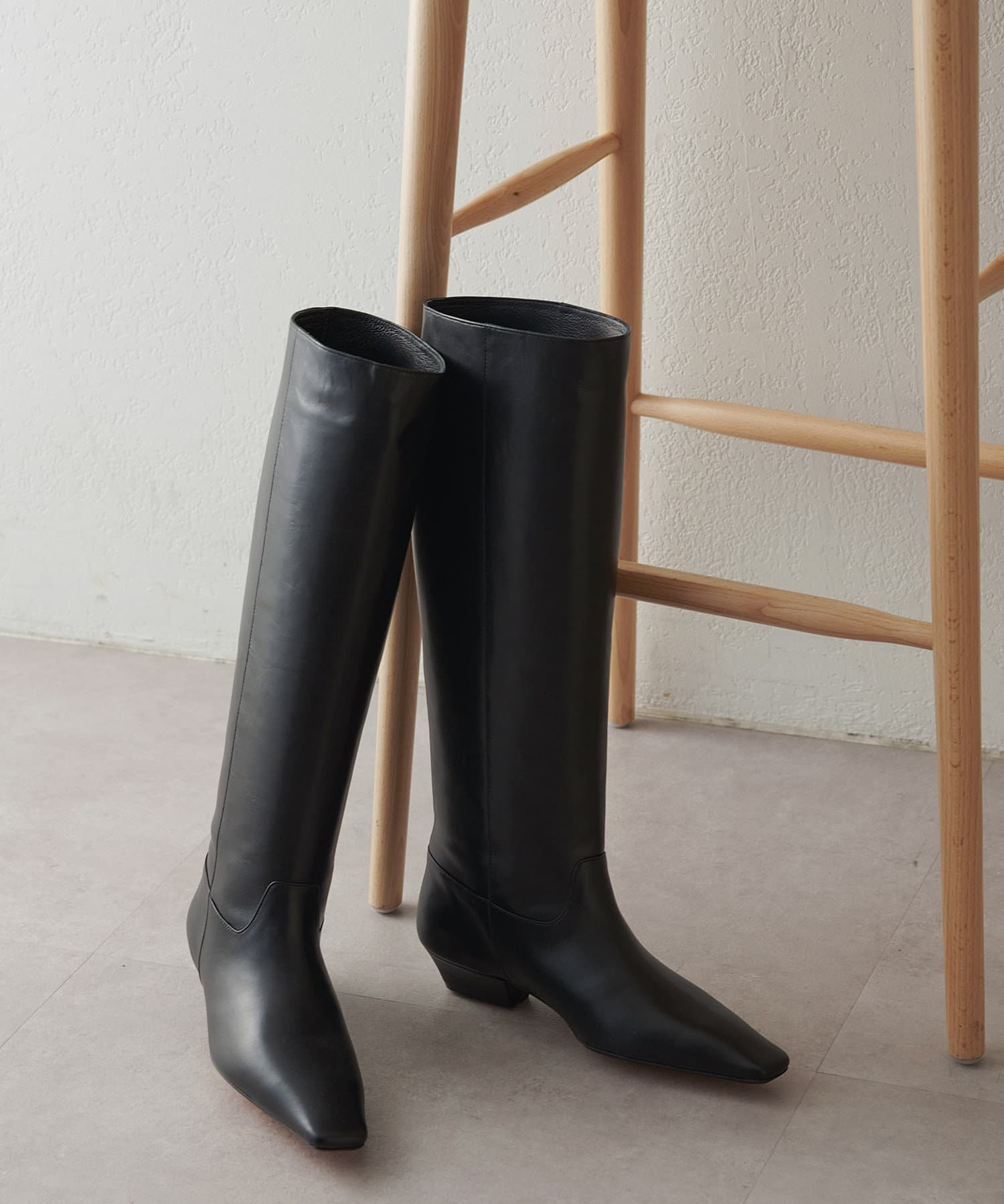 ■柔らかくてたっぷりとした筒の太さが抜け感のあるシルエットを生むロングブーツ。
