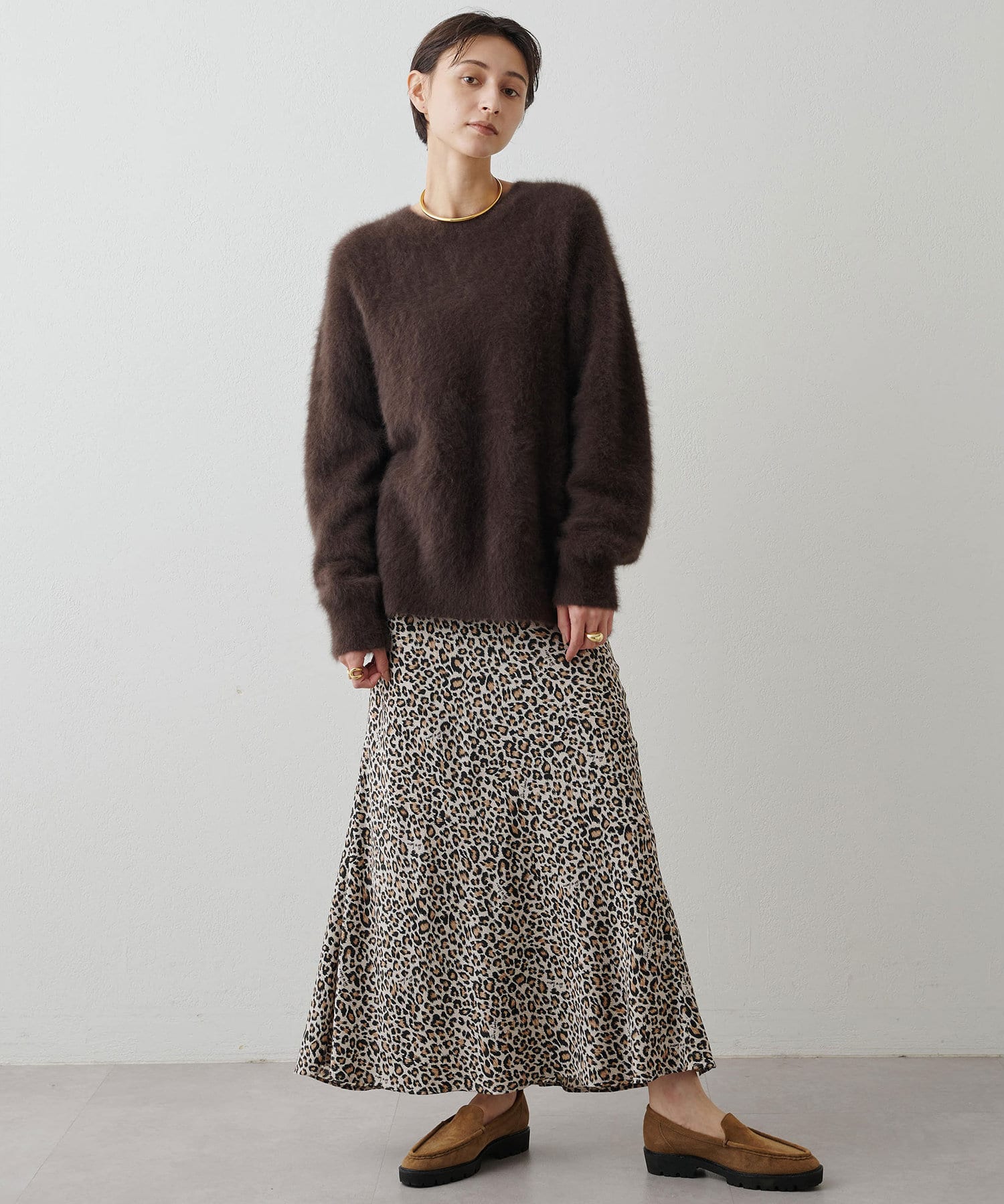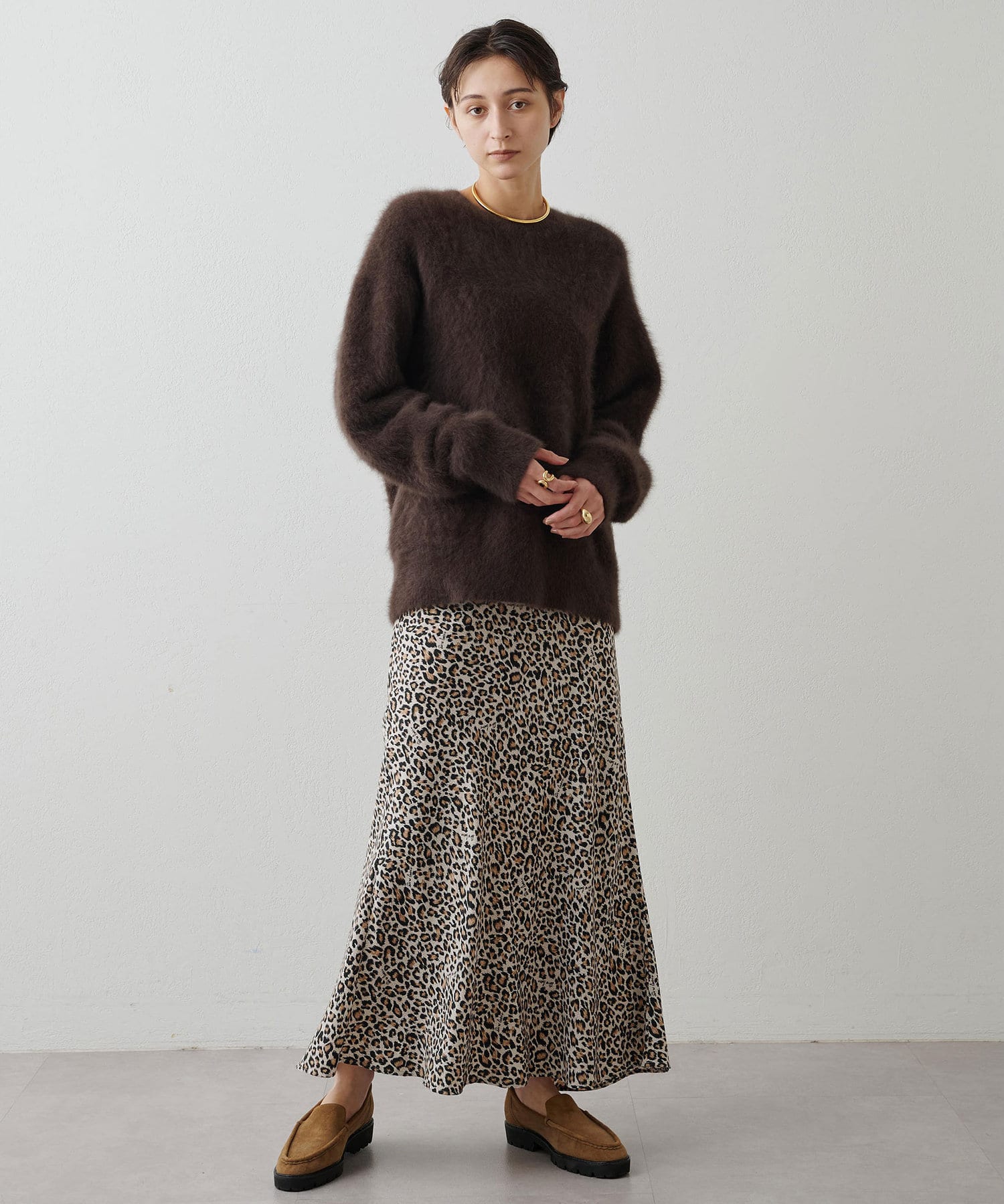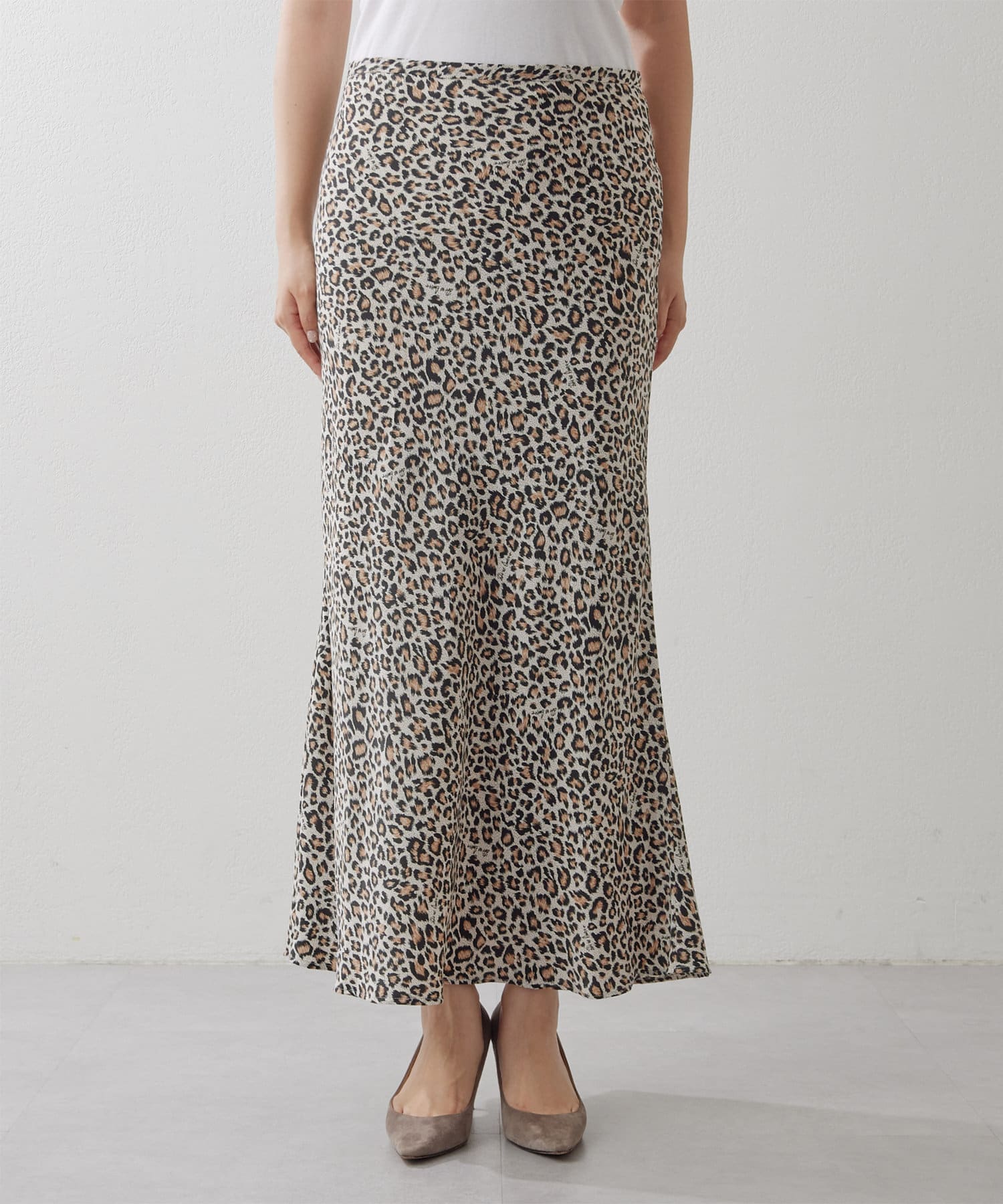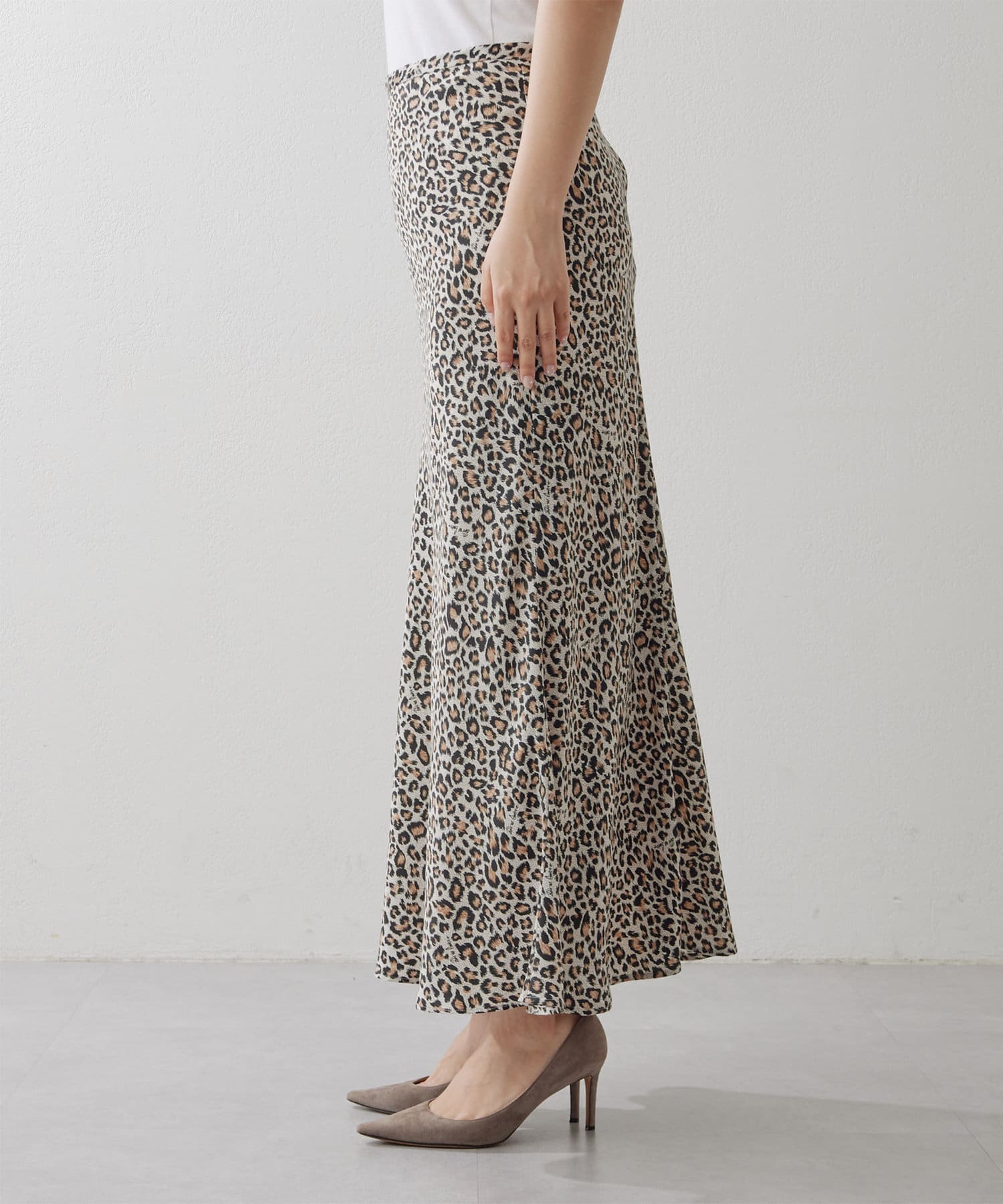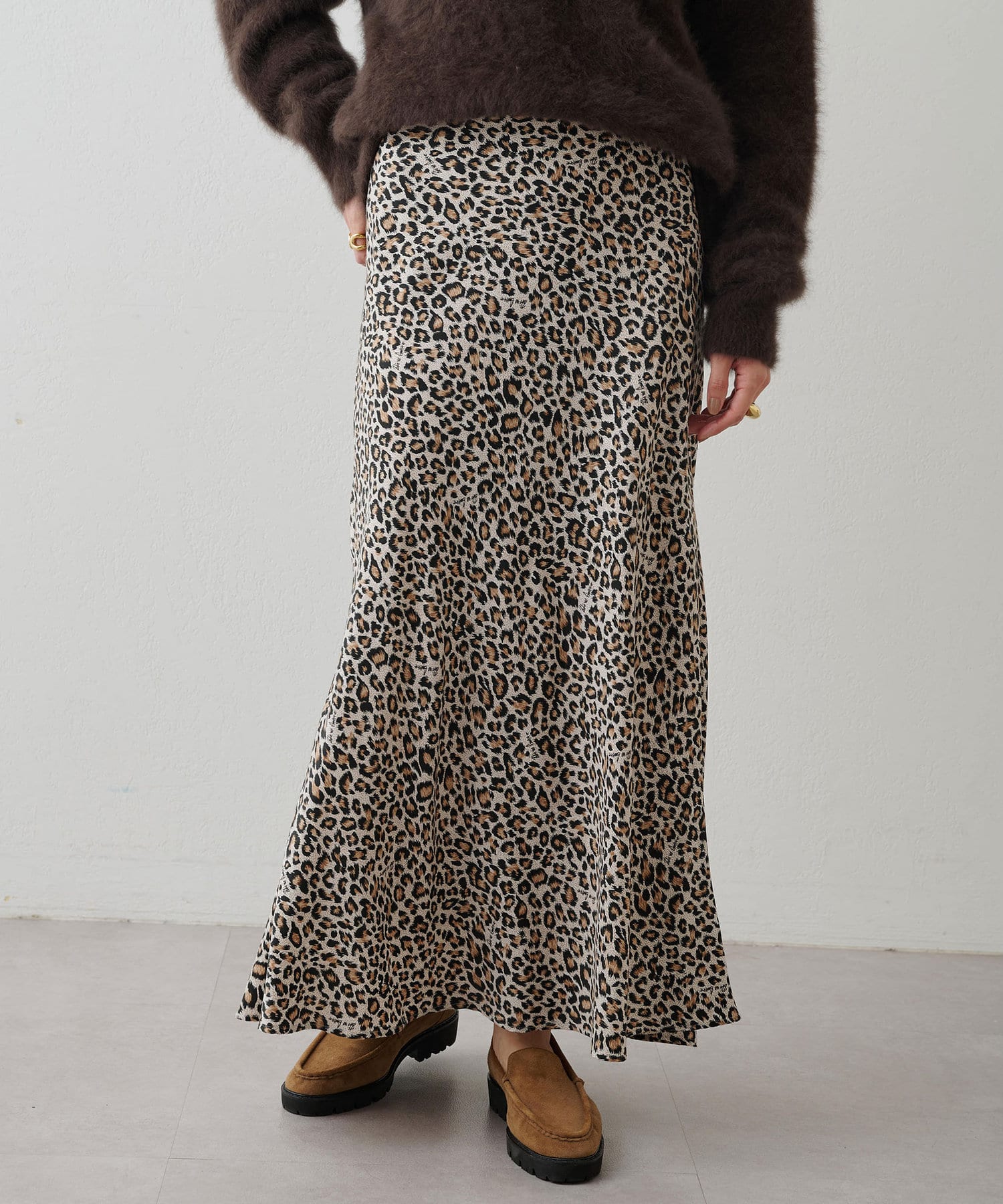 オリジナルのレオパード柄がコーデのアクセントに。サラッとした素材感なので、ニットやジャケット、ボアコートとの相性も抜群。マーメイドラインが華やかな、遊び心溢れる逸品です!