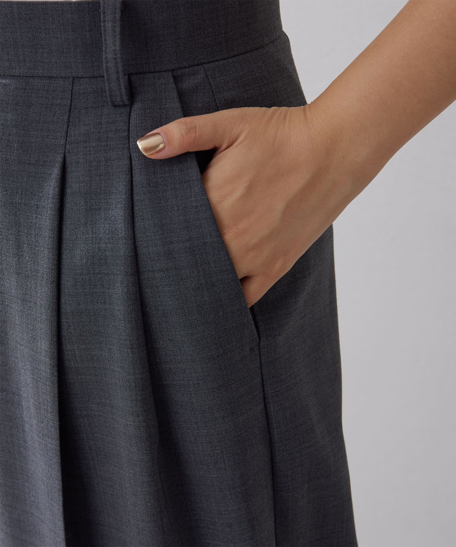 ■フロントの2タックで表現したたっぷりとしたシルエットが抜け感をプラスし、着心地の良さにも配慮。