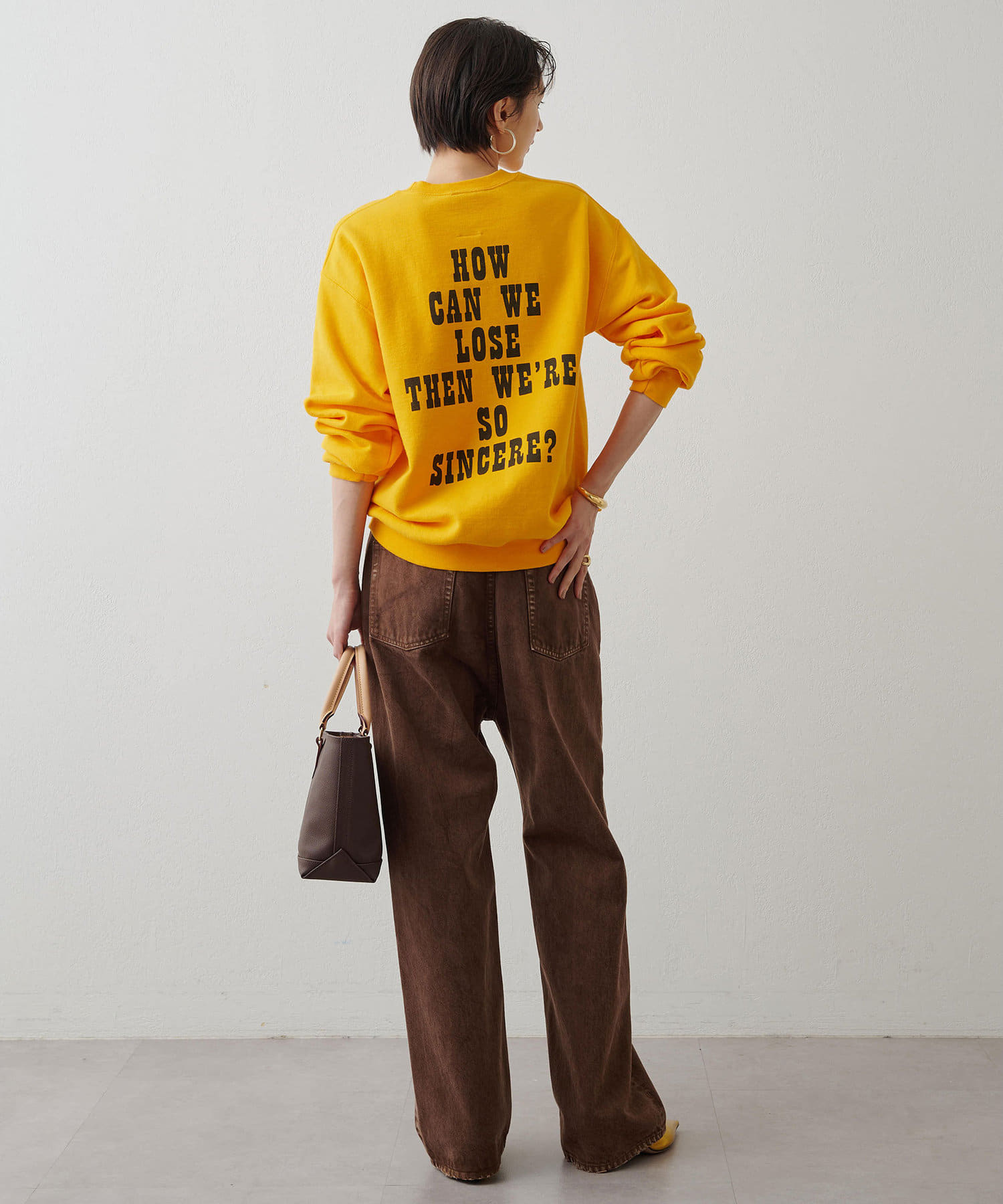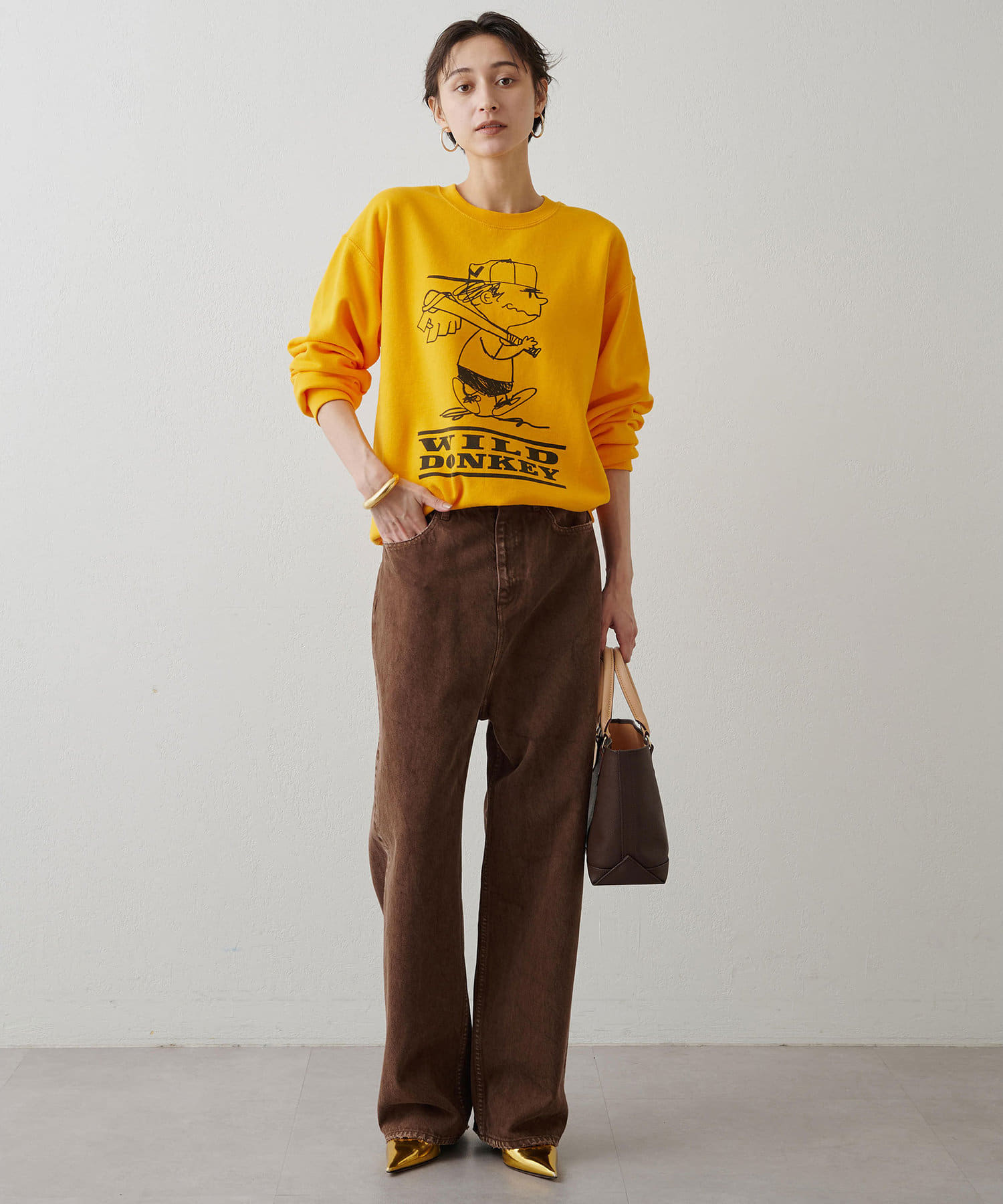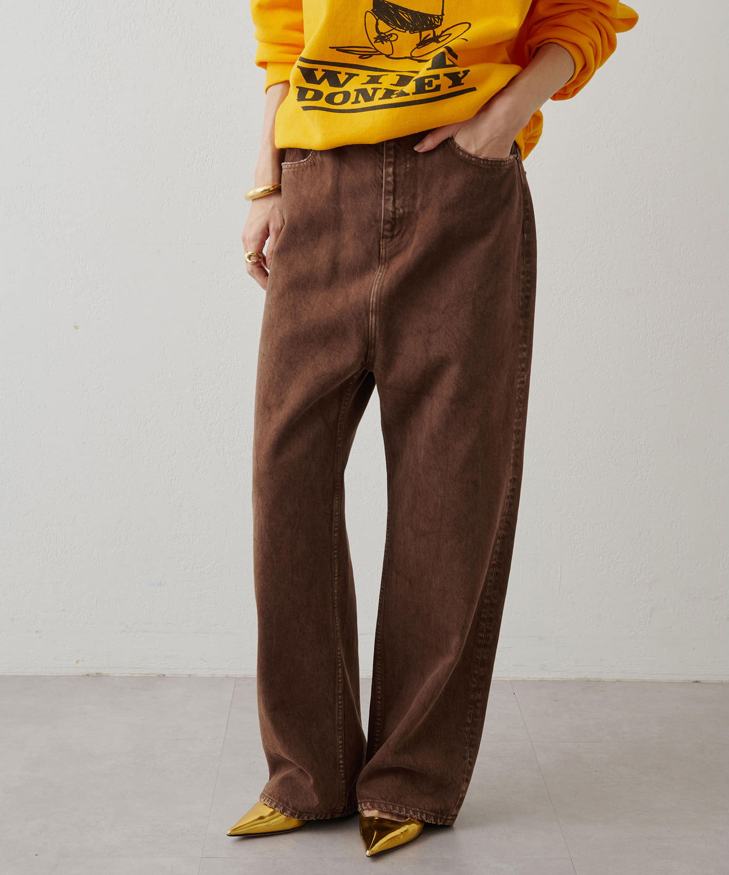 こっくりとした深いブラウンのカラーが魅力的なデニムパンツ。ストレートのラインが綺麗めな印象です。股上が深めで丈もしっかり長さがあるので、私の身長でもズルっと穿けるのが嬉しいポイントでした。